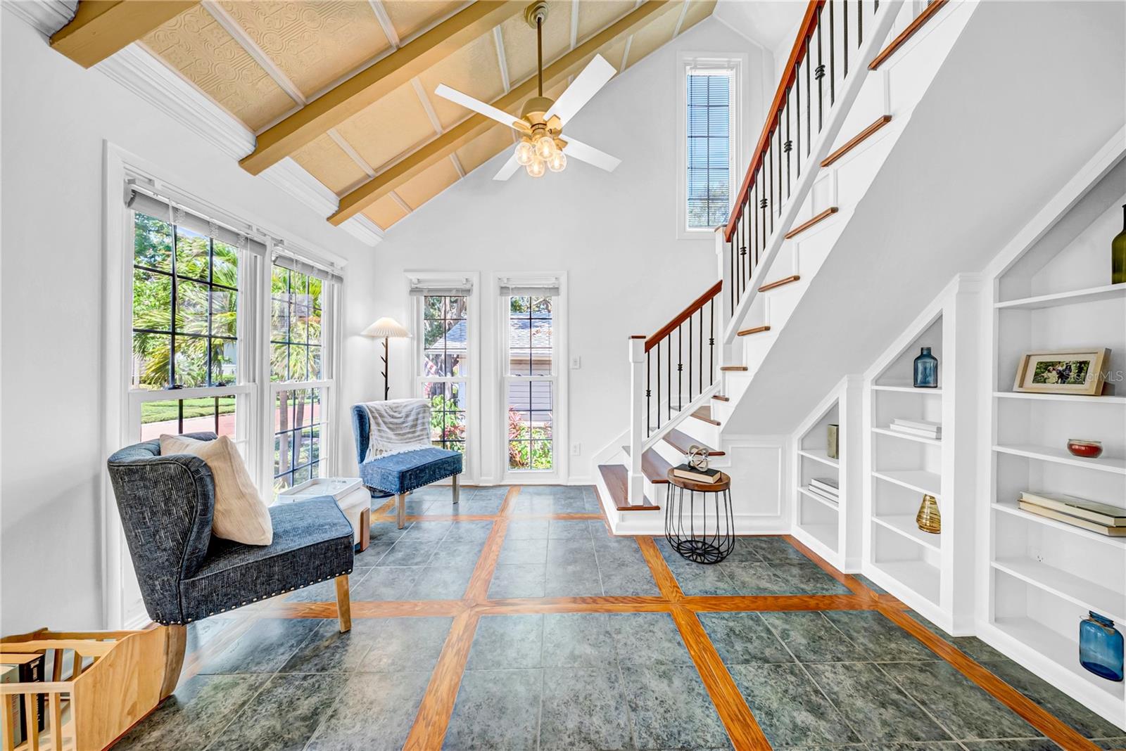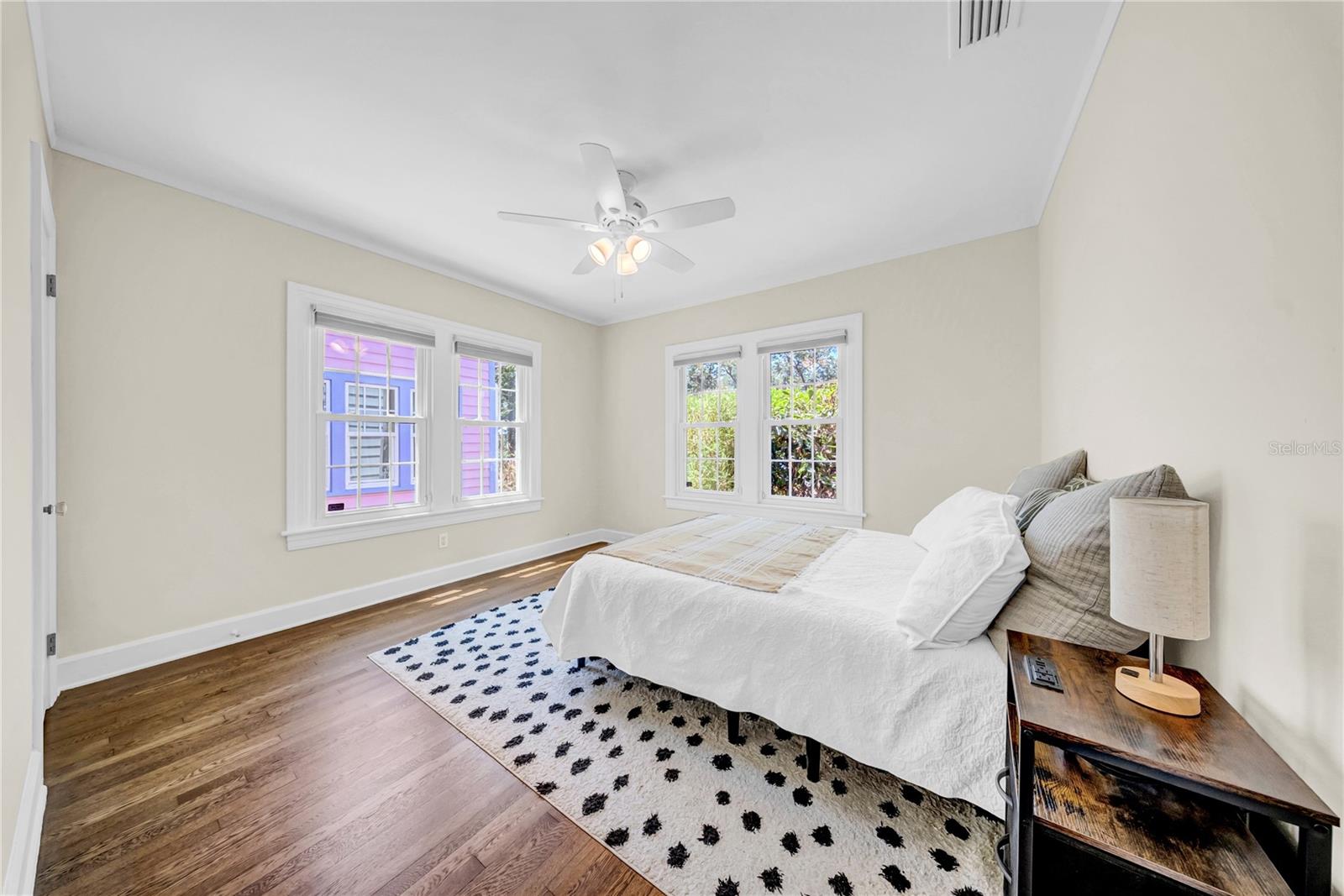 (High & Dry) Welcome to HISTORIC OLD NORTHEAST, LIVE in the most desired neighborhood in ST. PETERSBURG! This beautiful historic 3 Bedroom, 2 Bathroom, DETACHED 2 Car Garage home with alley access sits on the iconic brick paved roads! NO car NO problem, 4 Blocks from Coffee Pot Bayou, 2 blocks from 4Th Street with all of the shopping, restaurants, coffee shops and virtually anything else you could possibly need, and just over a mile from vibrant downtown St. Petersburg. As you enter the living room, a few of the many highlights are the handcrafted staircase, high beamed ceiling, custom built-in book shelves and an abundance of natural light beaming throughout. The refinished hardwood floors, crown molding, and wood burning fireplace make this area peaceful and inviting. The dining area is perfect for entertaining and flows seamlessly into the kitchen which has brand new quartz counter tops and stainless steel appliances, a professional gas range with convection oven and solid cherry cabinets. The indoor laundry area in the mud room at the rear entrance has a newer full size washer and dryer. The downstairs bathroom has recently been completely remodeled. The large upstairs loft has an en suite full bathroom, cherry hardwood floors, custom built-in storage throughout and a separate sitting area with a window overlooking the peaceful brick road that is perfect for enjoying a book or your morning coffee. The home has recently been professionally painted inside and out. Recently professionally landscaped in the front yard with a updated irrigation system, fenced yard. This unique home has been tastefully updated and strikes the perfect balance between modern convenience and historical charm and character. Don't miss out on your chance to live the FLORIDA DREAM in this beautiful home in one of the most sought-after neighborhoods in St. Petersburg. Schedule your tour today! (HURRICANE IMPACT WINDOWS AND DOORS THROUGHOUT THE ENTIRE HOME & GARAGE, ROOF 2014 HVAC 2020 GAS TANKLESS WATER HEATER 2017) 2 BEDROOMS DOWNSTAIRS & 1 BEDROOM UPSTAIRS