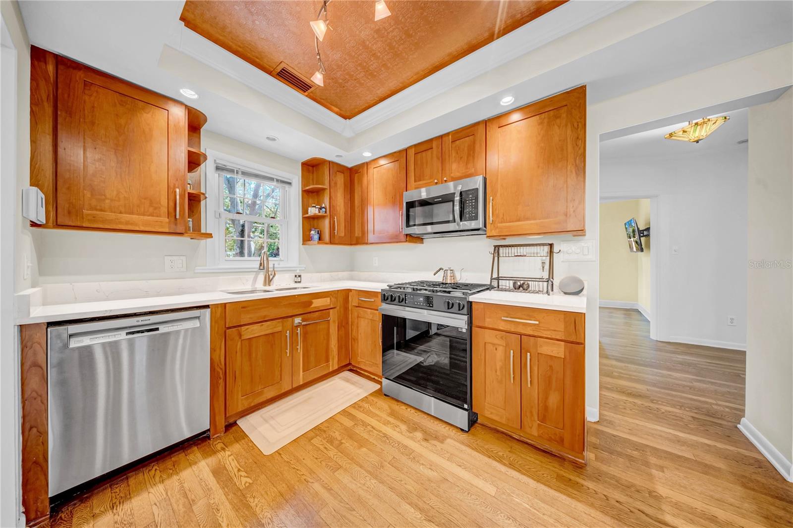 Built-in Features, Ceiling Fans(s), Solid Wood Cabinets, Vaulted Ceiling(s), Window Treatments