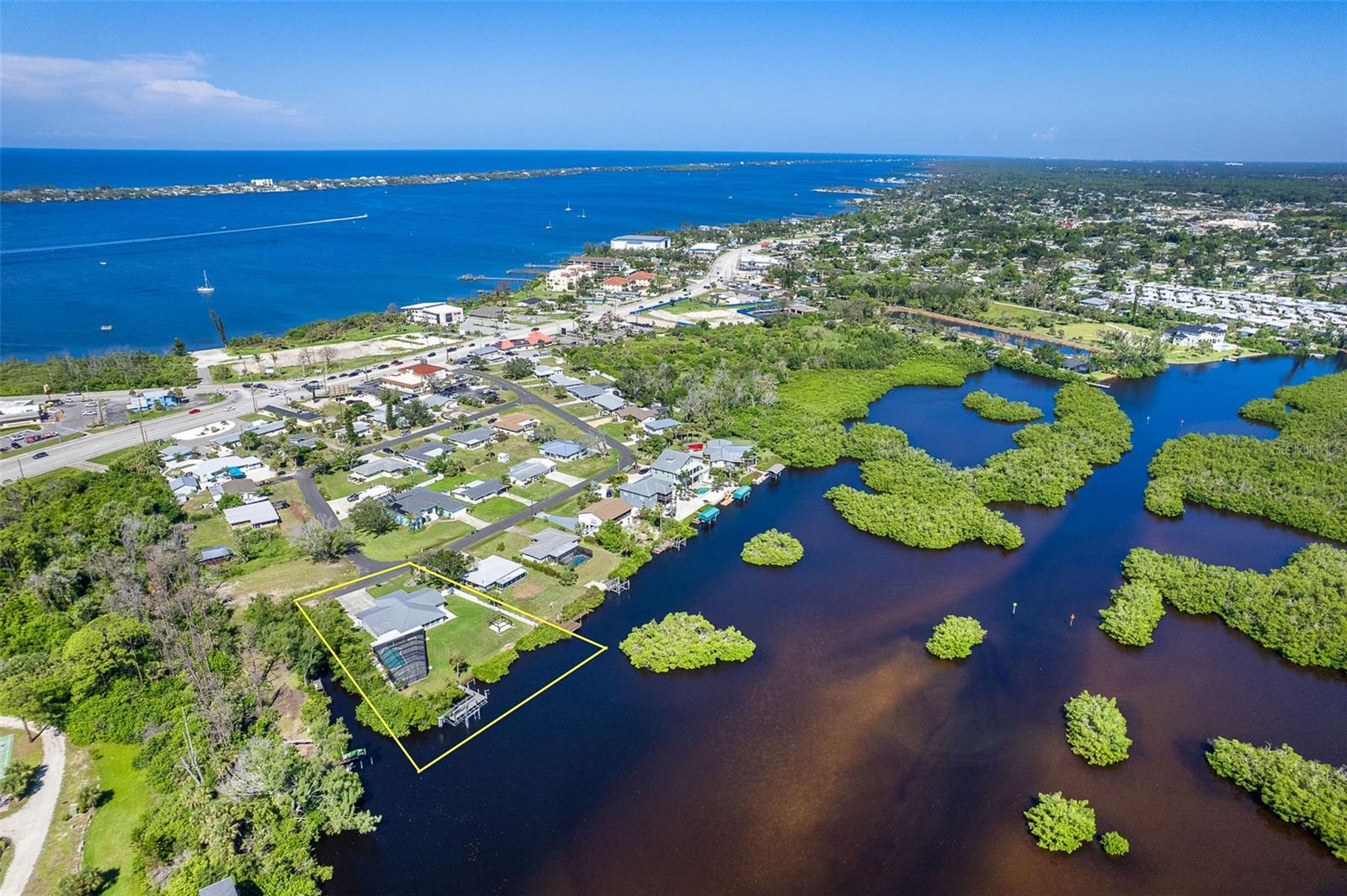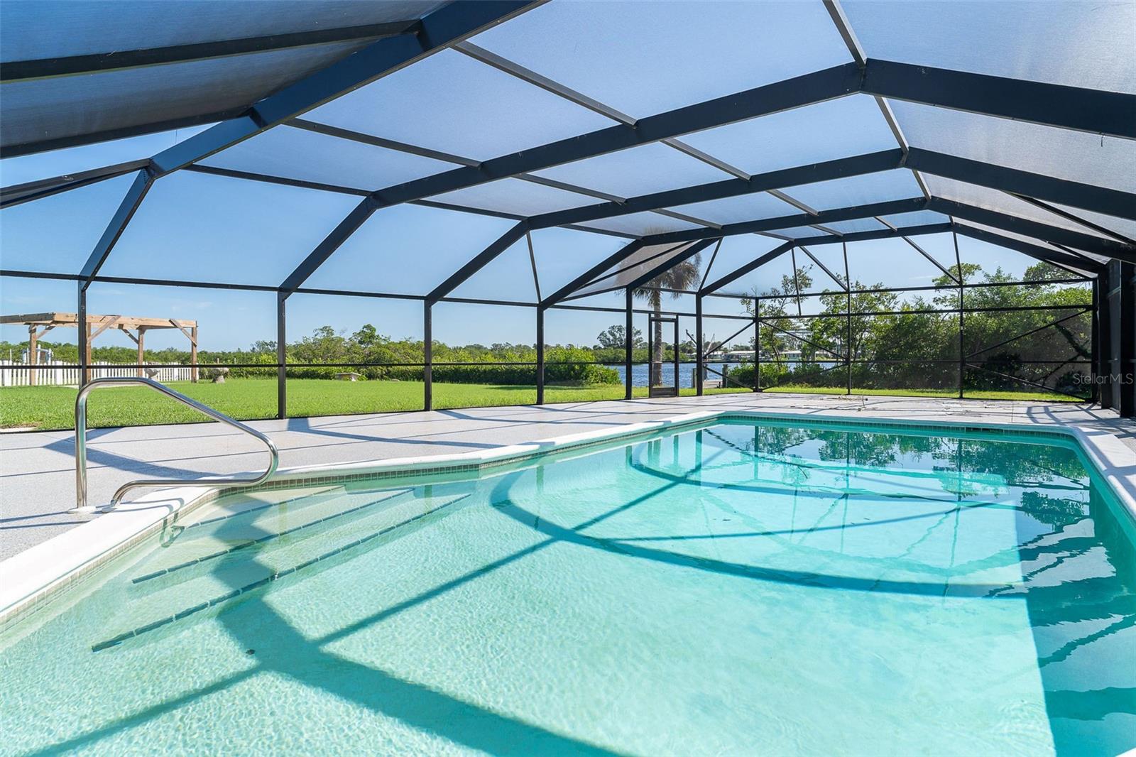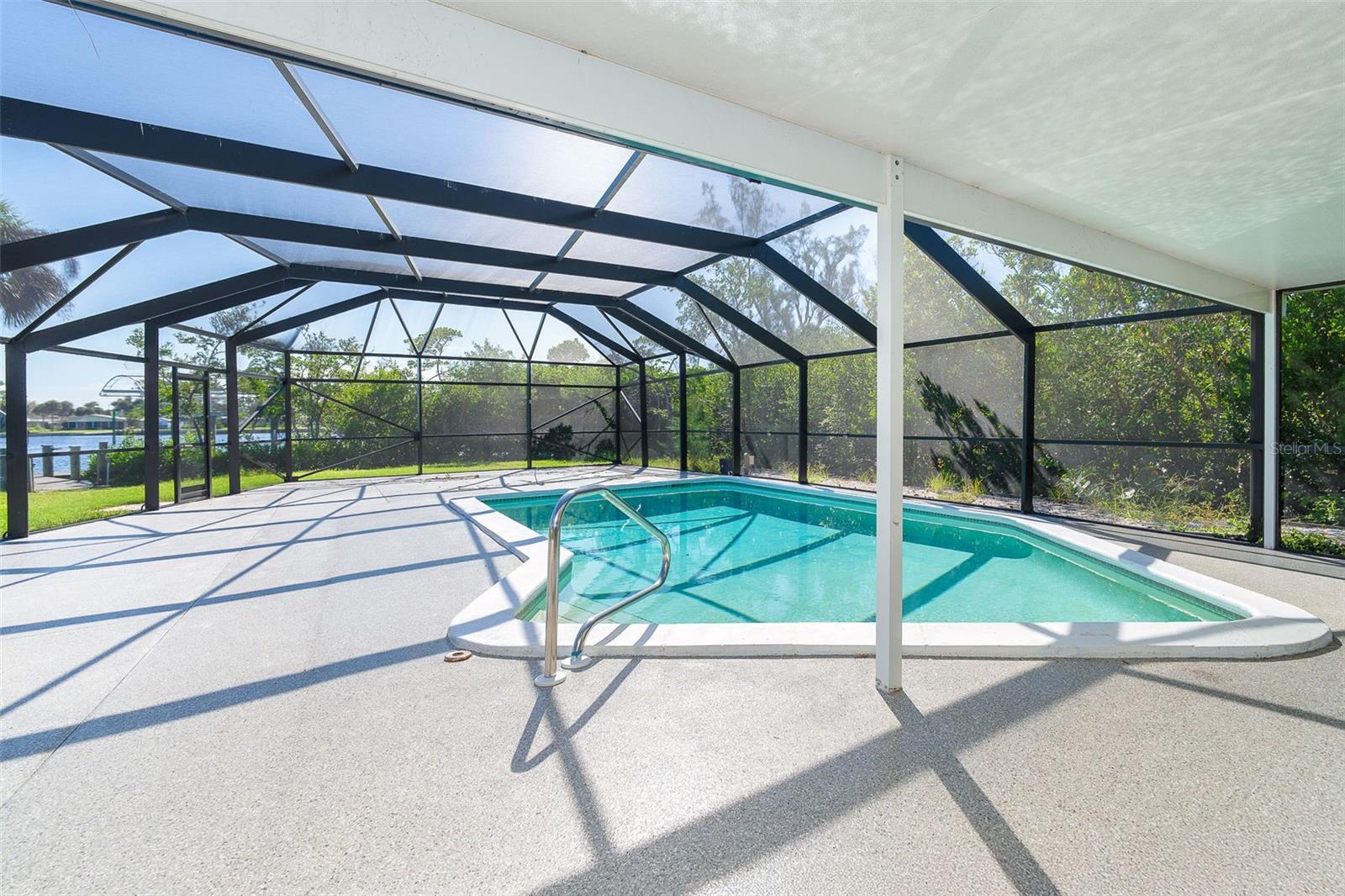 One or more photo(s) has been virtually staged. Welcome to coastal living at its finest. This beautiful 3-bedroom, 3-bath waterfront home is nestled on an oversized lot along scenic Godfrey Creek, offering serene views, exceptional privacy, and direct access to open water with just one fixed bridge. Boaters will appreciate the private dock, perfect for launching sunset cruises or day trips to the Gulf. Step into your private oasis featuring a oversized in-ground pool and a spacious screened lanai with a full pool bath, ideal for outdoor entertaining. The durable metal roof adds peace of mind, while the open floor plan effortlessly blends indoor and outdoor living. Located just minutes from Manasota Key and all three of its pristine beaches-Englewood Beach, Blind Pass Beach, and Stump Pass Beach, this home delivers the best of the Florida lifestyle. Whether you're enjoying a quiet morning on the water or entertaining guests in your tropical backyard retreat, 150 Crestview Dr offers the perfect blend of elegance, comfort, and coastal charm.