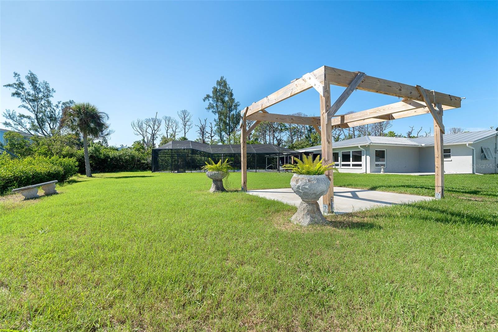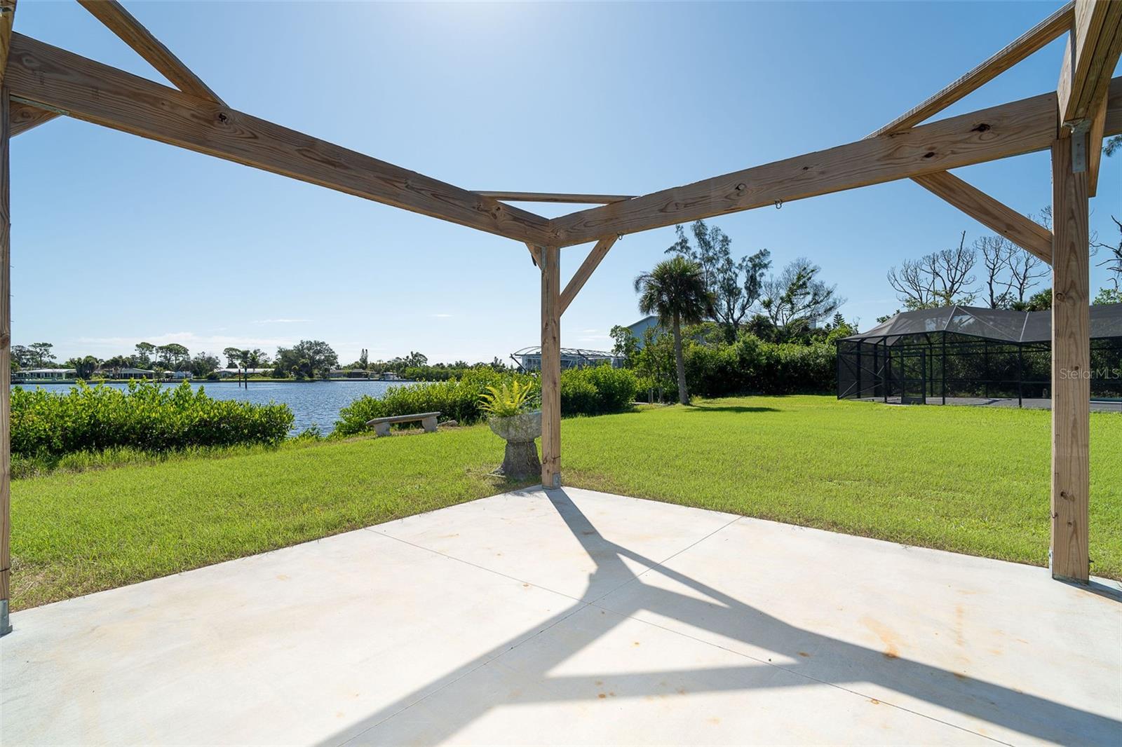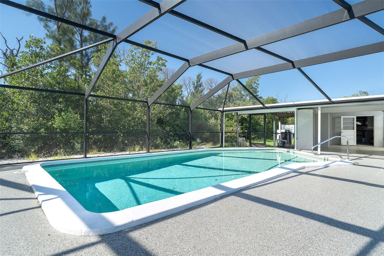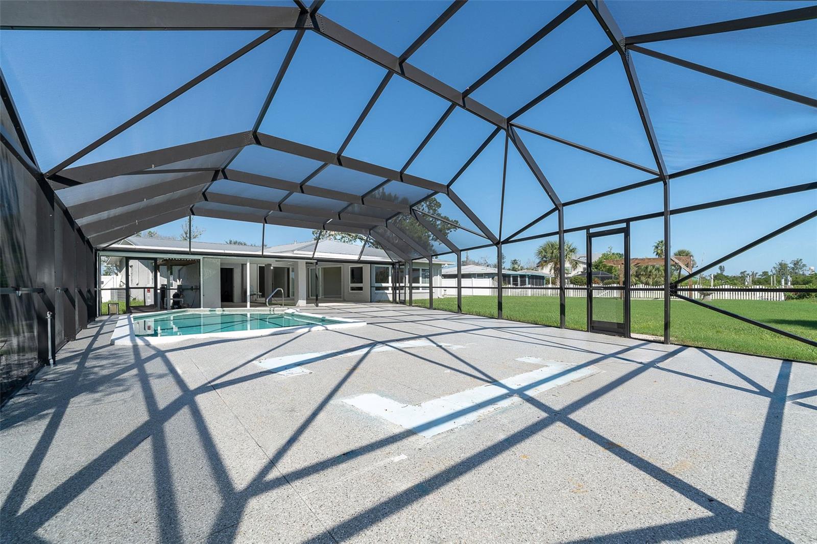 One or more photo(s) has been virtually staged. Welcome to coastal living at its finest. This beautiful 3-bedroom, 3-bath waterfront home is nestled on an oversized lot along scenic Godfrey Creek, offering serene views, exceptional privacy, and direct access to open water with just one fixed bridge. Boaters will appreciate the private dock, perfect for launching sunset cruises or day trips to the Gulf. Step into your private oasis featuring a oversized in-ground pool and a spacious screened lanai with a full pool bath, ideal for outdoor entertaining. The durable metal roof adds peace of mind, while the open floor plan effortlessly blends indoor and outdoor living. Located just minutes from Manasota Key and all three of its pristine beaches-Englewood Beach, Blind Pass Beach, and Stump Pass Beach, this home delivers the best of the Florida lifestyle. Whether you're enjoying a quiet morning on the water or entertaining guests in your tropical backyard retreat, 150 Crestview Dr offers the perfect blend of elegance, comfort, and coastal charm.