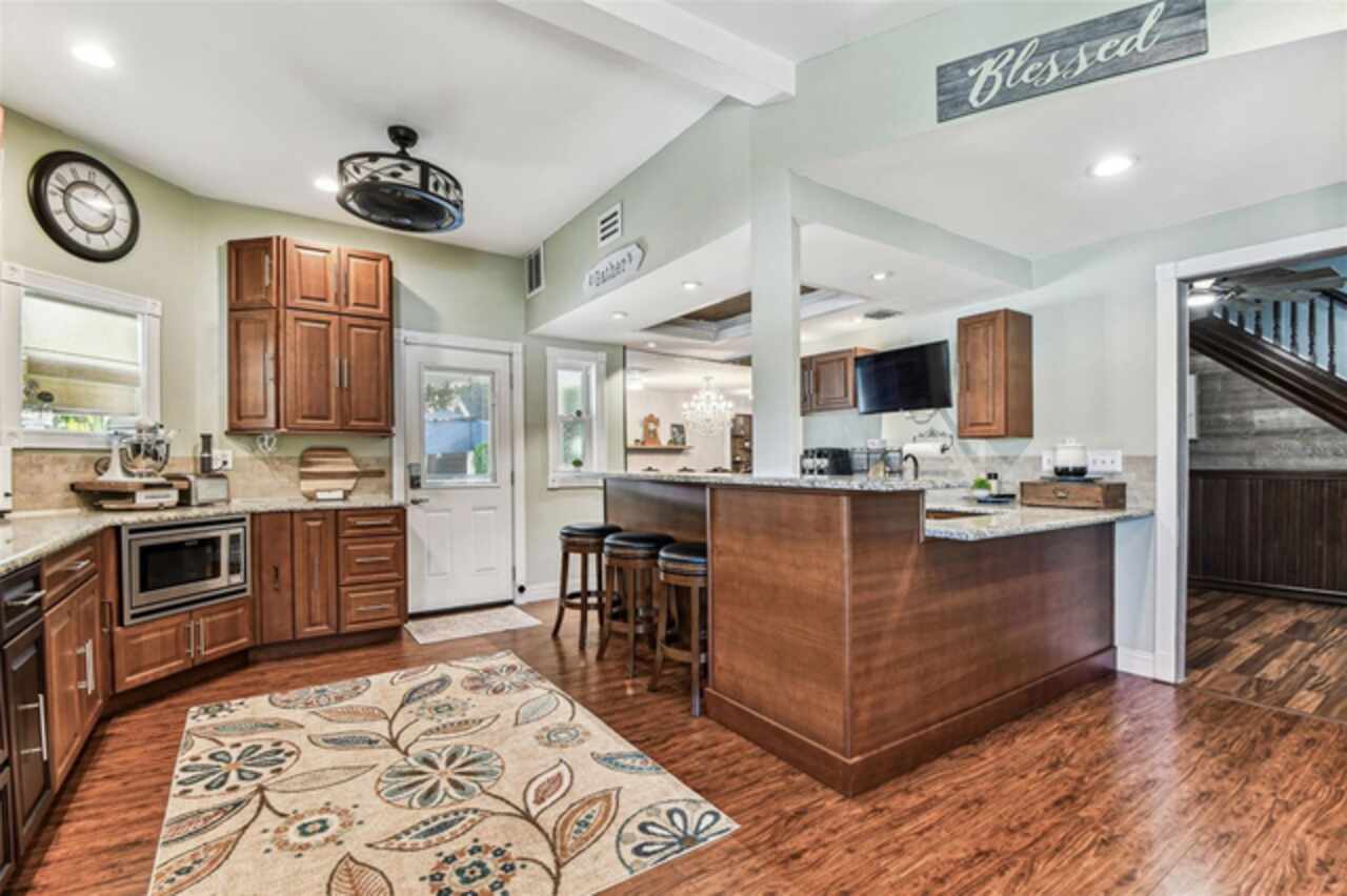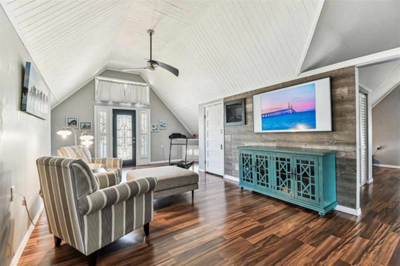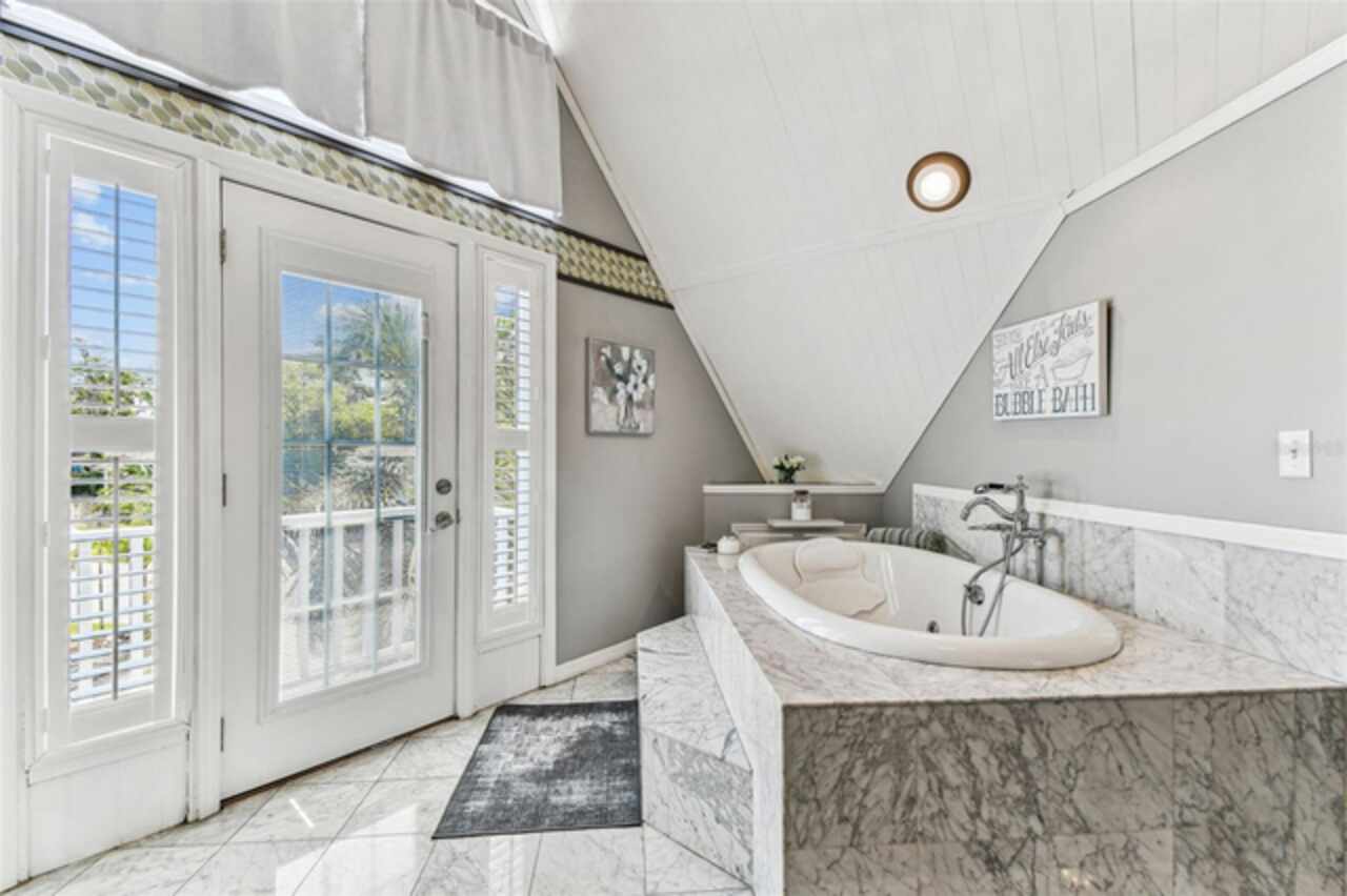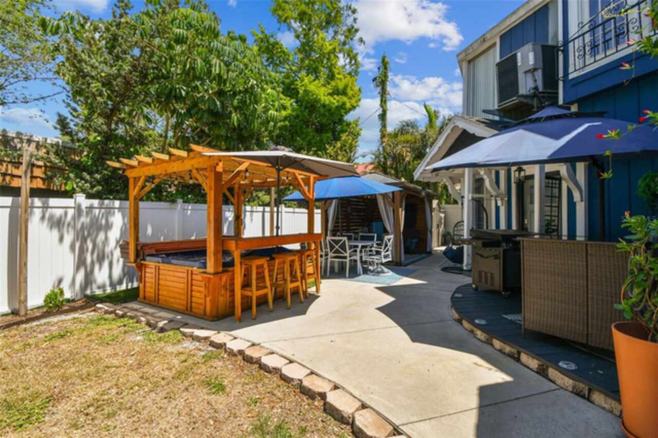 JUST REDUCED! Nestled on a beautifully positioned corner lot directly across from Clearwater Country Club, this stunning Victorian-style home offers an unbeatable combination of historic charm, modern updates, and a golfer's dream location. Enjoy sweeping views of the golf course from your expansive wraparound porch and kitchen window—and with the clubhouse just across the street, you can walk or drive your golf cart over for a quick round. This home offers incredible space and also presents an exciting opportunity for cosmetic updates—allowing you to infuse your own style and make it truly your own. With a recent price reduction, this home is ready for your personal touches. Inside, you are welcomed into a formal living room with charming features like wainscoting, crown molding and ceiling beams. A flex space off the formal living room is currently used as a music room. The formal living room flows into a spacious kitchen made for entertaining. The kitchen features a double oven, wine fridge, built-in coffee bar, cooktop and extensive custom cabinetry. But the highlight of the kitchen is the view out the sink window at hole 4. Adjacent to the kitchen is a formal dining room and spacious media room. The main level also includes two spacious bedrooms, one with an en suite bath and another with a private entrance and kitchenette—ideal for guests or an in-law suite. The primary suite is a true private retreat with a private staircase and sprawling nearly 900 sq ft featuring gently sloped walls that reflect timeless Victorian architecture. The suite features a generous sitting area, private balcony, and a spa-inspired bath featuring a soaking tub, walk-in shower and ample closet space. Up a separate staircase, a 1, 000 sq ft bonus room highlighted by unique rooflines is currently used as a music/media/game room adds even more versatile space. An office rounds out the expansive upstairs. Outdoors, the fenced yard is designed for relaxation and entertainment with a summer kitchen, hot tub with covered gazebo with bar top and stools, dining table with shade umbrella and covered outdoor seating area with TV. Additional features include a two-car garage with laundry and a storage shed. These outdoor entertaining areas still afford for a large yard with room for a pool or playground. This non- evacuation, non-flood zone home is just minutes from beautiful Clearwater Beach for sunny days in the sand and nights filled with live music and delicious dining. Don’t miss this rare opportunity to own a true gem in a prime golf course setting.