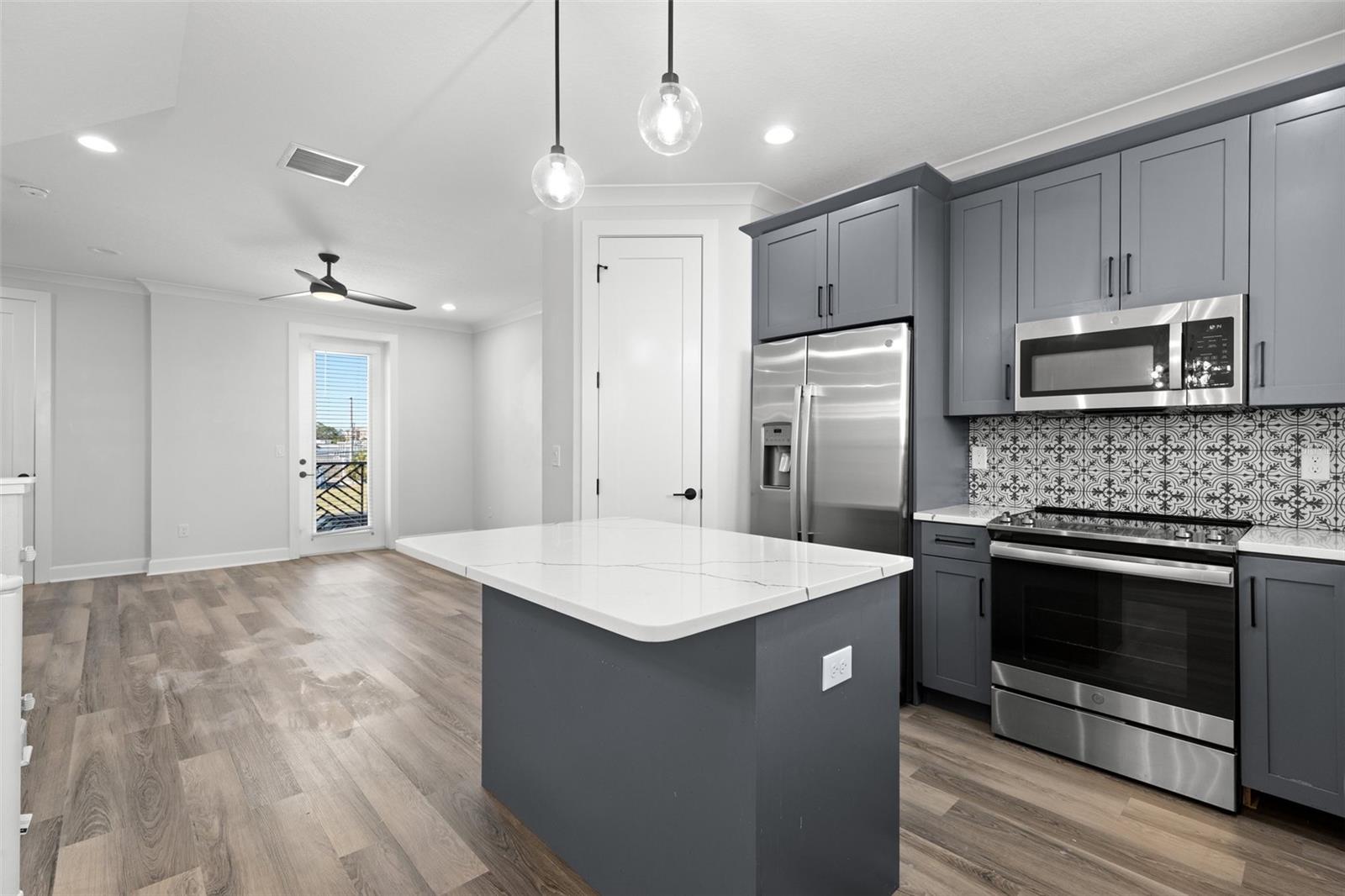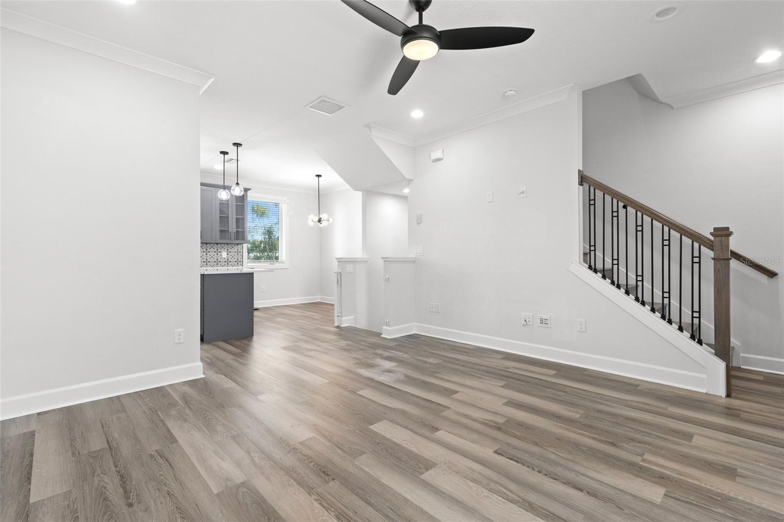 Ceiling Fans(s), Crown Molding, High Ceilings, In Wall Pest System, Kitchen/Family Room Combo, PrimaryBedroom Upstairs, Solid Surface Counters