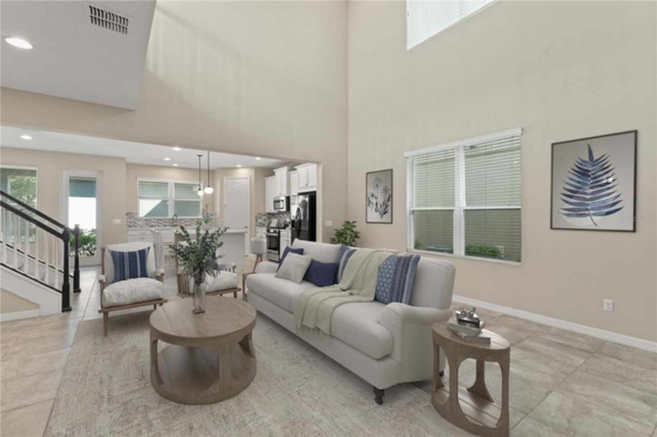 Eat-in Kitchen, High Ceilings, Living Room/Dining Room Combo, Open Floorplan, PrimaryBedroom Upstairs
