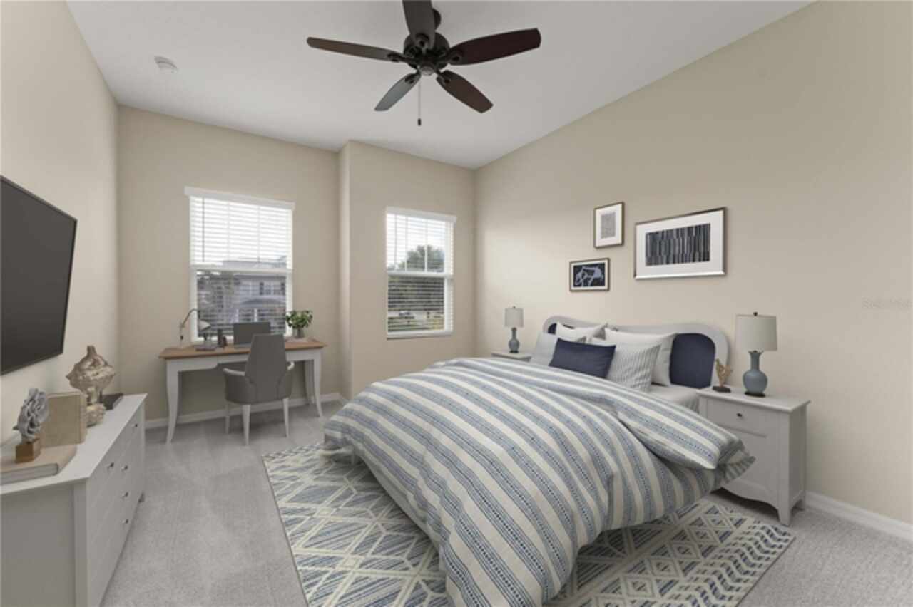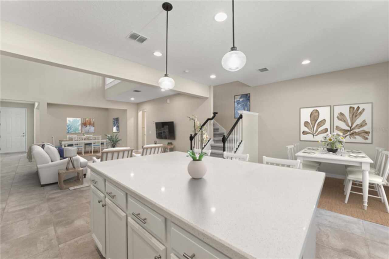 Under contract-accepting backup offers. One or more photo(s) has been virtually staged. Welcome to 15019 Valverse Aly, a thoughtfully designed two-story home in the heart of Winter Garden, situated on a sought after front greenspace/mews lot. Centrally located in Overlook at Hamlin Reserve, one of Central Florida’s most desirable neighborhoods, this 3-bed, 2.5-bath pristine residence offers the perfect balance of affordability and luxury. From its open-concept living spaces to its well-appointed private quarters, every inch of this Butler Model was designed for modern comfort and connection. As you enter, you are greeted with an open concept formal dining room and a two-story family room, which serves as the heartbeat of the home, with open access to the kitchen and casual dining area. The chef’s kitchen boasts updated cabinetry, an oversized island, ample pantry storage, and a cozy breakfast nook with a peaceful view of the patio. Complete with a gas cooktop and modern backsplash, this is the perfect kitchen for the entertainer at heart. A private downstairs bedroom with an adjacent full bath offers a perfect guest retreat, in-law suite, or dedicated office. Upstairs, at one end of the hall, the split-bedroom layout and shared bathroom provide a secure and cozy feel. Conveniently, the laundry room is also found upstairs. At the other end of the hall, the oversized primary suite includes a large walk-in closet and ensuite bathroom. This home is truly move-in ready with recent upgrades including brand new carpet, paint, and professionally painted kitchen cabinetry. Residents of Hamlin Reserve enjoy access to resort-style amenities including a sparkling pool, clubhouse, fitness center, playgrounds, walking trails, dog park, boat ramp, ampitheater, and green spaces. With close proximity to top-rated schools, shopping, and the excitement of nearby downtown Winter Garden and Hamlin Town Center, this home blends everyday ease with elevated living!