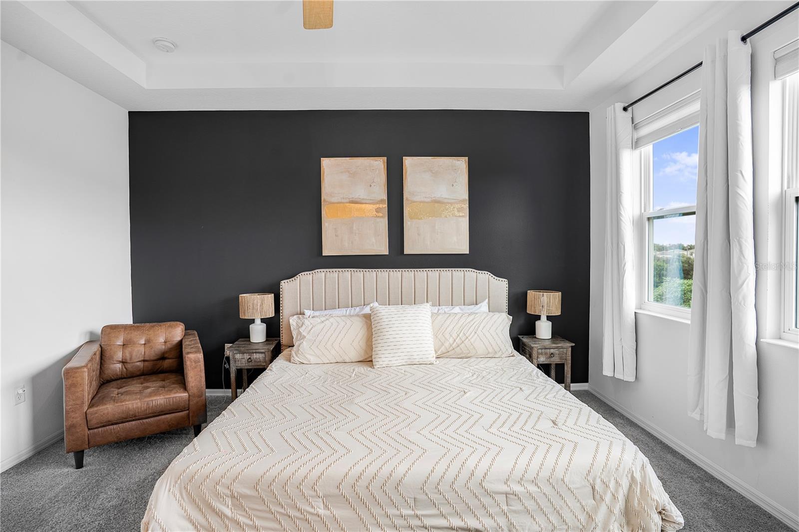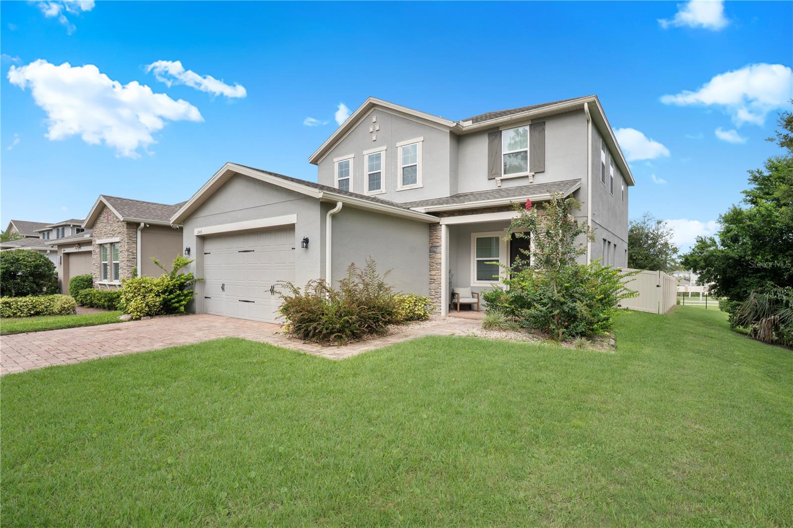 This exquisite 4-bedroom, 3-bath home in the highly sought-after Arden Park offers refined living on a massive lot with serene greenbelt views and only one neighbor. The home features planking porcelain tile floors, high ceilings, expansive windows, and a gourmet kitchen with granite countertops, elegant glass-front wine sec. and roll-out shelving. The primary suite upstairs is a true retreat with decadent crown molding, dual walk-in closets, and an expanded master shower. 2 additional bedrooms are upstairs along with a second living room/den, while one bedroom with a full bath is conveniently located downstairs. Enjoy seamless indoor-outdoor living on your private covered lanai, and easy access to walking trails along Lake Sims and a playground. Arden Park offers gated access, a clubhouse with pool and fitness center, and a vibrant community lifestyle, all near top schools, downtown Winter Garden, the 429, and the upcoming $1B Dynasty Sports Complex.