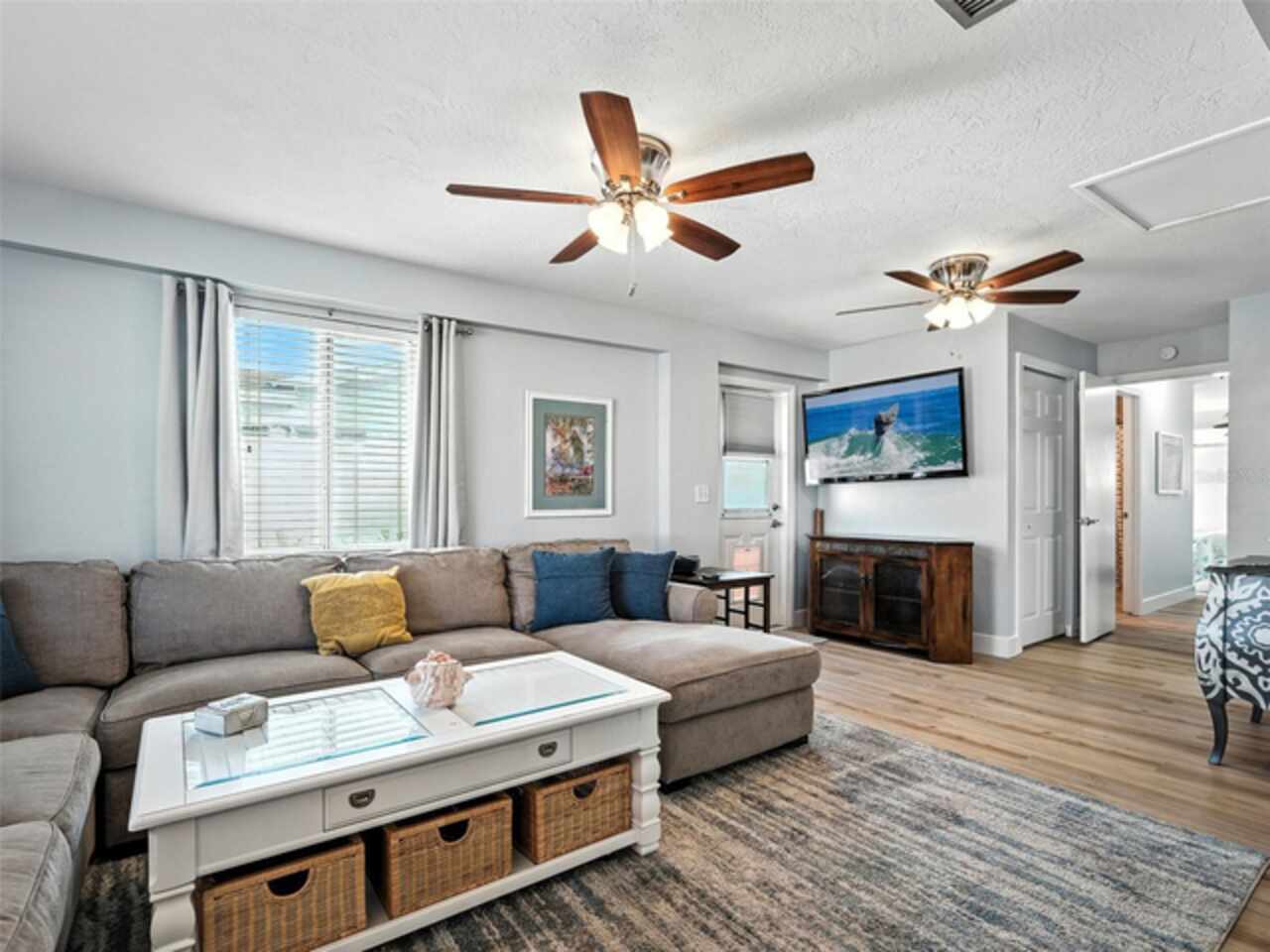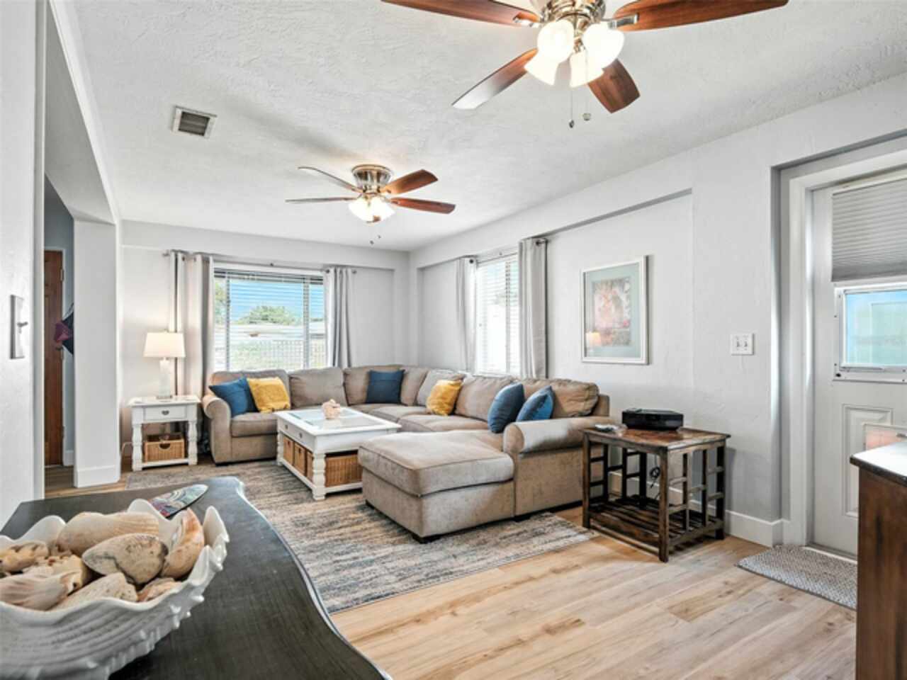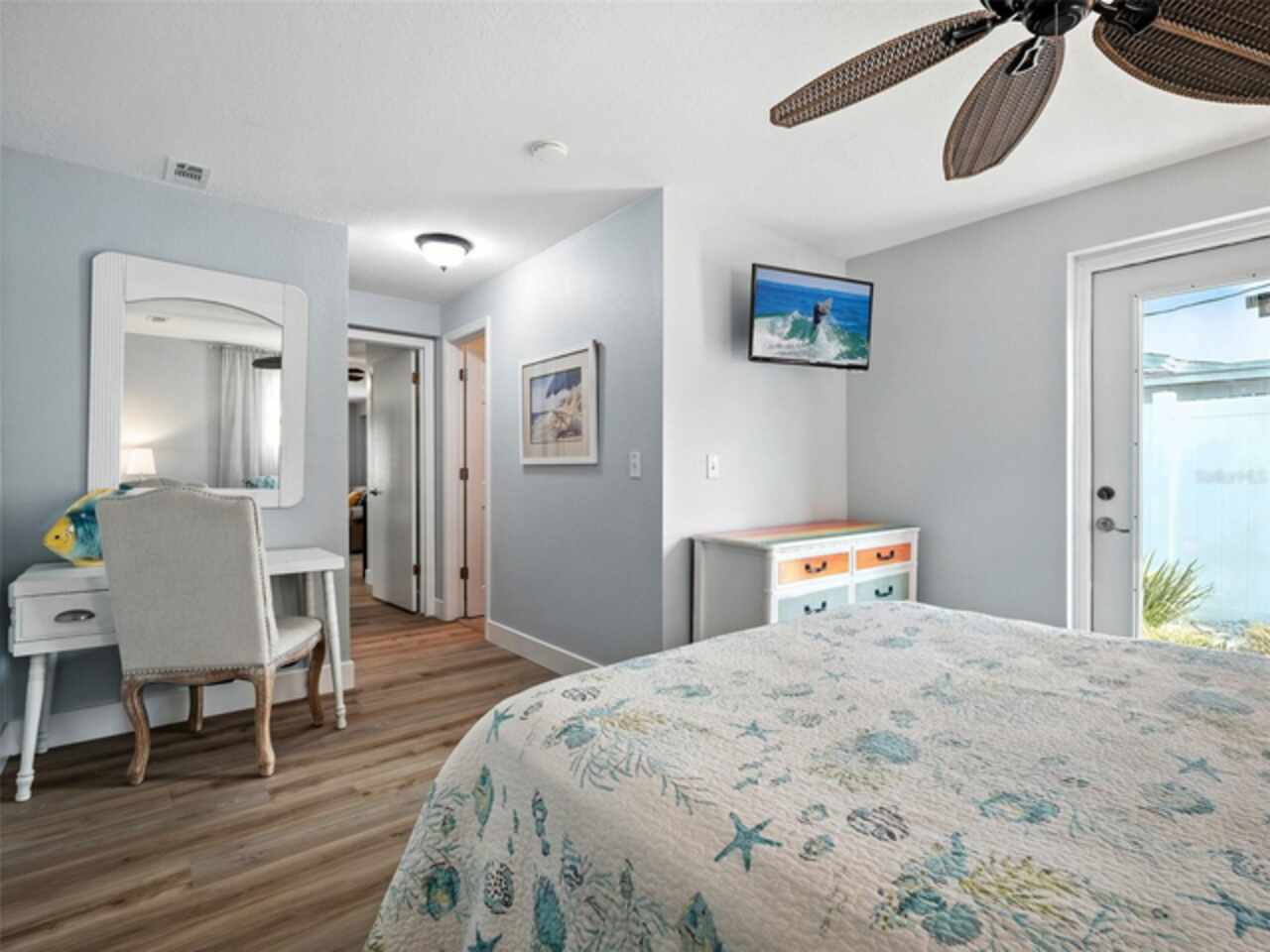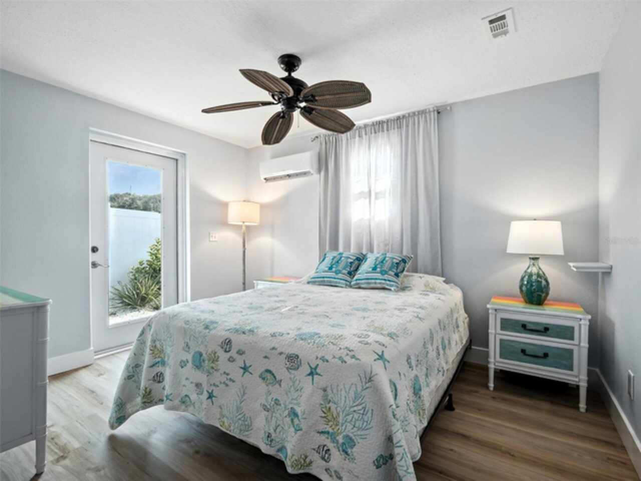 Lovely bungalow just steps to beach access and walking/biking distance to Flagler Ave, shopping, and restaurants. The home has been well maintained and offers a split bedroom plan with spacious living room/dining room combo. Stepping into the backyard you have a serene screened patio, outdoor shower, fire pit, additional covered storage, and beautiful landscaping. Raised seem metal roof, brand new mini split in primary bedroom, hurricane shutters, laundry inside, stainless steel appliances, and LVP throughout 100% waterproof with lifetime warranty. Southard Ave is a peaceful street in the heart of beachside. Furniture is negotiable.