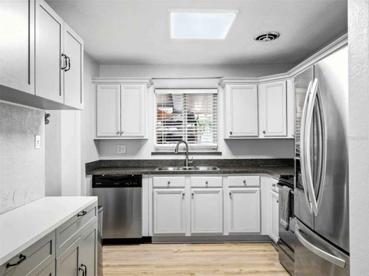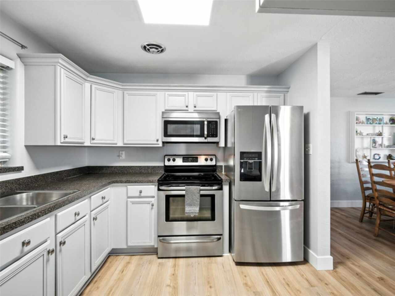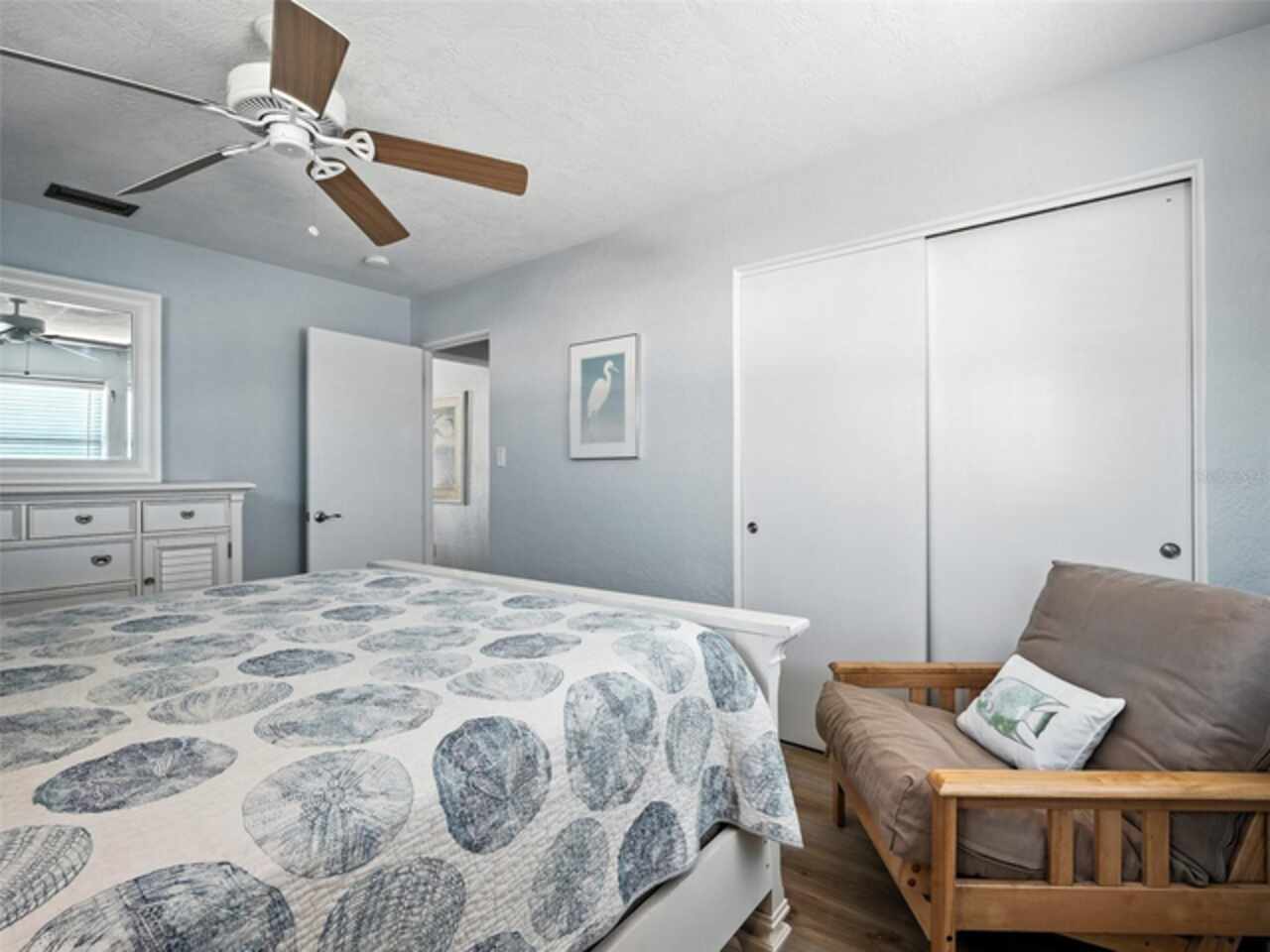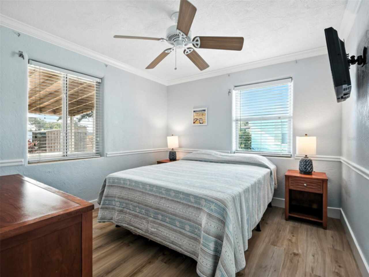 Lovely bungalow just steps to beach access and walking/biking distance to Flagler Ave, shopping, and restaurants. The home has been well maintained and offers a split bedroom plan with spacious living room/dining room combo. Stepping into the backyard you have a serene screened patio, outdoor shower, fire pit, additional covered storage, and beautiful landscaping. Raised seem metal roof, brand new mini split in primary bedroom, hurricane shutters, laundry inside, stainless steel appliances, and LVP throughout 100% waterproof with lifetime warranty. Southard Ave is a peaceful street in the heart of beachside. Furniture is negotiable.