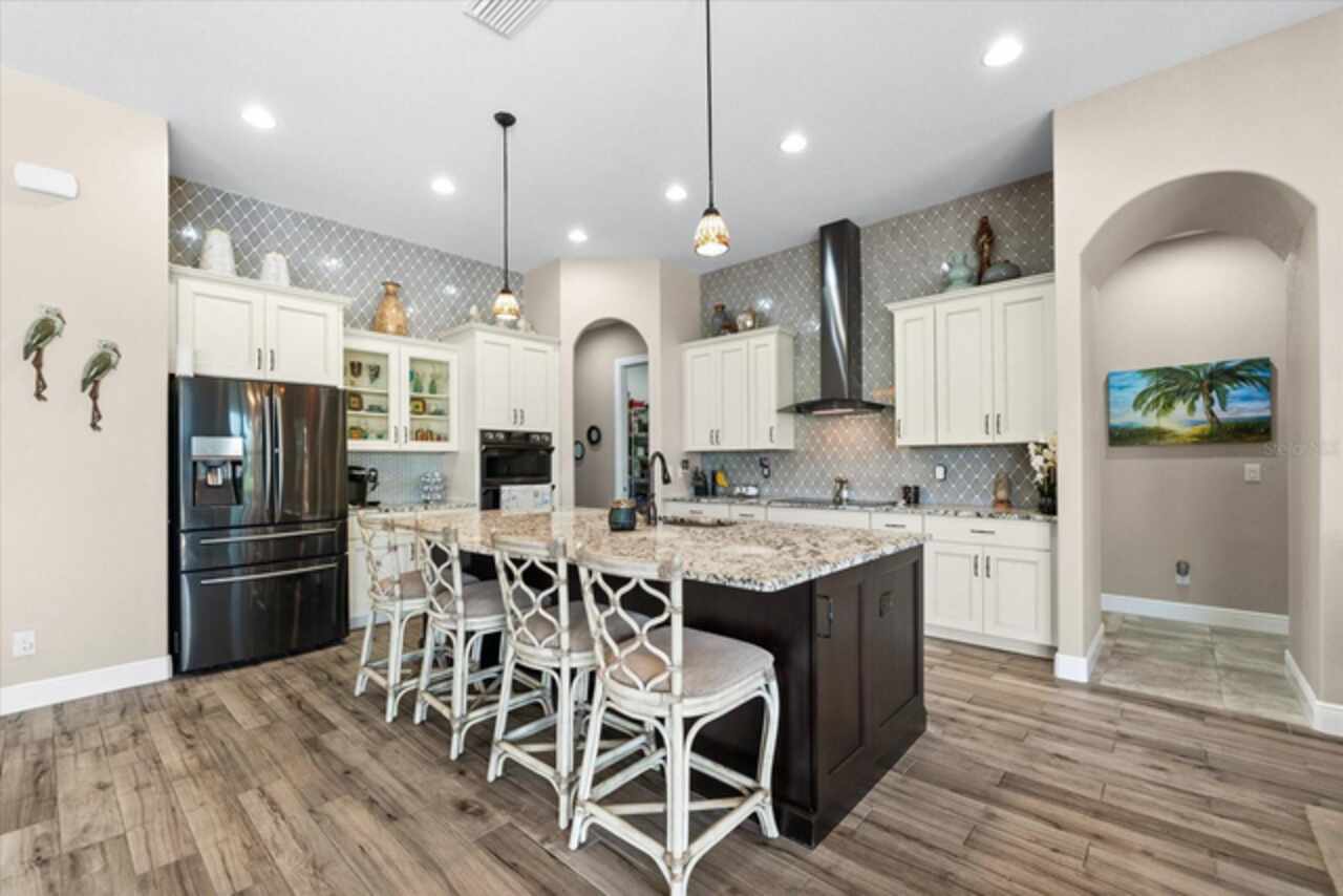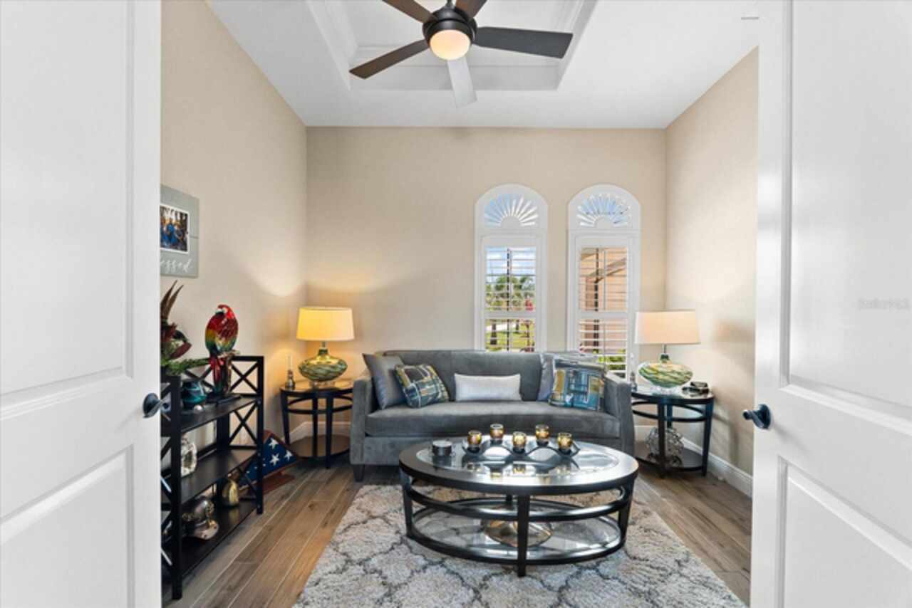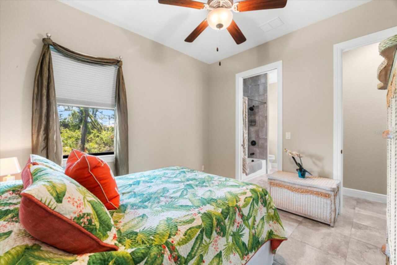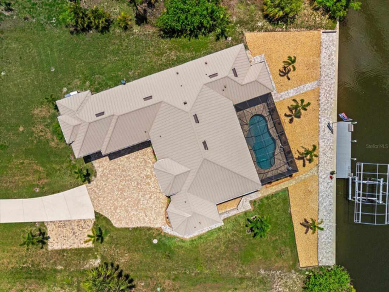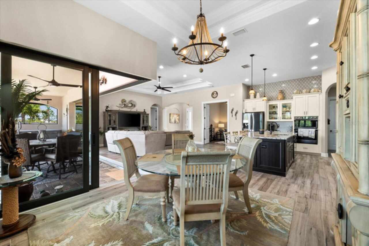 Experience the best of Florida living in this custom-built estate home, featuring 4 bedrooms, 3.5 baths, and a den, beautifully positioned on 1.25 acres along the Zephyr Waterway with 125 feet of sea-walled waterfront and ideal southern exposure. Built in 2018, this 2, 681 sq ft estate offers the perfect blend of luxury, privacy, and easy access to both boating and nearby golf courses in the highly desirable South Gulf Cove community. Enjoy stunning views and vibrant boat traffic from your backyard on one of the area’s most sought-after wide canals. Inside, the home boasts a thoughtfully designed open floor plan with a double tray volume ceiling, gorgeous plank flooring throughout, and expansive 0° sliders that flood the main living areas with natural light, offering seamless indoor-outdoor living. A den with French doors provides an ideal space for a home office or cozy retreat. The heart of the home is the gourmet kitchen, designed to impress with upgraded granite countertops, a dramatic 10-foot island, staggered cabinetry, and decorative backsplash tile that extends to the ceiling. A spacious walk-in pantry and a state-of-the-art 2023 induction stove complete this high-end culinary space, perfect for both everyday living and entertaining. The expansive primary suite serves as a serene retreat, featuring a decorative ceiling, ample space for a seating area, and large windows that allow natural light to fill the room. The spa-like ensuite bath offers a luxurious walk-through shower with dual showerheads, double vanities, and a deep soaking tub—creating the perfect blend of comfort, elegance, and functionality. For added privacy, the guest bedrooms are located on the opposite side of the home, each with convenient access to their own bathrooms, making them ideal for family or visitors. Outdoor living is a true highlight of this property. Relax in the heated pool, surrounded by mature landscaping and protected by roll-down shutters on the lanai. A separate bar area with a refrigerator, sink, and icemaker makes entertaining a breeze. The full irrigation system keeps the expansive yard green year-round. Waterfront amenities include a 10, 000 lb covered boat lift, water and electric at the dock, and a paver pad running the full 125 feet of sea-walled waterfront, providing a clean, polished look and convenient access along the shoreline. Additional upgrades include a new roof (2023), impact windows and doors, Bahama shutters, electric remote-controlled room-darkening shades, and a whole-house generator plug for added peace of mind. The three-car garage boasts a durable epoxy floor, and two outdoor sheds provide convenient extra storage. Don’t miss this rare opportunity—schedule your private showing today!