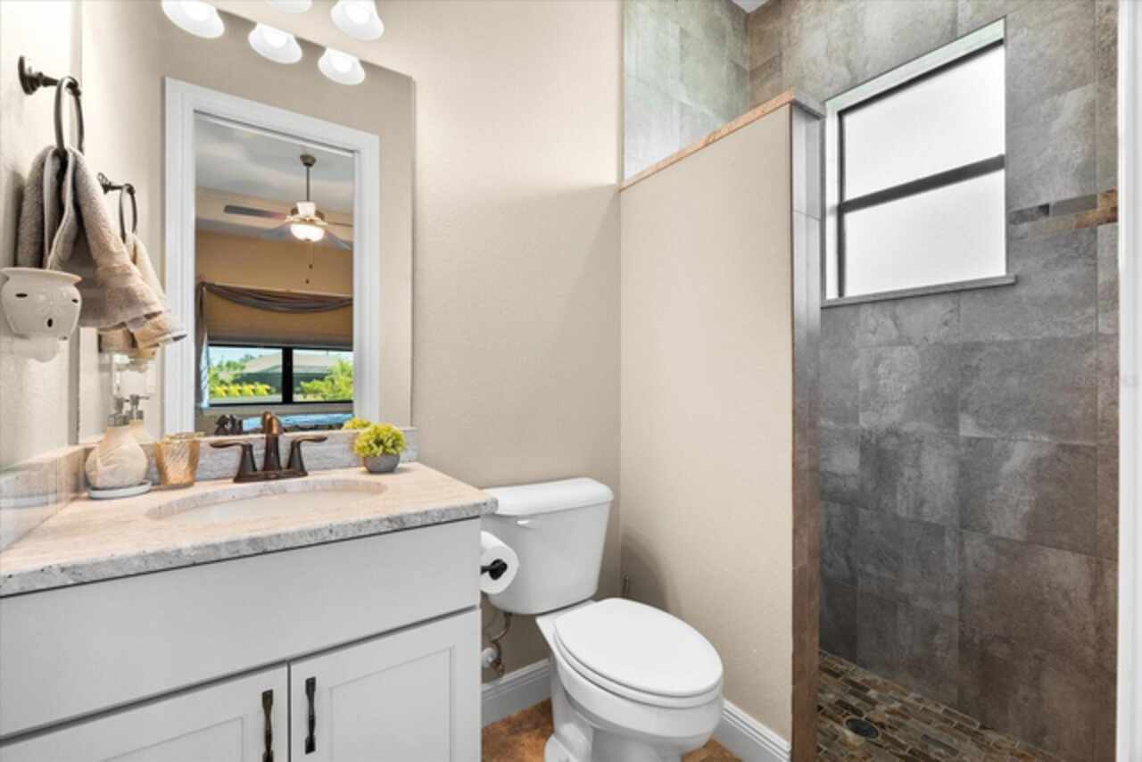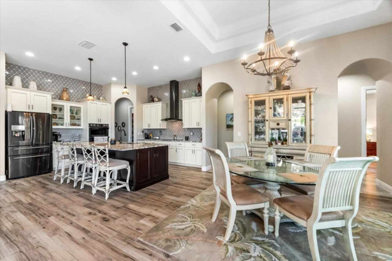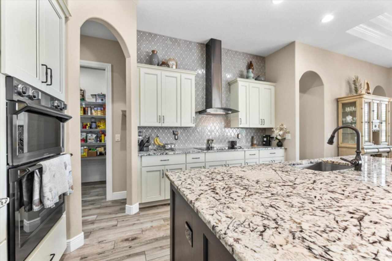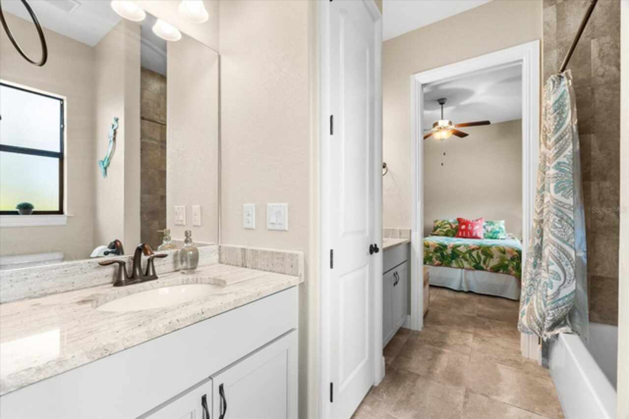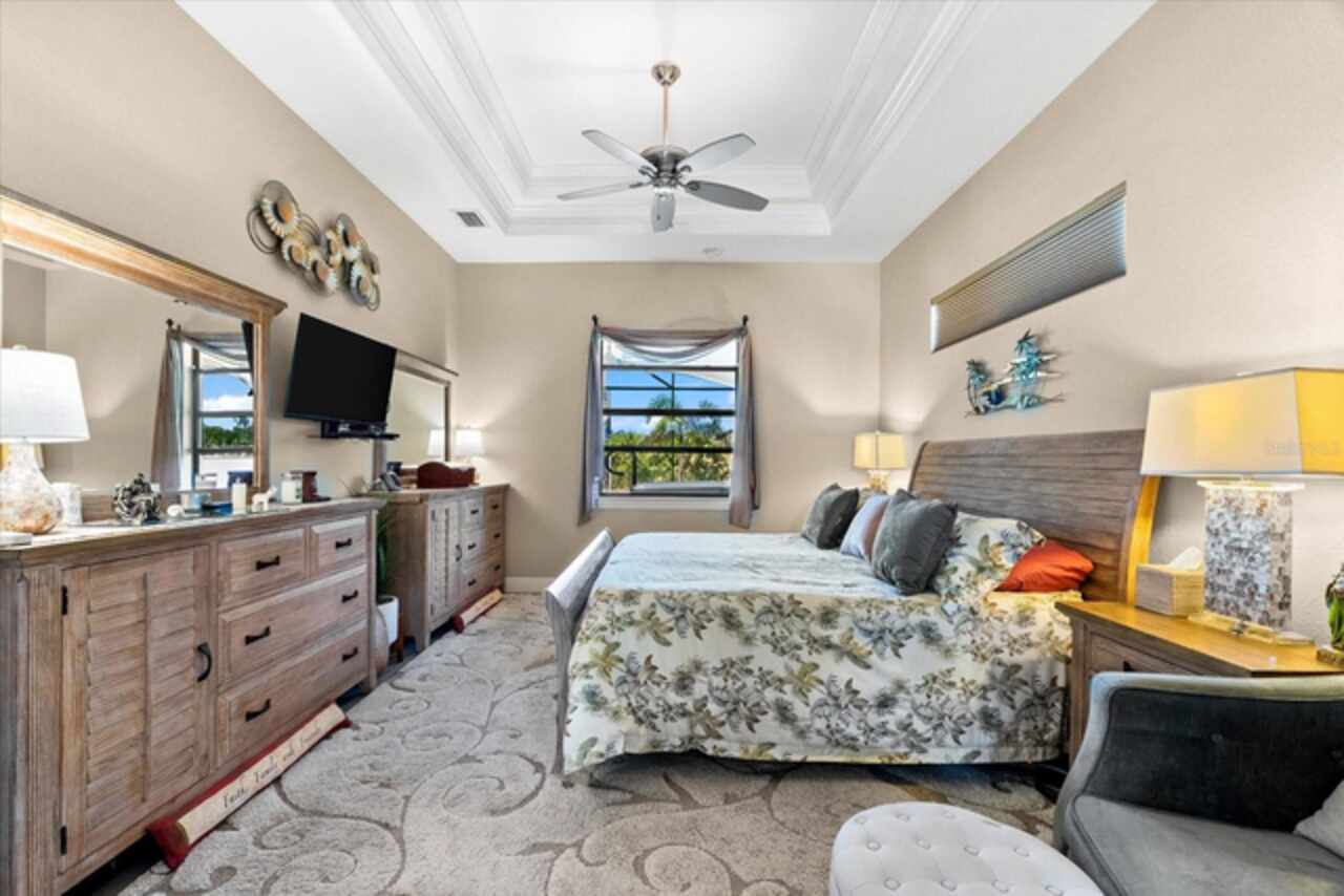 Experience the best of Florida living in this custom-built estate home, featuring 4 bedrooms, 3.5 baths, and a den, beautifully positioned on 1.25 acres along the Zephyr Waterway with 125 feet of sea-walled waterfront and ideal southern exposure. Built in 2018, this 2, 681 sq ft estate offers the perfect blend of luxury, privacy, and easy access to both boating and nearby golf courses in the highly desirable South Gulf Cove community. Enjoy stunning views and vibrant boat traffic from your backyard on one of the area’s most sought-after wide canals. Inside, the home boasts a thoughtfully designed open floor plan with a double tray volume ceiling, gorgeous plank flooring throughout, and expansive 0° sliders that flood the main living areas with natural light, offering seamless indoor-outdoor living. A den with French doors provides an ideal space for a home office or cozy retreat. The heart of the home is the gourmet kitchen, designed to impress with upgraded granite countertops, a dramatic 10-foot island, staggered cabinetry, and decorative backsplash tile that extends to the ceiling. A spacious walk-in pantry and a state-of-the-art 2023 induction stove complete this high-end culinary space, perfect for both everyday living and entertaining. The expansive primary suite serves as a serene retreat, featuring a decorative ceiling, ample space for a seating area, and large windows that allow natural light to fill the room. The spa-like ensuite bath offers a luxurious walk-through shower with dual showerheads, double vanities, and a deep soaking tub—creating the perfect blend of comfort, elegance, and functionality. For added privacy, the guest bedrooms are located on the opposite side of the home, each with convenient access to their own bathrooms, making them ideal for family or visitors. Outdoor living is a true highlight of this property. Relax in the heated pool, surrounded by mature landscaping and protected by roll-down shutters on the lanai. A separate bar area with a refrigerator, sink, and icemaker makes entertaining a breeze. The full irrigation system keeps the expansive yard green year-round. Waterfront amenities include a 10, 000 lb covered boat lift, water and electric at the dock, and a paver pad running the full 125 feet of sea-walled waterfront, providing a clean, polished look and convenient access along the shoreline. Additional upgrades include a new roof (2023), impact windows and doors, Bahama shutters, electric remote-controlled room-darkening shades, and a whole-house generator plug for added peace of mind. The three-car garage boasts a durable epoxy floor, and two outdoor sheds provide convenient extra storage. Don’t miss this rare opportunity—schedule your private showing today!