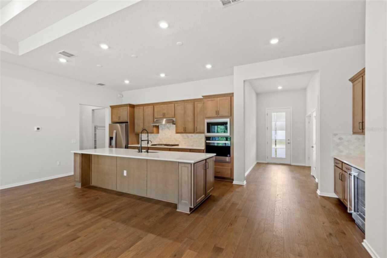 Welcome to this stunning Stardon floorplan located in the highly sought-after Del Webb Oasis community of Winter Garden. Situated on an oversized lot backing to peaceful conservation views, this beautifully upgraded home offers 3 bedrooms, 2.5 bathrooms, a private den with French doors, and an expansive 2, 270 square feet of open-concept living.From the moment you arrive, you'll notice thoughtful architectural details, including exterior stone accents and double tray ceilings. Inside, the gourmet kitchen features stainless steel appliances, upgraded cabinetry, and a spacious wet bar with a wine fridge—perfect for entertaining. The large great room flows effortlessly to the outdoor screened-in lanai, where you’ll find a full summer kitchen and oversized patio—ideal for enjoying Florida evenings bug-free. Additional highlights include luxury vinyl plank flooring throughout, a spacious laundry room, smart home technology, custom water filtration systems, and elegantly upgraded bathrooms. This home was designed for both comfort and style.Homeownership includes access to "The Oasis" clubhouse, a true resort-style retreat with a sparkling pool and cabanas, state-of-the-art fitness center, walking and biking trails, and a full calendar of activities for active adult living. The HOA also covers all exterior maintenance, internet, and pest control—allowing you to enjoy a carefree lifestyle at your own pace. Whether you're looking to relax, explore, or entertain, this home is your perfect base—just minutes from Disney, yes you can see the fireworks, yet tucked away in serene luxury.