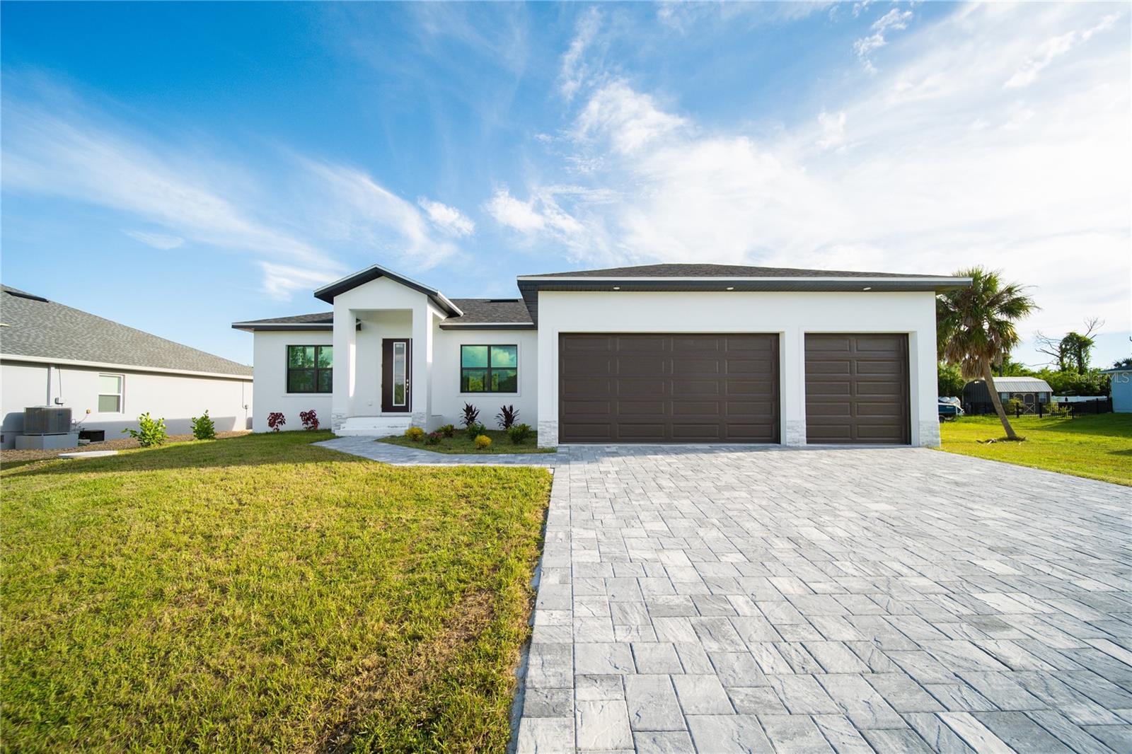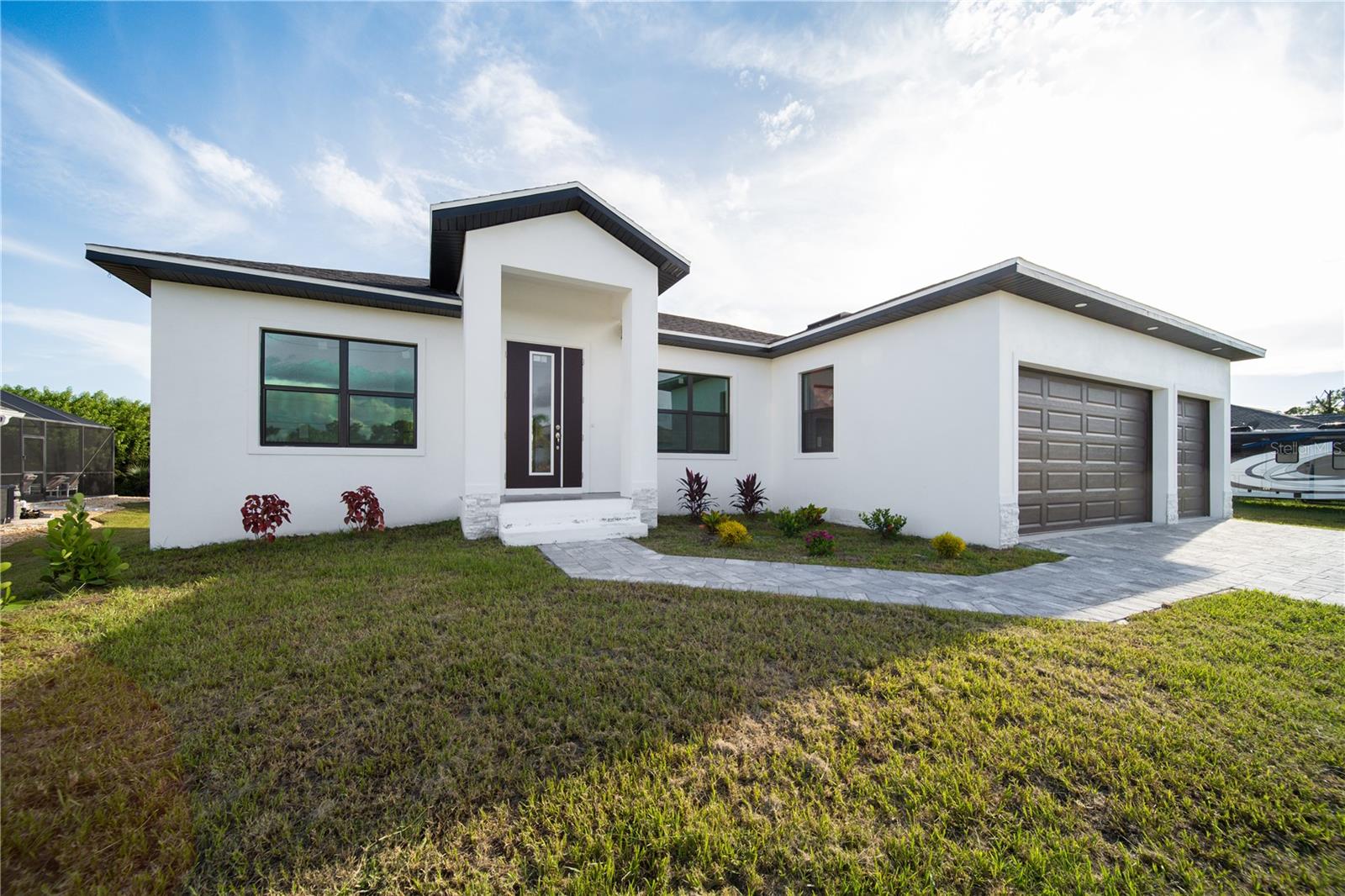 Welcome to your new custom-built home! This stunning residence blends modern elegance with thoughtful design, offering 3 bedrooms, 2.5 bathrooms, and a spacious 3-car garage. Step inside and enjoy the airy 10-foot ceilings in the living room and 9’4” ceilings throughout the rest of the home, creating a bright and open feel. Premium porcelain tile flooring flows seamlessly through the entire home, including the lanai, porch, and bathrooms, where you’ll also find beautifully tiled showers. The kitchen and bathrooms are adorned with premium quartz countertops, complemented by Samsung stainless steel appliances, while both full bathrooms feature private toilet rooms and the Jack & Jill bath ensures comfort and convenience for family or guests. This home is built for durability and peace of mind with aluminum-framed impact windows and doors, a paver driveway, and high-elevation construction for added flood protection. Additional highlights include a power outlet for a generator in the garage, custom design details, and a window in the garage for natural light. With a total of 2, 368 sq. ft. (1, 678 sq. ft. under air), this home provides the perfect balance of indoor and outdoor living, with the tiled lanai and porch offering a relaxing space to unwind while enjoying the security and quality of this exceptional property. Located in the highly desirable South Gulf Cove community, residents enjoy over 55 miles of navigable canals with direct access to Charlotte Harbor and the Gulf of Mexico, a community boat ramp, neighborhood parks, walking and biking paths, and recreational spaces including a playground and basketball court. The area is a boater’s and angler’s paradise, with world-class fishing, kayaking, and water sports right at your doorstep. Just minutes away are Boca Grande, Gasparilla Island, and Englewood Beach, as well as nearby golf courses, shopping, dining, and medical services. With a peaceful setting, modern conveniences, South Gulf Cove offers the perfect blend of lifestyle & location. Call us today to schedule a private showing.
