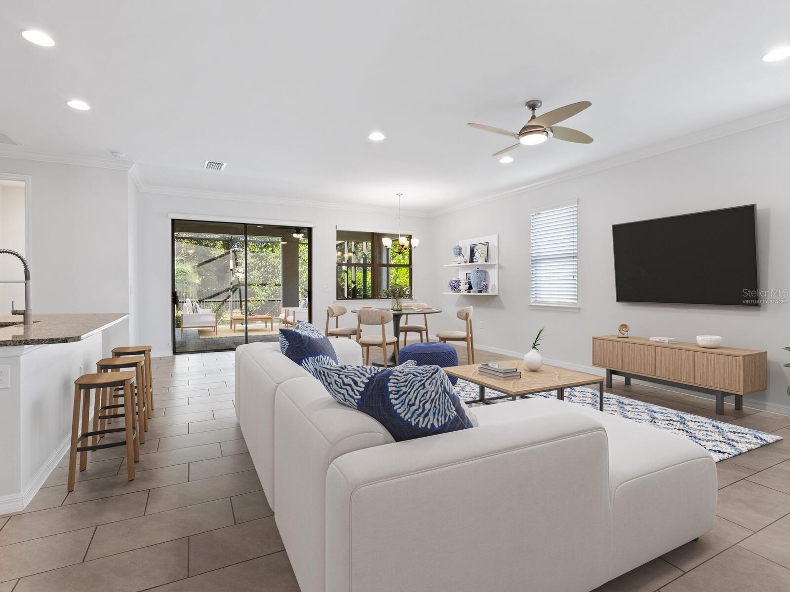 Welcome to Toscana Isles! This beautifully maintained Clifton model offers 1, 816 sq. ft. of thoughtfully designed living space in one of Nokomis’ premier gated communities. Featuring 3 bedrooms, 2 baths, and a versatile flex space with a Murphy bed, this home provides both comfort and flexibility for guests or a home office. The split-bedroom floor plan highlights a spacious great room that flows seamlessly to the covered, screened lanai—perfect for enjoying Florida’s outdoor lifestyle. Upgrades include crown molding, tile and luxury vinyl plank flooring throughout, granite kitchen countertops, stainless-steel appliances and fresh interior paint throughout. The tile roof, brick paver driveway, and fenced backyard add to the home’s curb appeal and functionality. A 2-car garage provides plenty of storage. Step outside to a relaxing lanai surrounded by a spacious fenced yard perfect for pets to roam freely. Equipped with hurricane shutters for peace of mind. Toscana Isles is a gated, maintenance-free, resort-style community featuring a Tuscan-inspired 8, 000 sq. ft. clubhouse with an infinity-edge pool overlooking scenic lakes, state-of-the-art fitness center, billiards room with bar, catering kitchen, and event spaces. Outdoor amenities include tennis, pickleball, and bocce courts, a playground, dog park, fire pit, and over 200 acres of interconnected lakes for kayaking, canoeing, paddleboarding, and fishing. A full-time activities director keeps the social calendar vibrant. Located just minutes from Gulf beaches, Historic Downtown Venice, Wellen Park, shopping, dining, top-rated schools, and the Sarasota Memorial Hospital Venice Campus, with easy access to I-75. Some photos virtually staged.