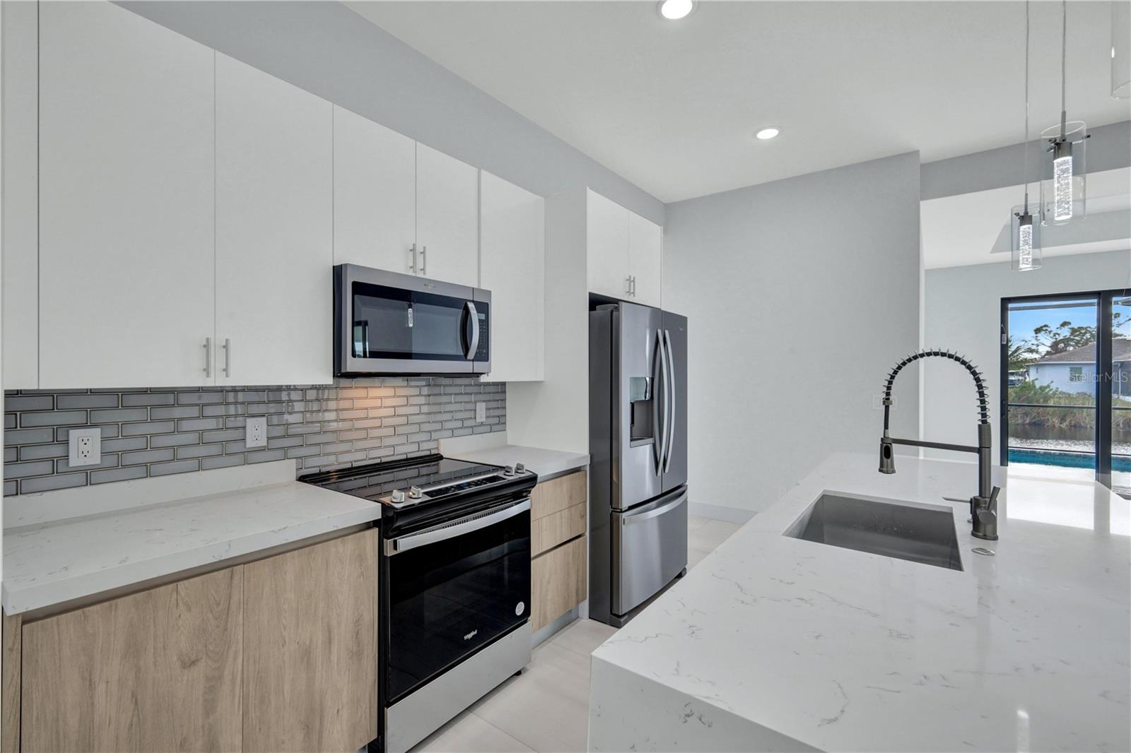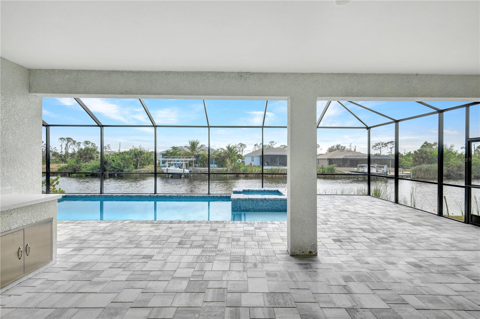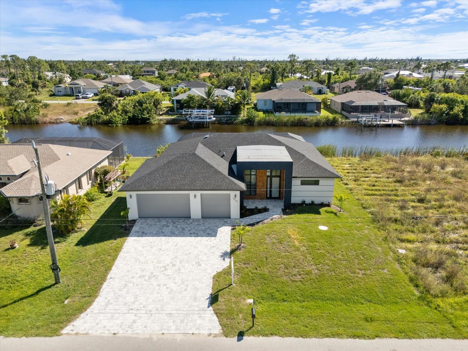 HUGE PRICE IMPROVEMENT***MOTIVATED SELLER***BRING ALL OFFERS***MUST SELL***MOVE IN READY*** This BRAND-NEW, CUSTOM-BUILT HOME radiates QUALITY CRAFTSMANSHIP and MODERN ELEGANCE from the moment you arrive. The PAVER DRIVEWAY, GRAND ENTRANCE, and FLOOR-TO-CEILING WINDOWS WITH SLATTED WOOD ACCENTS immediately set the tone for the stunning design found throughout. Perfectly situated on a SALTWATER CANAL WITH DIRECT GULF ACCESS in the highly desirable boating community of South Gulf Cove, this 3-BEDROOM + OFFICE, 3.5-BATHROOM, RESIDENCE — featuring TWO MASTER SUITES — offers REFINED LUXURY and THOUGHTFUL FUNCTIONALITY at every turn. Step inside to discover SOARING VOLUME CEILINGS, 8-FOOT DOORS, and DESIGNER 24” x 48” porcelain tile flooring throughout. The SPACIOUS LIVING ROOM showcases a dramatic TRAY CEILING WITH RECESSED LIGHTING and a THREE-PANEL SLIDING GLASS DOOR that opens to the COVERED LANAI, creating a bright and seamless indoor-outdoor living experience. The primary suite is a private retreat, featuring lanai access, a Tray ceiling, TWO walk-in closets, and a SPA-INSPIRED BATHROOM with DUAL VANITIES, QUARTZ COUNTERTOPS, and a TILED SHOWER WITH DUAL SHOWERHEADS. The JUNIOR PRIMARY SUITE (perfect for guests or in-laws) includes its own ENSUITE BATH boasting a fully TILED SHOWER. At the heart of the home, the CHEF-INSPIRED KITCHEN dazzles with HIGH-END STAINLESS STEEL APPLIANCES, TILE BACKSPLASH, WALK-IN PANTRY, and a WATERFALL-EDGE QUARTZ ISLAND accented by elegant PENDANT LIGHTING and SLATTED WOOD DETAILING. Sleek BLACK HARDWARE adds a modern finishing touch. Enjoy YEAR-ROUND PEACE OF MIND with HURRICANE-IMPACT WINDOWS AND SLIDING GLASS DOORS throughout. The outdoor living area is equally impressive, featuring a spacious covered lanai, SUMMER KITCHEN hookups, OUTDOOR SHOWER, and a POOL AND SPA with a SUNDECK perfect for lounging, splashing, or cooling off with your furry friends. The 60’ WIDE PAVER POOL DECK and HEAVY-DUTY UPGRADED CAGE (6” FRAMING) complete this exceptional OUTDOOR OASIS. Each of the three bedrooms offers DIRECT POOL ACCESS, making this home ideal for both ENTERTAINING and RELAXED FLORIDA LIVING. The OVERSIZED 3-CAR GARAGE (32’ x 20’, 720 SQ. FT.) includes HURRICANE-RATED DOORS and houses the HVAC handler and water heater. Located just minutes from GOLF COURSES, BEACHES, MARINAS, WORLD-CLASS FISHING, and ENDLESS WATER ADVENTURES, this 2, 014 SQ. FT. (UNDER AIR) home feels even larger thanks to its OPEN DESIGN AND SOARING CEILINGS. Bring your BOATS, RVs, AND TRAILERS — the South Gulf Cove Community offers TWO BOAT RAMPS, FIVE PARKS, and is GOLF CART-FRIENDLY, making it the ultimate destination for OUTDOOR LIVING AND COASTAL ADVENTURE. This remarkable property truly has it all — LUXURY, COMFORT, AND PEACE OF MIND — all at an incredible value. Don’t miss your opportunity to call this South Gulf Cove GEM your new HOME IN PARADISE. call today to schedule your private tour!