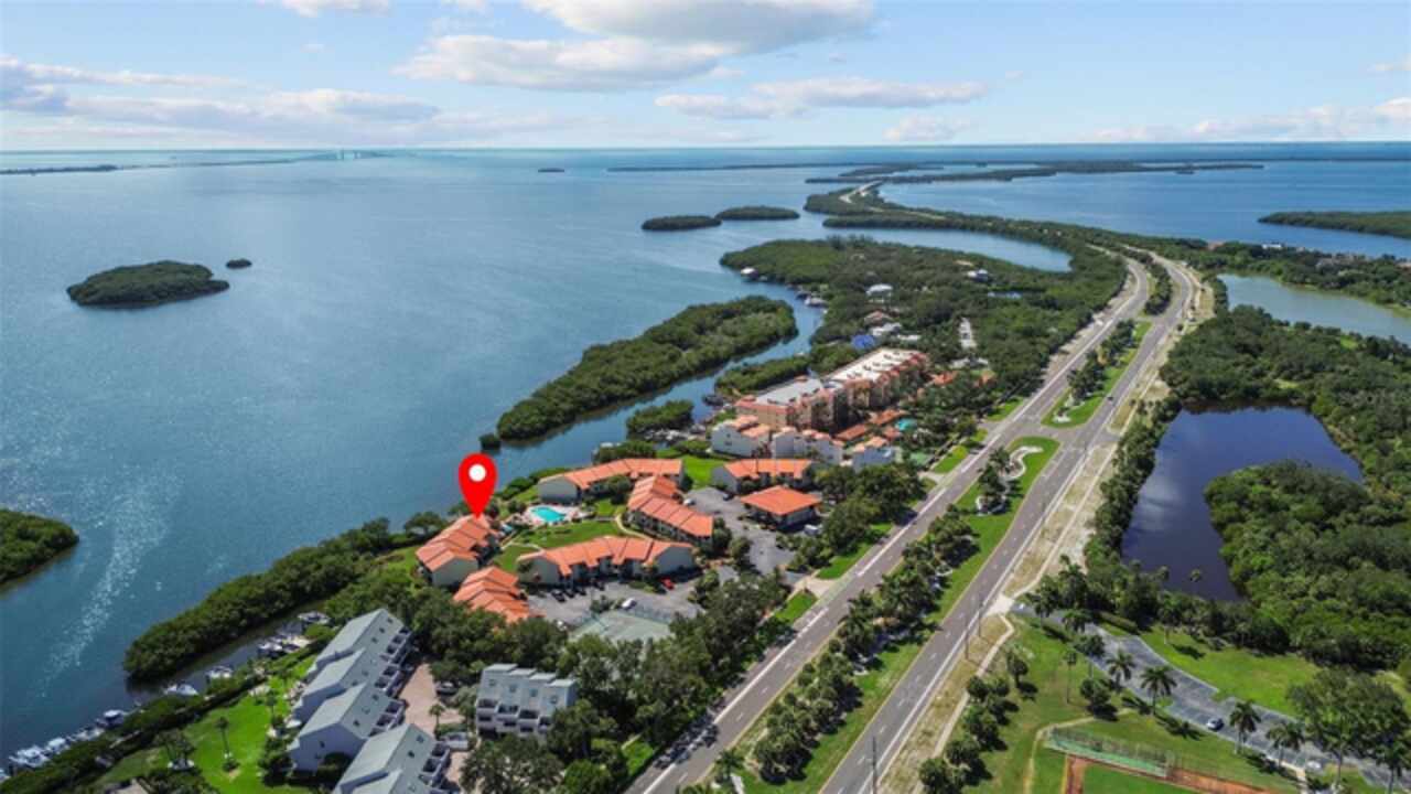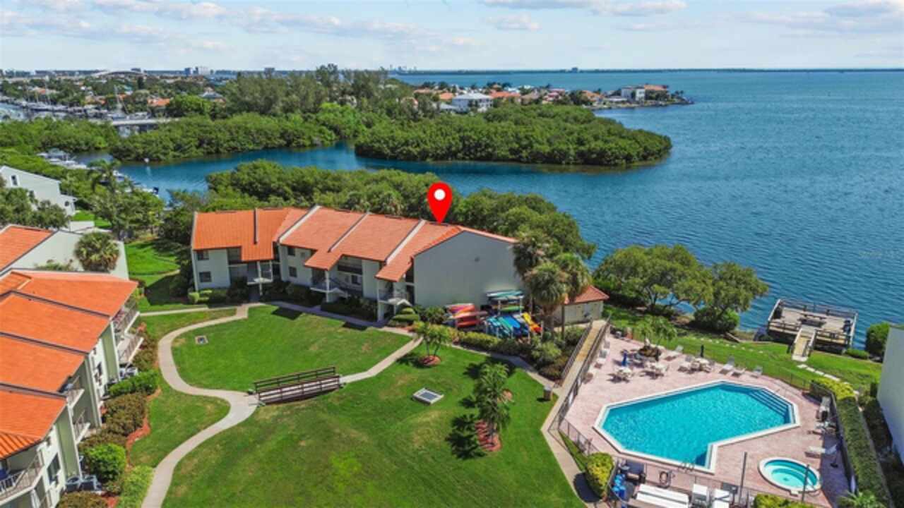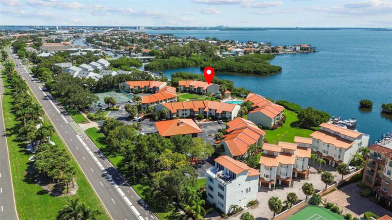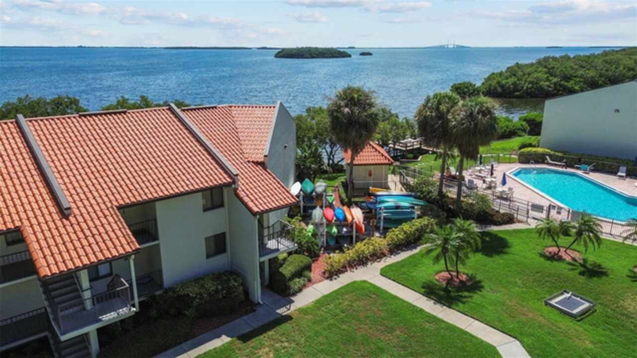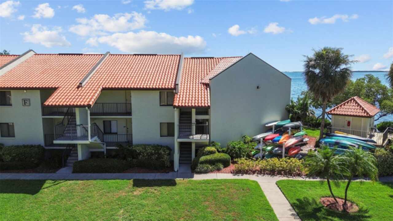 Attention investors! Rare opportunity for waterfront unit allowing short-term rental (STR). This gorgeous waterfront community offers three-day minimum rental. One of the only communities that legally allow STR on the Island. Survived Hurricane Helene and Hurricane Milton. No water intrusion, structural or property damage, according to the owner, after Hurricane Helene's and Milton's storm surge along Florida's Gulf Coast. Upon entering this desirable oasis, you will be greeted with sparkling waters of the bay and the oversized community pool and spa. Conveniently next to the pool are kayaks and kayak racks and storage, a 30-by-30-foot wooden dock/pier with picnic tables, and barbecue grills for cookouts and gatherings. Other community amenities include tennis/pickleball courts, boat dock rental with water and electric (waitlist may apply), clubhouse with ample meeting space, kitchen and bar, large screen TV, free Wi-Fi, fitness room, laundry room, storage room, bike storage, bike trails and boat parking spaces as well as guest parking spaces. This two-bedroom, two-full bath offers serene waterfront views that will take your breath away! The 6-by-30-foot covered patio overlooks the bay, and is only a short distance from the pool and spa, kayak racks, and the pier/dock. This community is just minutes to Fort De Soto Park, and other popular beaches. Just 15 minutes to downtown St. Pete. This tropical paradise has it all. What are you waiting for?