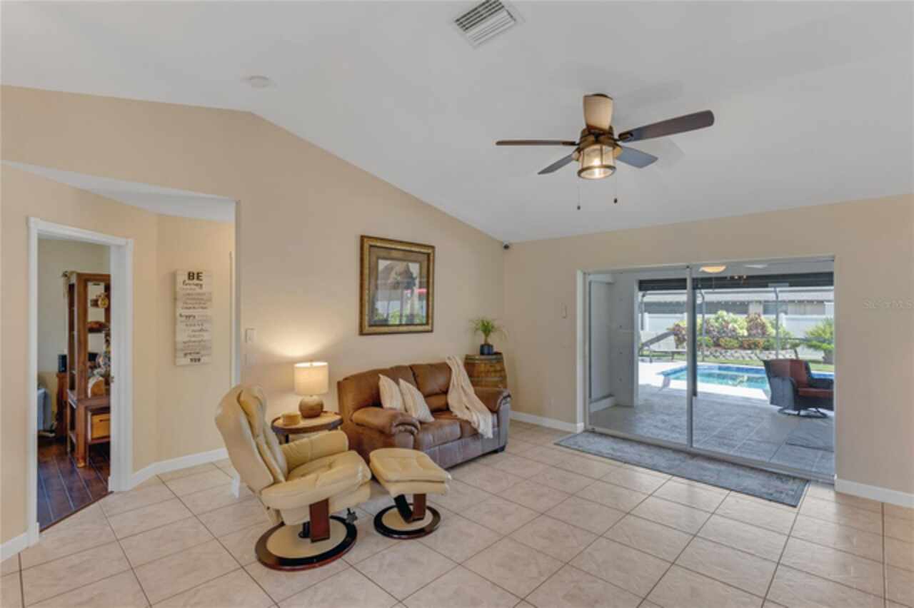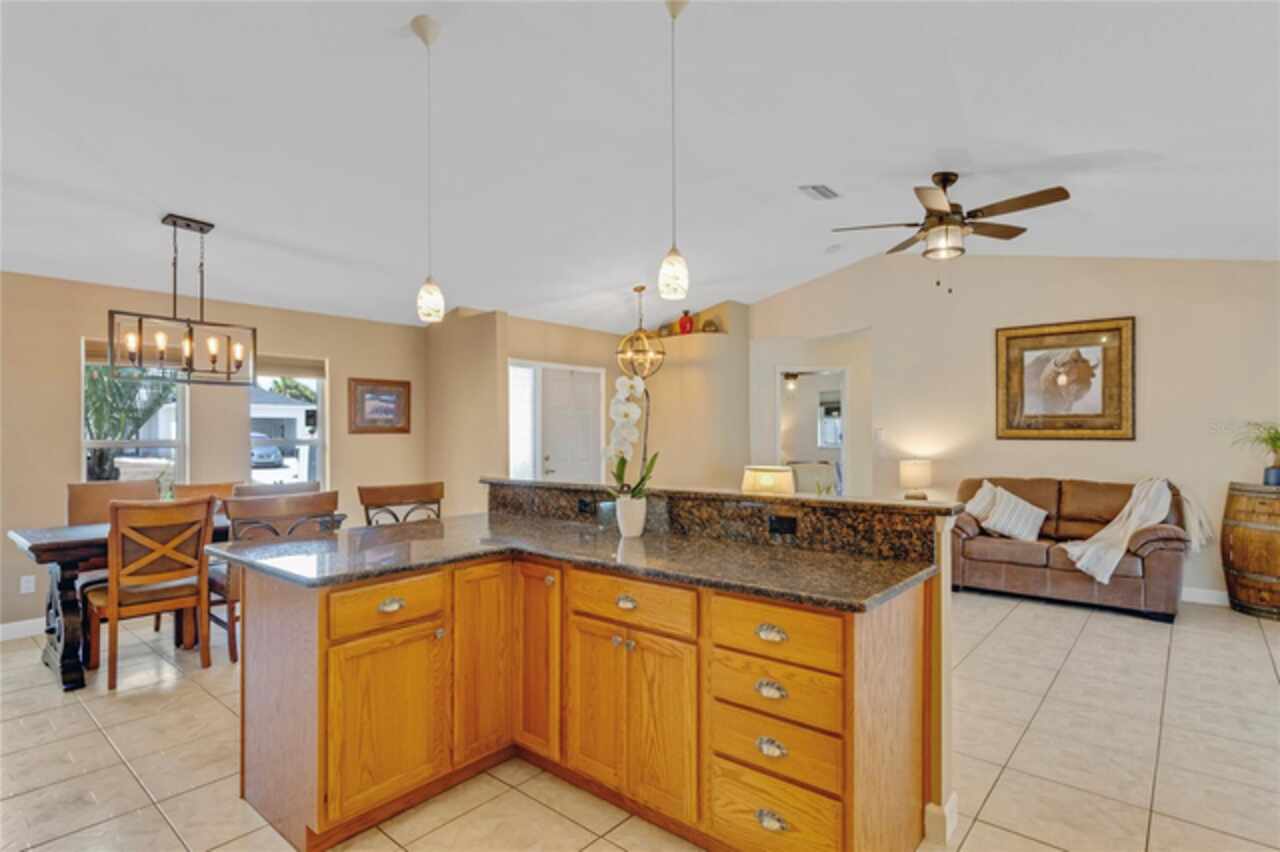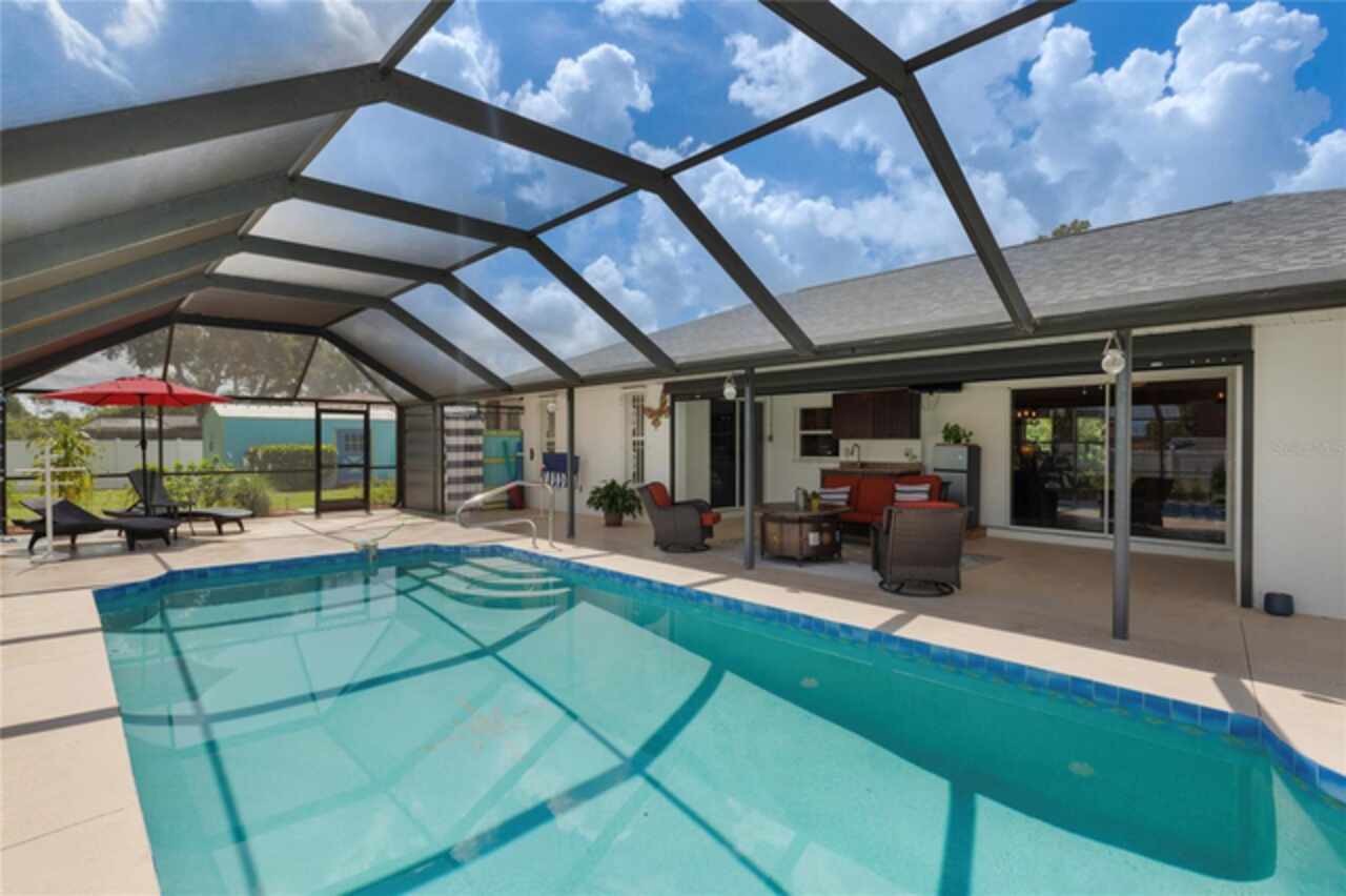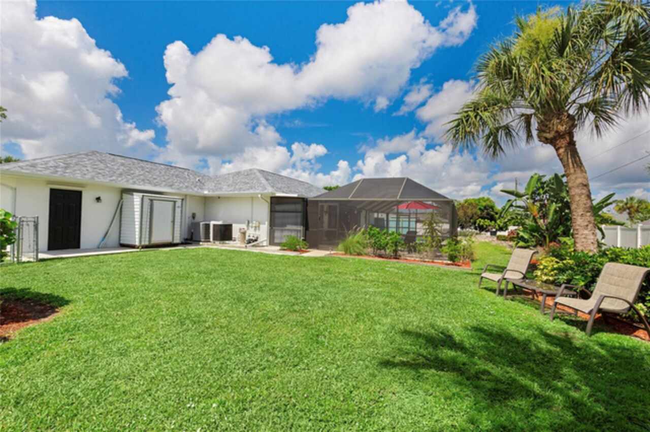 Welcome to 15160 Buswell Avenue, Port Charlotte, FL – This beautiful 3-bedroom, 2-bathroom home offers comfort, style, and plenty of space both inside and out. Step inside to find elegant ceramic tile flooring throughout, an upgraded kitchen featuring stunning granite countertops, rich oak cabinetry, and ample storage space for all your culinary needs. The open floor plan flows seamlessly into the oversized screened lanai, where a heated pool awaits for year-round enjoyment. The backyard is a true Florida oasis – fully fenced for privacy, adorned with lush landscaping, and offering nearly a half-acre lot for endless possibilities. Two storage sheds on the property provide extra room for tools, hobbies, or outdoor gear. Second driveway for parking RV/Camper/ Boat with 50 amp breaker and additional 30amp breaker for generator. Whether you’re hosting family gatherings, enjoying the sunshine by the pool, or simply relaxing in your serene setting, this home offers it all. Located in desirable Port Charlotte close to shopping, dining, schools, and Gulf Coast beaches, it’s the perfect place to call home.