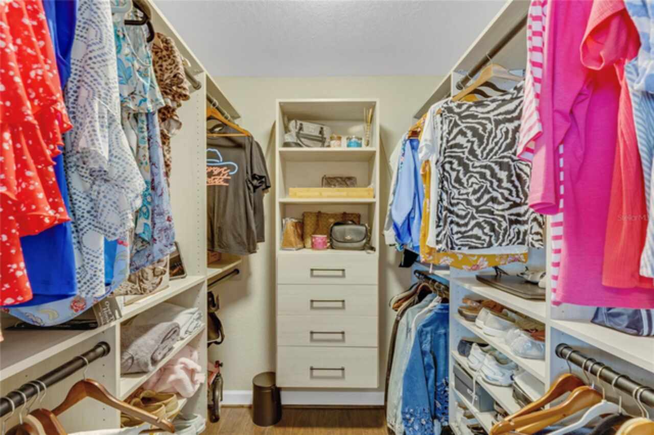 Ceiling Fans(s), Eat-in Kitchen, High Ceilings, L Dining, Open Floorplan, Primary Bedroom Main Floor, Solid Surface Counters, Solid Wood Cabinets, Split Bedroom, Stone Counters, Thermostat, Vaulted Ceiling(s), Walk-In Closet(s)