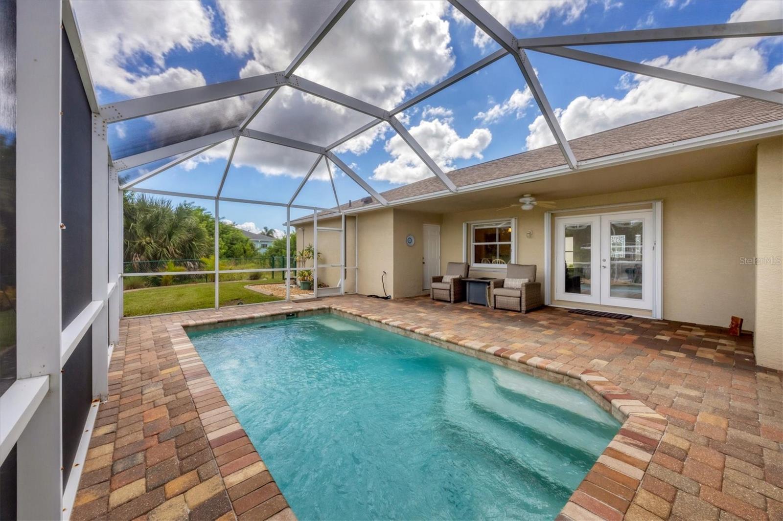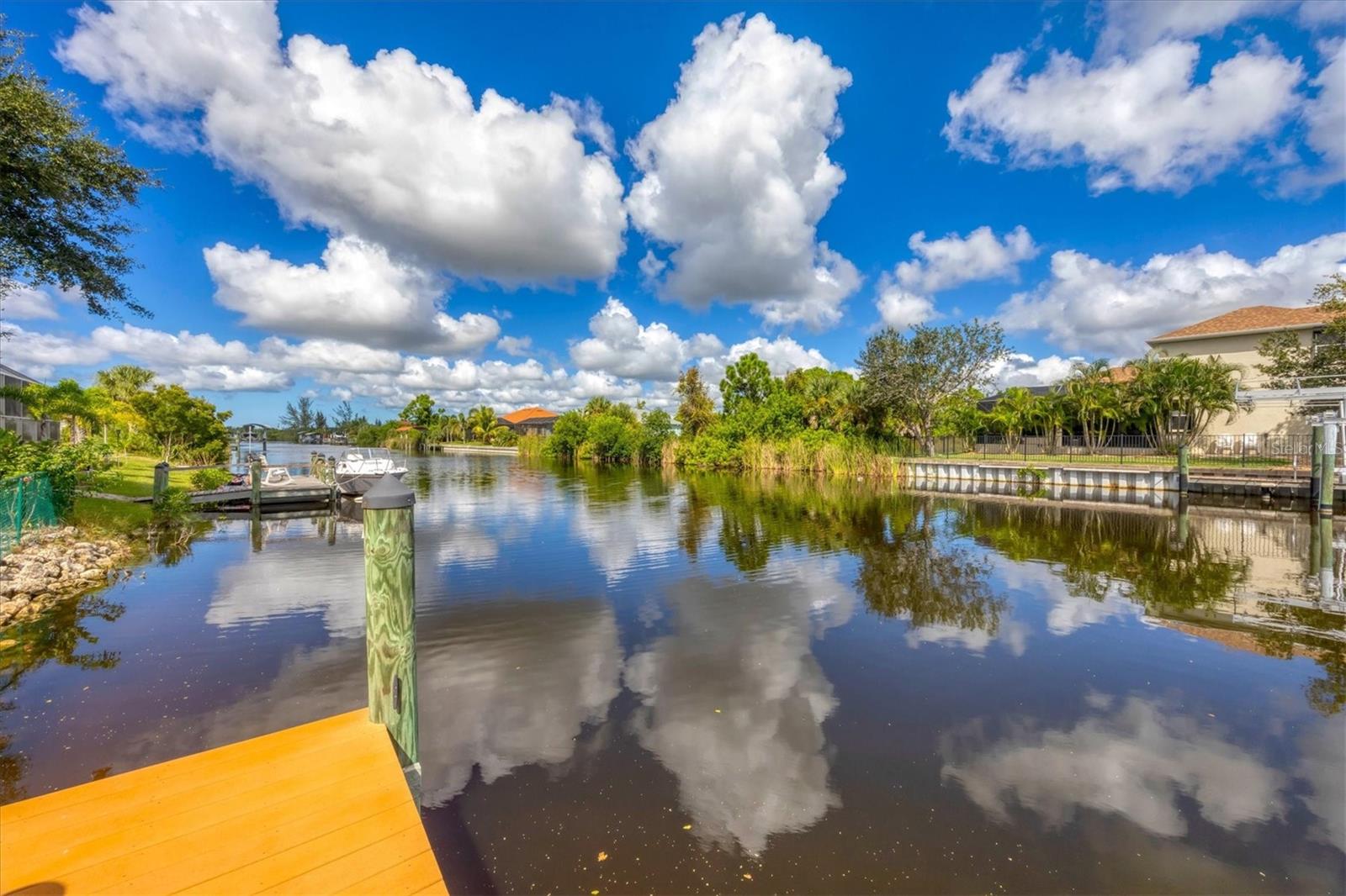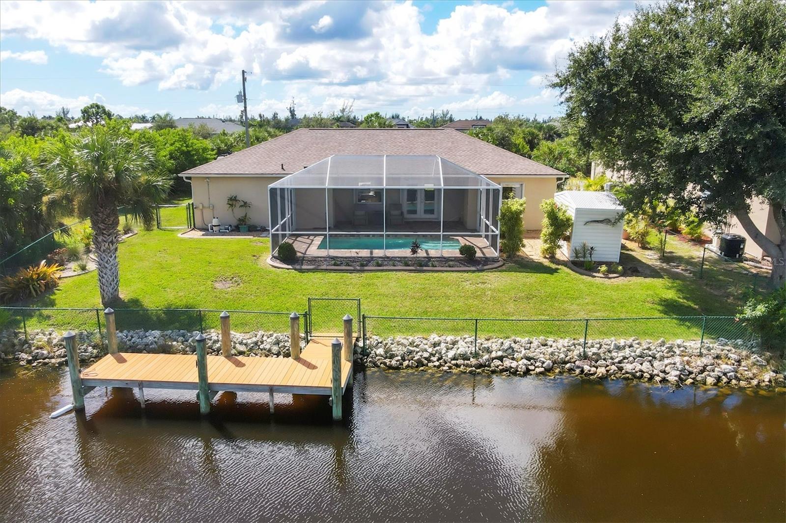 Come see this beautiful waterfront home in South Gulf Cove. This clean and well maintained home features 3 bedroom 2 bath 2 car garage with pool. With open floor plan , breakfast bar in the kitchen newer appliances Refrigerator replaced 2025, has an inside laundry room with storage. Pool are is open with covered space and newer pavers for you to sit outside and enjoy the fresh air. Pool just want re-surfaced Oct 2025. Just down the canal from the Zephyr waterway which gives you quicker access to the lagoon and lock system out to the Myakka River, Charlotte Harbor and the Gulf. Yard is fenced and has a large shed and mature landscaping. Also peace of mind with newer roof replaced in 2022 and folding Hurricane shutters for every window. Make an appointment today to come see this sweet home and make it your own piece of paradise!