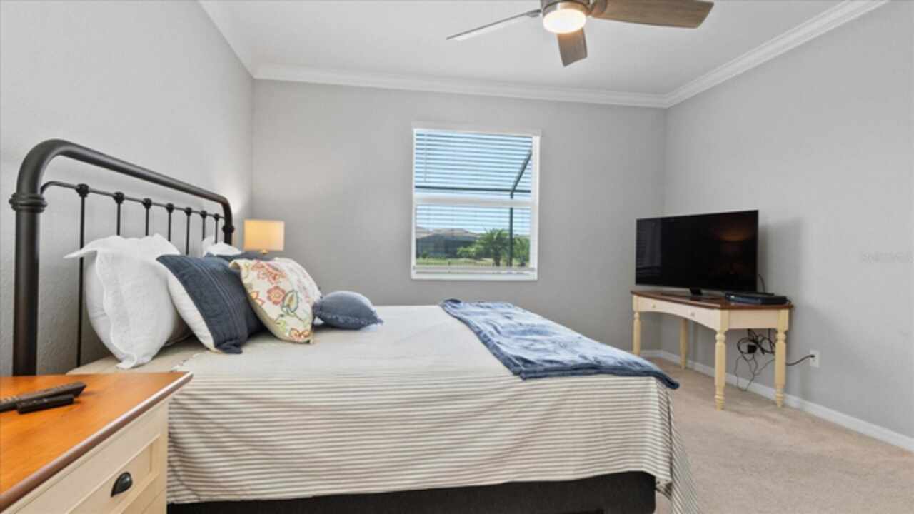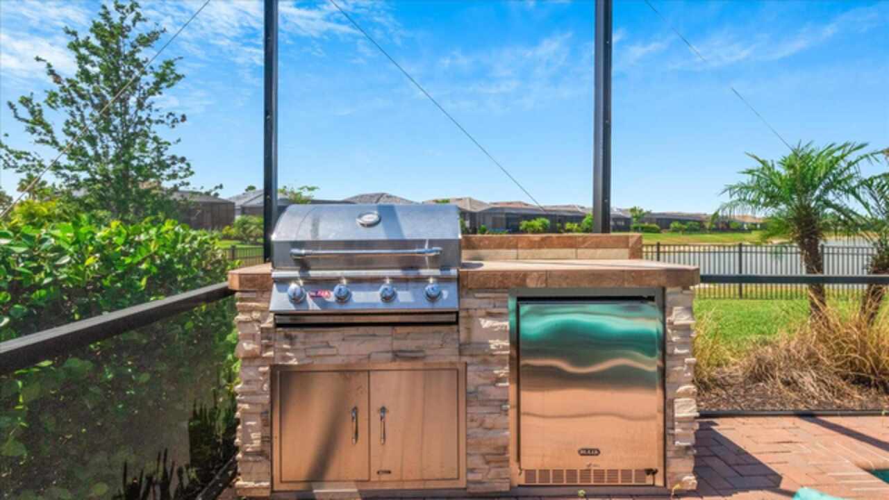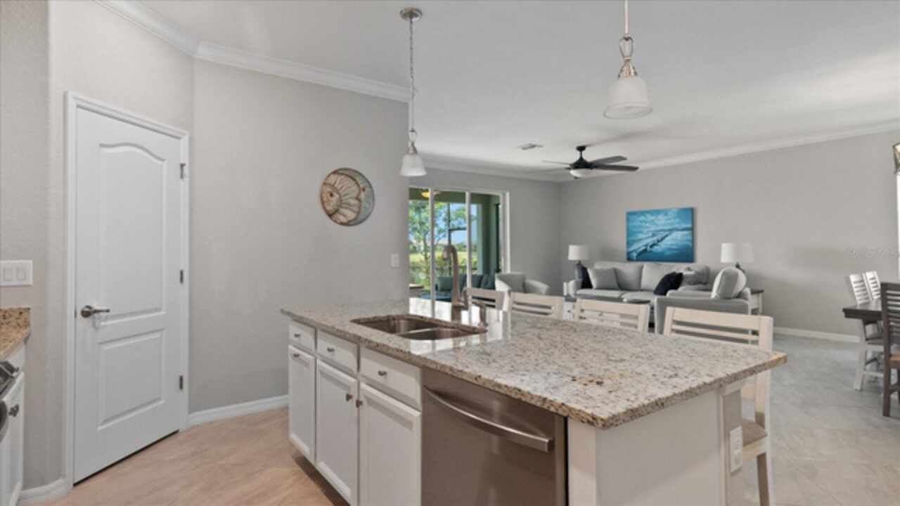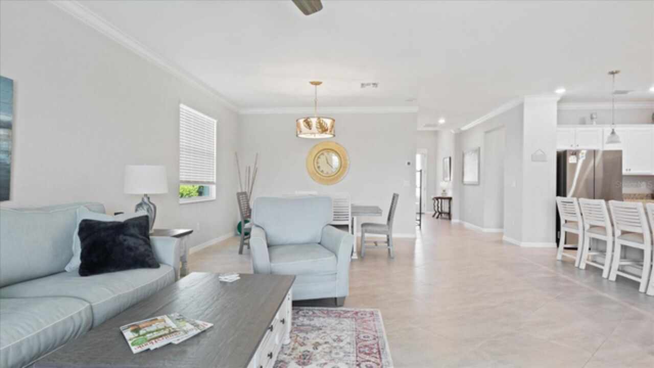 POOL AND SPA, 4 BED/3 BATH...The ultimate Florida lifestyle awaits you! This newer home features a sparkling pool and spa, extended lanai, FULLY FENCED YARD, and tranquil water views. Inside, you’ll find a space that feels like new, complete with upgraded appliances, washer/dryer, and designer lighting and ceiling fans throughout. The open-concept layout with high-volume ceilings, a kitchen island, and a seamless living/dining area creates the perfect space for entertaining or relaxing in style. The split floor plan ensures privacy, featuring a spacious primary suite with dual walk-in closets and a luxurious en suite bath with a double vanity, walk-in shower, and linen closet. Bedrooms 2 and 3 share a well-appointed bathroom, while the fourth bedroom includes its own private bath — ideal for guests or extended family. Step outside to your personal oasis! The screened-in pool and spa area boasts a built-in grill, mini fridge, and extended lanai, perfect for cookouts, gatherings, or lazy afternoons by the water. Additional highlights include impact windows, low-maintenance landscaping, gated community, low HOA fees, and no CDD. Just minutes to beaches, boating, fishing, and dining, this home truly checks every box. Furniture optional — and the motivated seller invites you to come see why this could be your perfect new home!