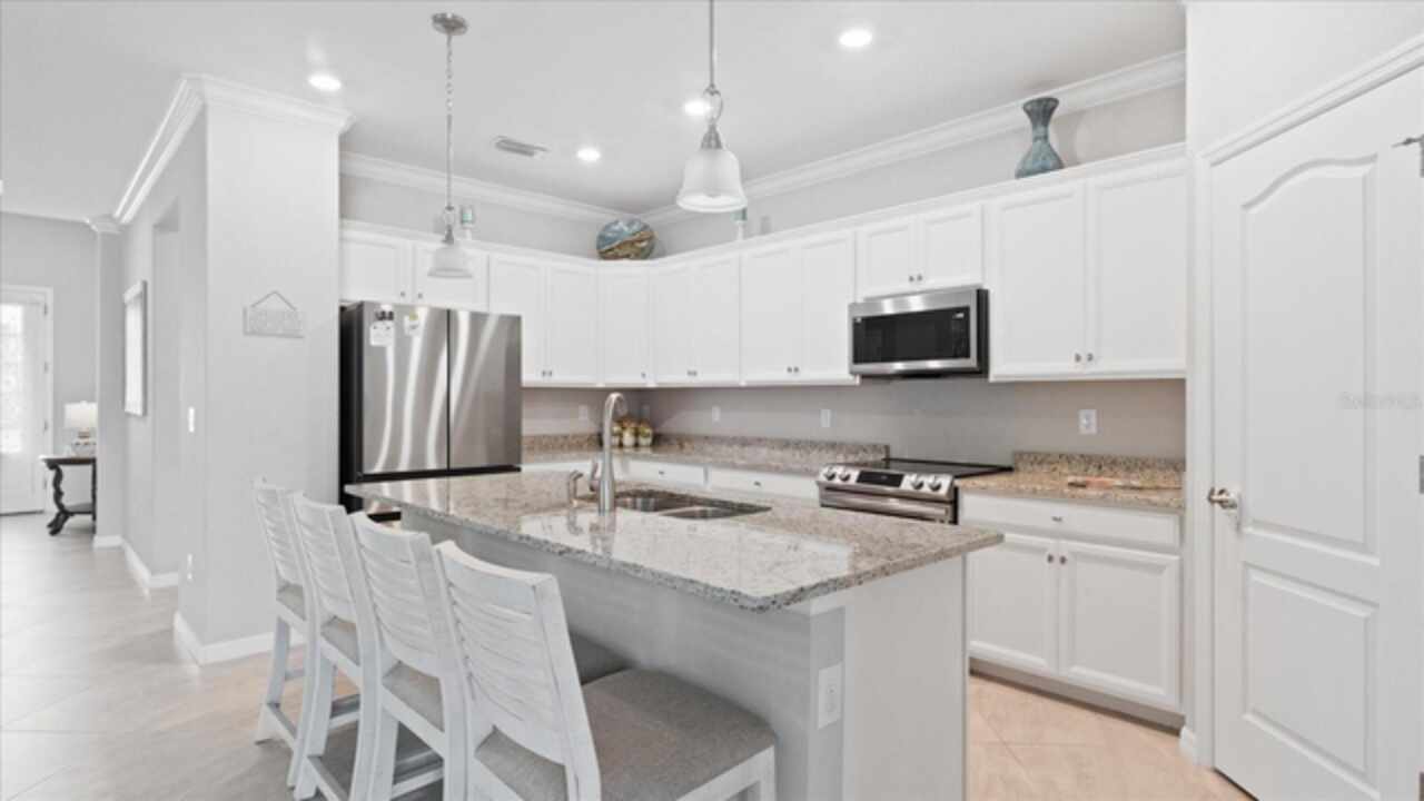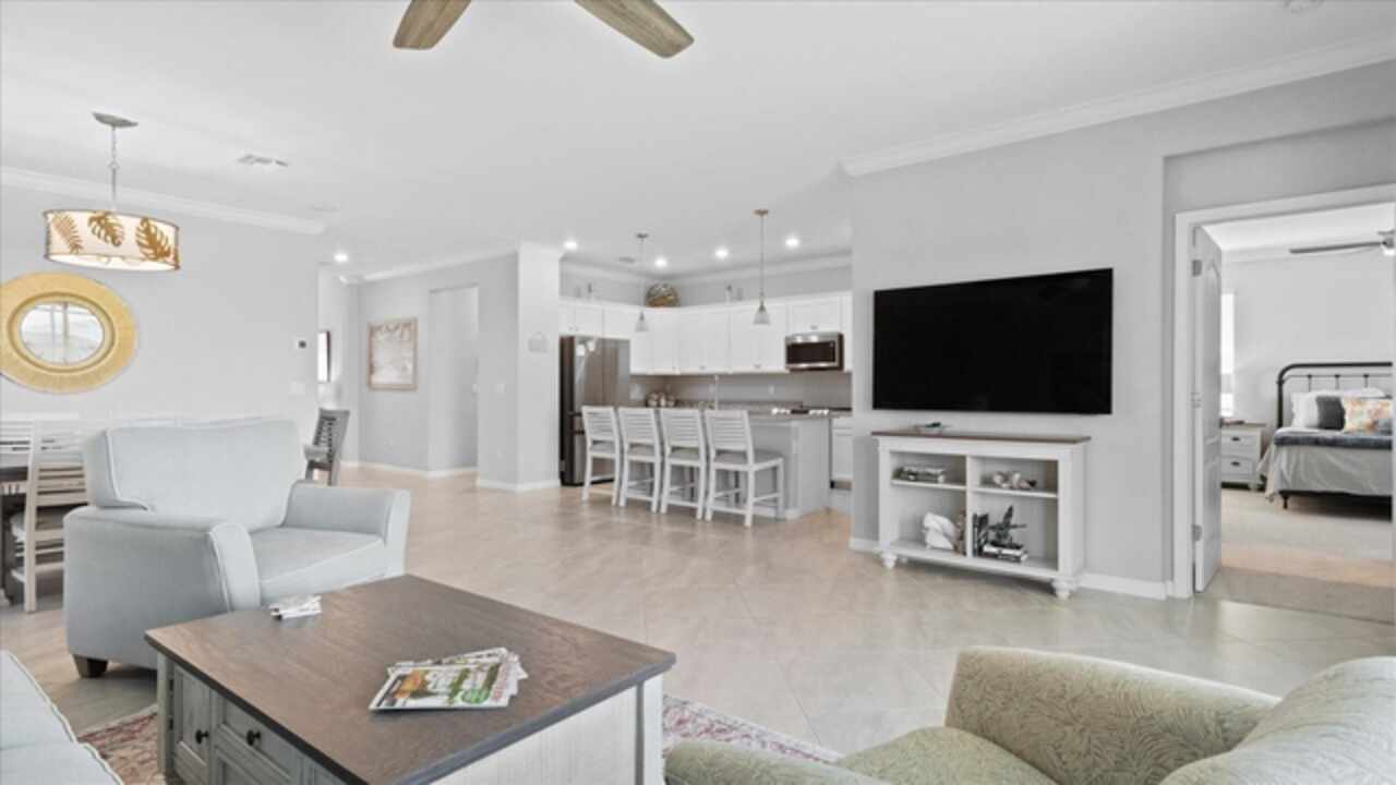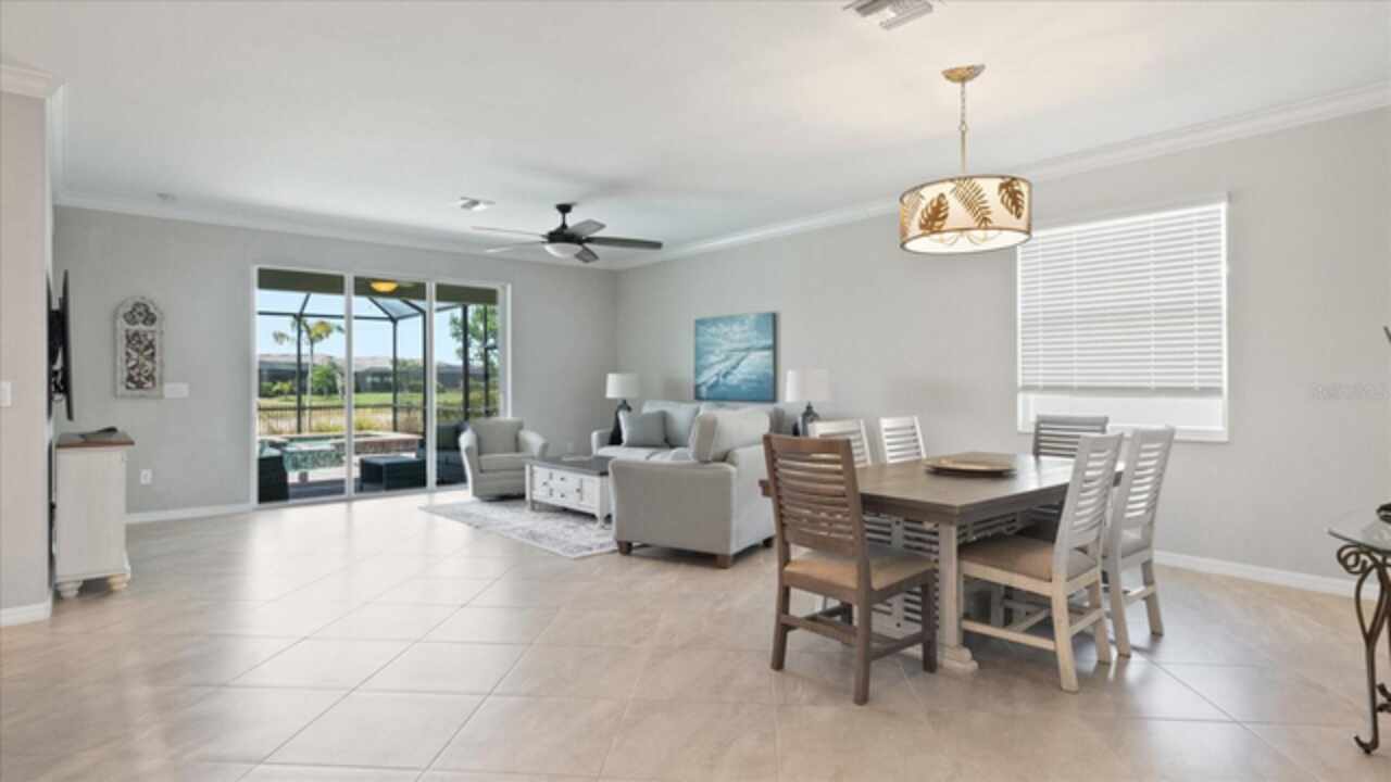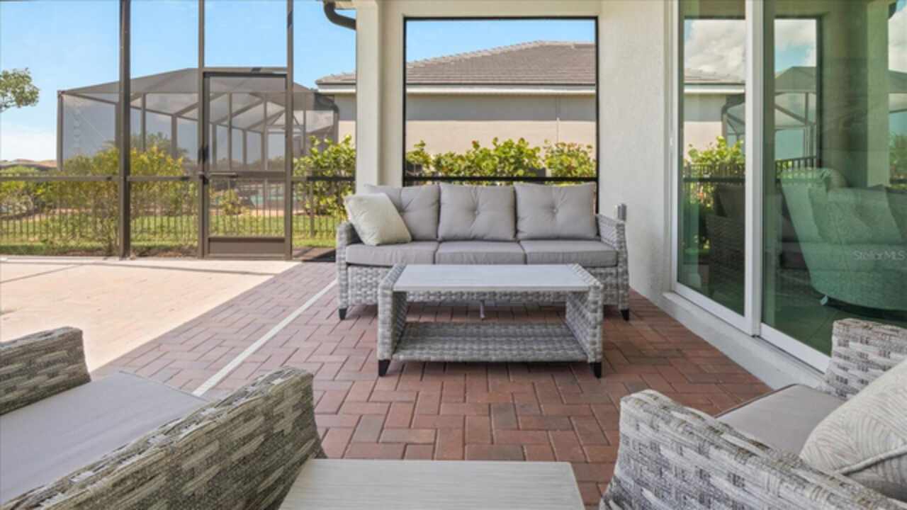 POOL AND SPA, 4 BED/3 BATH...The ultimate Florida lifestyle awaits you! This newer home features a sparkling pool and spa, extended lanai, FULLY FENCED YARD, and tranquil water views. Inside, you’ll find a space that feels like new, complete with upgraded appliances, washer/dryer, and designer lighting and ceiling fans throughout. The open-concept layout with high-volume ceilings, a kitchen island, and a seamless living/dining area creates the perfect space for entertaining or relaxing in style. The split floor plan ensures privacy, featuring a spacious primary suite with dual walk-in closets and a luxurious en suite bath with a double vanity, walk-in shower, and linen closet. Bedrooms 2 and 3 share a well-appointed bathroom, while the fourth bedroom includes its own private bath — ideal for guests or extended family. Step outside to your personal oasis! The screened-in pool and spa area boasts a built-in grill, mini fridge, and extended lanai, perfect for cookouts, gatherings, or lazy afternoons by the water. Additional highlights include impact windows, low-maintenance landscaping, gated community, low HOA fees, and no CDD. Just minutes to beaches, boating, fishing, and dining, this home truly checks every box. Furniture optional — and the motivated seller invites you to come see why this could be your perfect new home!