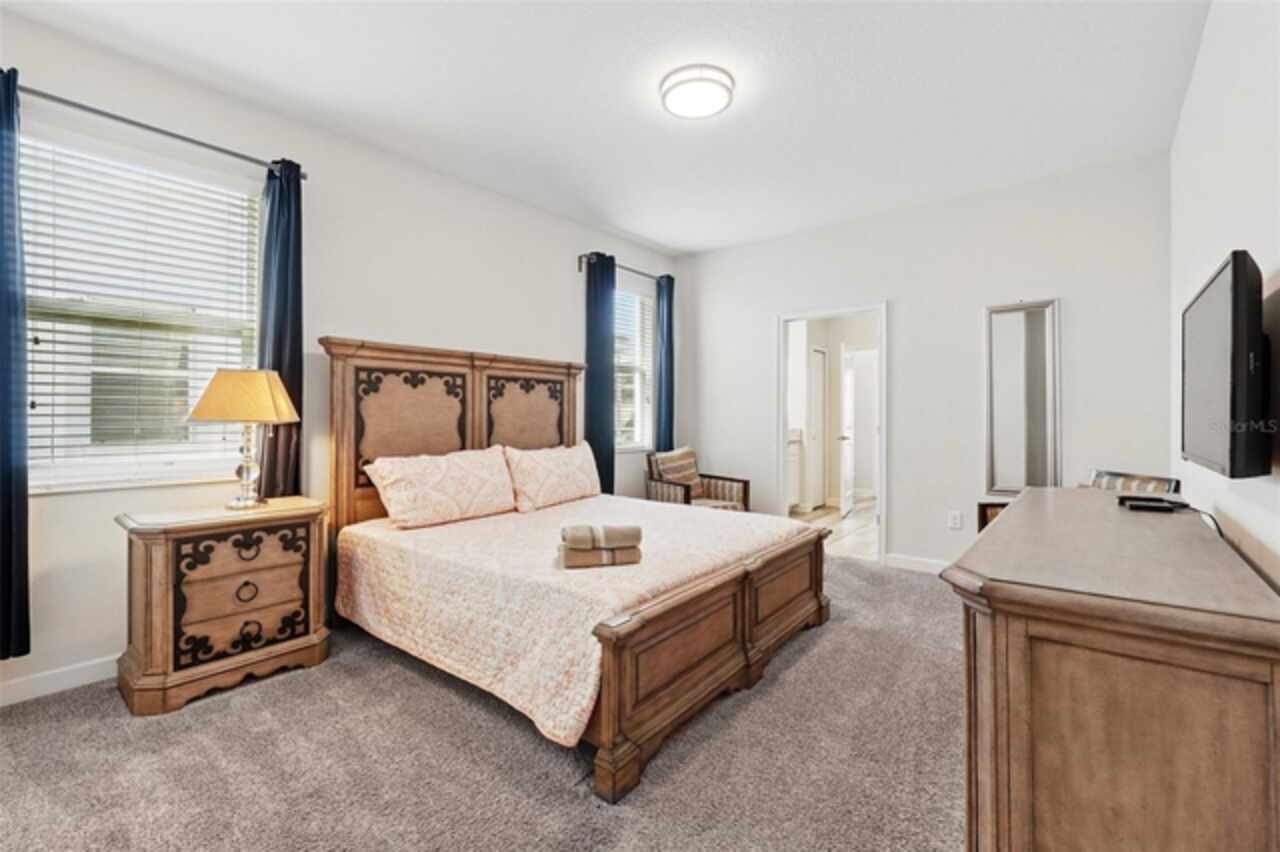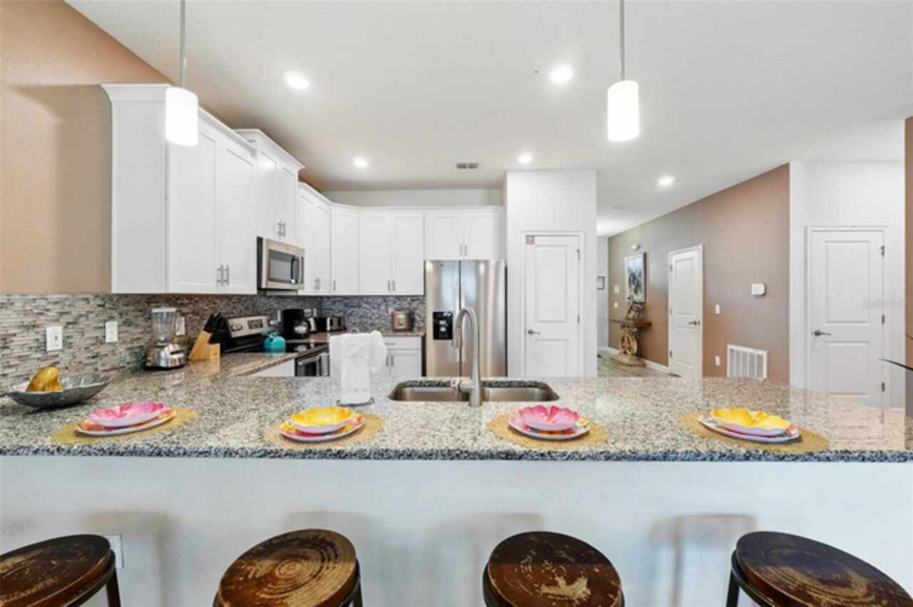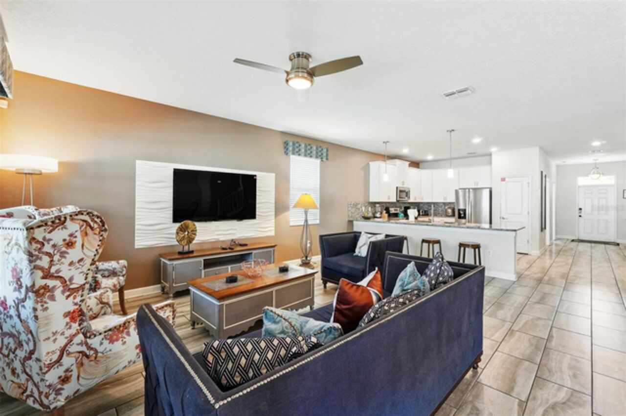 Welcome to your magical dream vacation home! This unique, professionally decorated luxury 8-bedroom, 6-bathroom home comes fully furnished to make the perfect vacation rental and features all the comforts of home and more! It's located in one of the most popular gated resort community, the Retreat at Champions Gate, near the Oasis Clubhouse. This home stands out for its incredibly professionally designed spaces and themed bedrooms. This is the perfect home for homeowners who want to enjoy the Florida lifestyle or for those who seek excellent investment through short term rental. The open floor plan includes a spacious kitchen equipped with stainless appliances and dining room area perfect for family gatherings, which merges seamlessly to the covered lanai that overlooks the heated pool and spa with brick paver deck Check yourself into this luxury family home and be greeted with bright, sun-filled living with soft comfortable furnishings and spacious open plan design with room for everyone. On the second floor, a loft with a TV room, a theater room and 6 bedrooms plus an extra enclosed room for additional two guests are perfect for the big family's reunion!
