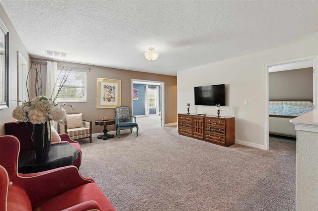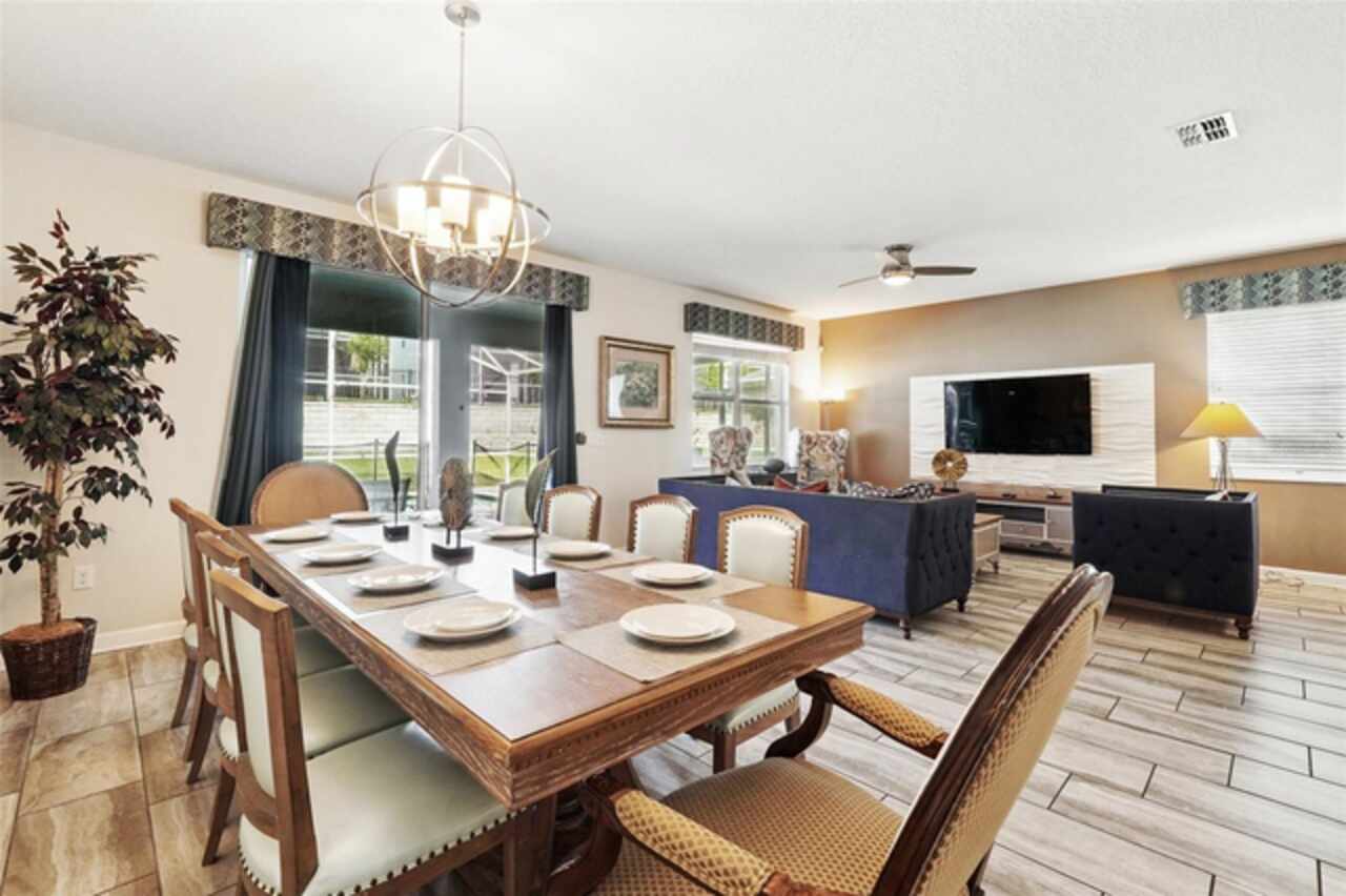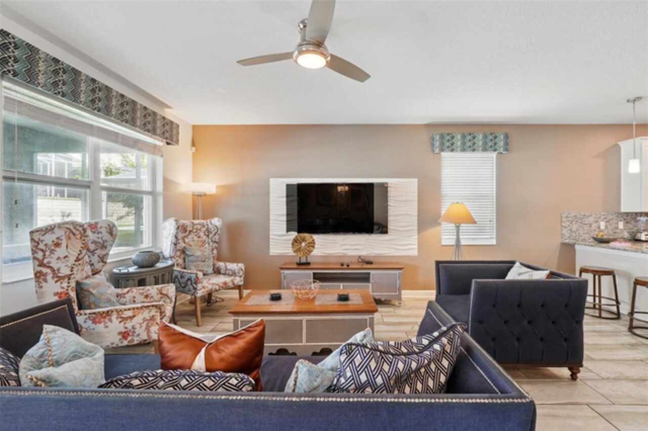 Welcome to your magical dream vacation home! This unique, professionally decorated luxury 8-bedroom, 6-bathroom home comes fully furnished to make the perfect vacation rental and features all the comforts of home and more! It's located in one of the most popular gated resort community, the Retreat at Champions Gate, near the Oasis Clubhouse. This home stands out for its incredibly professionally designed spaces and themed bedrooms. This is the perfect home for homeowners who want to enjoy the Florida lifestyle or for those who seek excellent investment through short term rental. The open floor plan includes a spacious kitchen equipped with stainless appliances and dining room area perfect for family gatherings, which merges seamlessly to the covered lanai that overlooks the heated pool and spa with brick paver deck Check yourself into this luxury family home and be greeted with bright, sun-filled living with soft comfortable furnishings and spacious open plan design with room for everyone. On the second floor, a loft with a TV room, a theater room and 6 bedrooms plus an extra enclosed room for additional two guests are perfect for the big family's reunion!