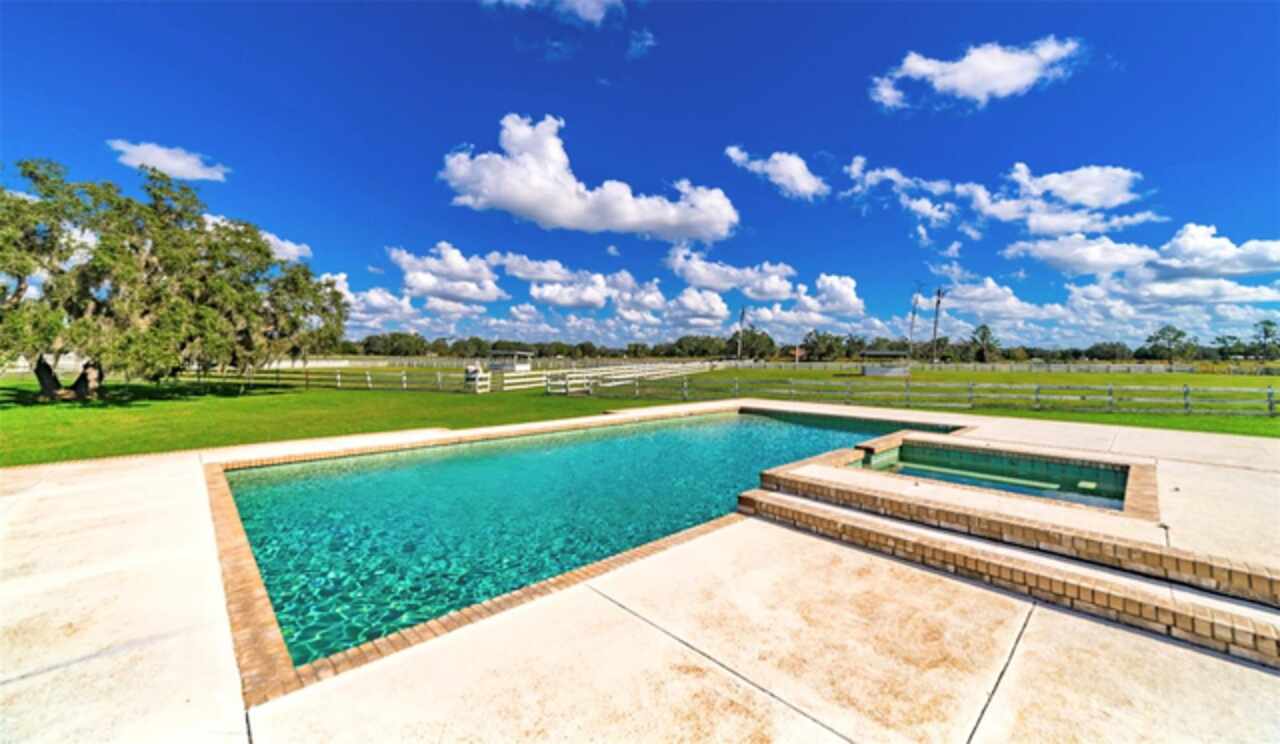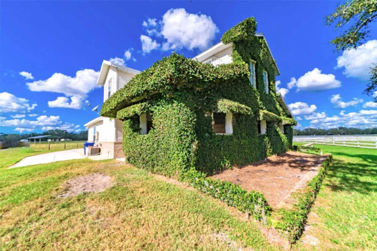 Just under 10 Acres, 2 Apartments house styles with spacious room for renovations. Guest apartment generating $4k plus monthly with Air bnb. Equestrian Estate with amazing sunsets & the LUSHEST grass you will find in Florida! This property features a total of 2 Residences totaling over 6000 sq ft. under roof, 2 block horse barns with 7 stalls and a gorgeous 40x20 pool, spa. The main residence is a lovely 2 bed up, 2 bath block home/metal roof with an attached oversized 31x21 three car garage/workshop and porte-cochère. This area could easily be finished off for more main-level living space adding 650 more to the main residence which features European charm with marble counter tops, stainless appliances, wood floors, tile floors, custom woodwork, pedestal sinks, a claw-foot tub, walk-in shower and breathtaking views of the property. There are 3 stalls and a breezeway at the main residence that could remain as stalls or be finished off into more living areas. On your way to the main barn, the courtyard has a custom pool, spa, deck, grilling area with kitchen and pergola. The main barn features a metal roof, 4 stalls an aisle, 3 wash racks with Hot & Cold, a finished tack/laundry room under air with a full sink. The air-conditioned finished office has, 2 baths, a kitchenette, wood floors, custom floors, custom wood work, pedestal sinks and a breezeway to the barn. The property is fenced, cross-fenced, has 2 run-in pole barns, 20x8 shed that matches houses out back and a 8x10 feed shed. 4-5 paddocks, water in each paddock, a parking pad, manure and shavings storage. You really must see this property to appreciate it. Horse READY & Income Potential GALORE! Easily Rent stalls and/or Airbnb with an Ideal Location just 20 miles to the Ocean!