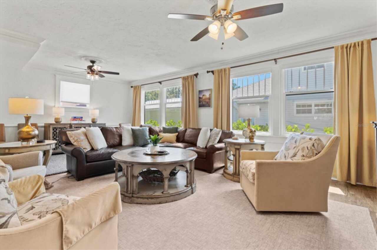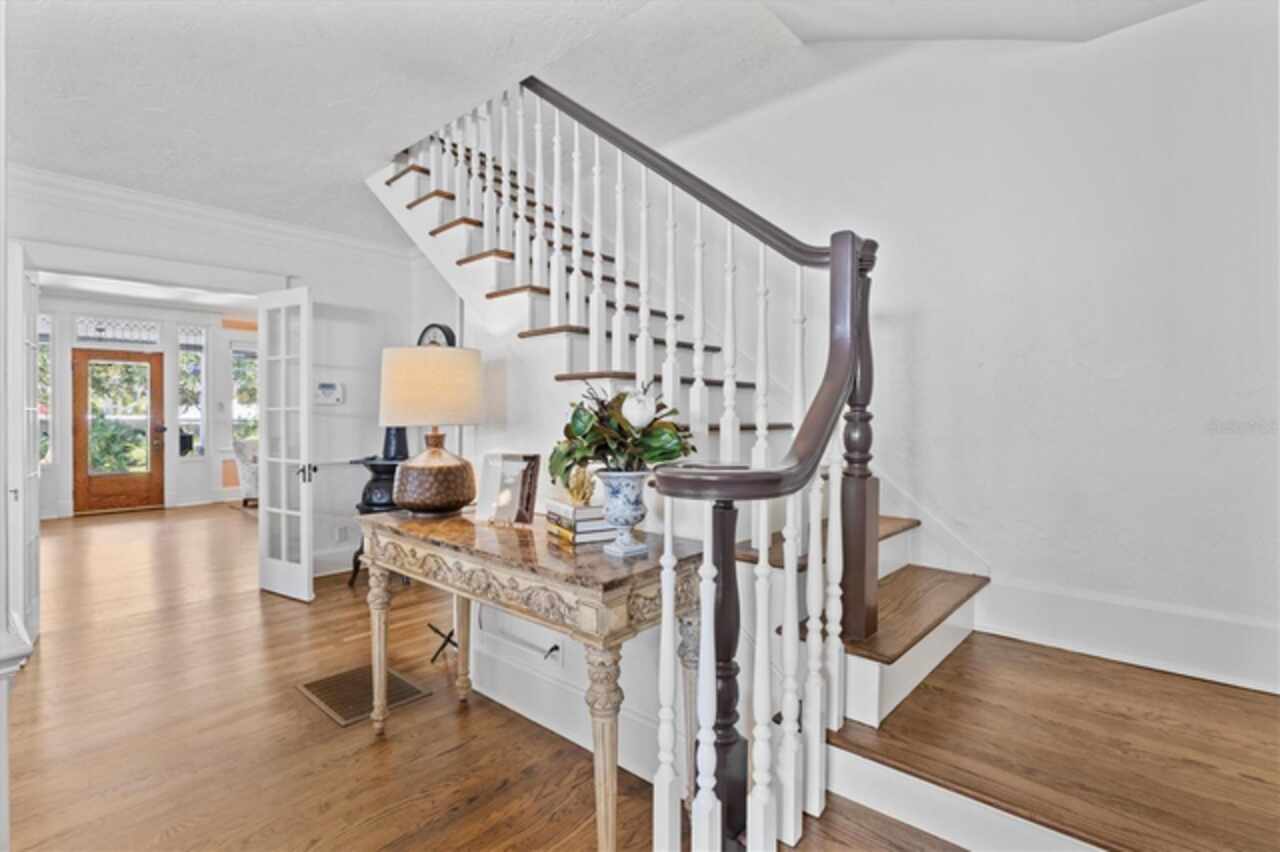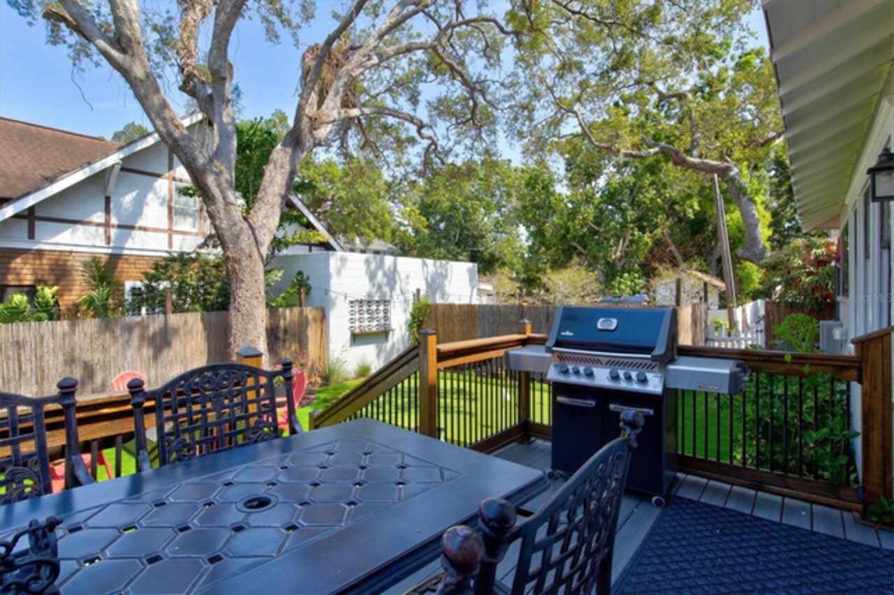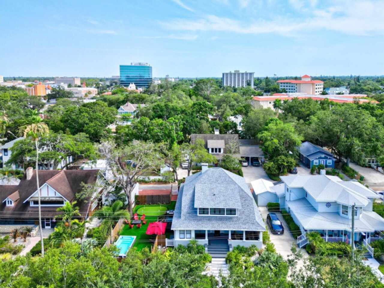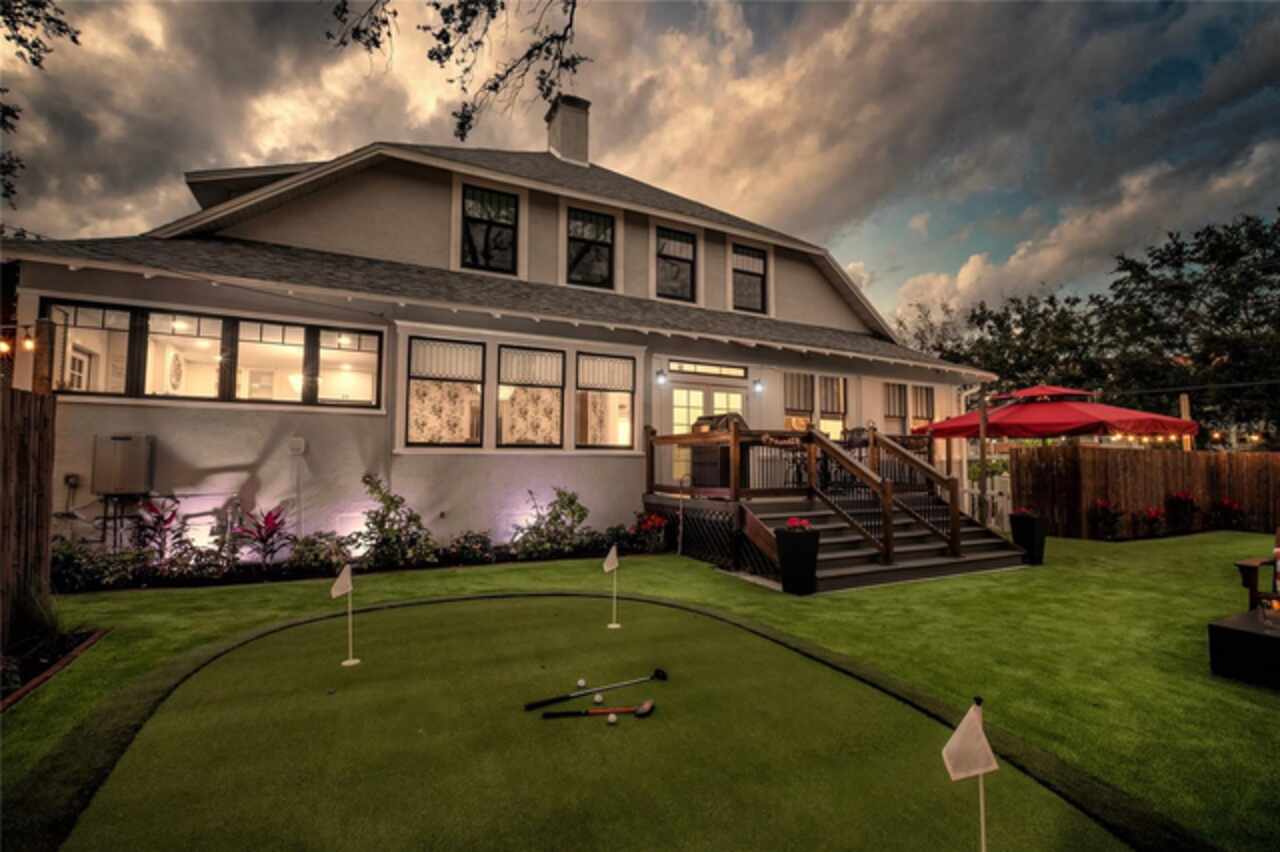Immerse yourself in the rich history and timeless elegance of this meticulously renovated historic home located in the heart of Point Pleasant in downtown Bradenton. This distinguished two-story, 4-bedroom, 5-bathroom American Four Square home offers a harmonious blend of classic architectural charm and contemporary luxury. Originally built in 1913, the Betts House stands as a testament to Bradenton's storied past, with every detail meticulously preserved and enhanced for modern living. The newly landscaped front yard leads to the inviting, large wrap-around porch evoking a sense of nostalgia, reminiscent of days gone by. The grand living area has the original leaded windows with a fireplace and leads to both the family room and kitchen. The spacious family room has impact windows and a convenient full bath with the stairway leading to the four bedrooms and four additional baths. The remodeled kitchen and dining area is an open and inviting space overlooking the side yard. Crafted with care, the kitchen features impact windows, KraftMaid cabinetry, new LG appliances, a Bosch paneled dishwasher, exquisite butcher block counters, and complemented by an island topped with Dekton Entzo quartz. The large dining area still has the vintage leaded windows and leads to the impressive added butler's pantry that was formerly a side porch. It offers a wine refrigerator, two refrigerated drink drawers, a sink, and additional cabinetry also with Dekton Entzo quart. This area offers a seamless transition between indoor and outdoor entertaining. Once upstairs, you will find three bedrooms with three remodeled ensuite baths and a fourth bedroom serviced by an updated hall bath. The added primary bath has a spacious walk-in shower, dual vanities, and a private water closet. Step outside and discover a private oasis, complete with a composite side deck, rebuilt back porch, and a partially submerged 15'x8'x5' dual swim jet lighted Swim Spa. Practice your putting skills on the professionally installed 4-hole putting green, surrounded by lush artificial turf and expertly landscaped gardens. After a busy day, relax by the gas fire pit or rinse off in the outdoor shower before your resistance swim. Enjoy privacy with new bamboo fencing and landscape lighting, while the addition of string lighting illuminates the side yard for enchanting evenings under the stars. Thoughtful updates include a new roof in 2022, replacement of both HVAC units (downstairs unit 2025, upstairs unit 2023), 16 new impact windows, and a complete refinished and staining of wood floors, stairway, and handrails. In addition, the interior has been freshly painted and has new light fixtures and new window treatments throughout. Perfectly situated a very short distance from historic Old Main Street with its charming shops, bars, and restaurants as well as the marina, Manatee River, and the Riverwalk. The Betts House offers unparalleled access to the best of Bradenton’s waterfront living. Experience the perfect harmony of history and modern comforts by discovering the timeless allure of this exceptional residence.