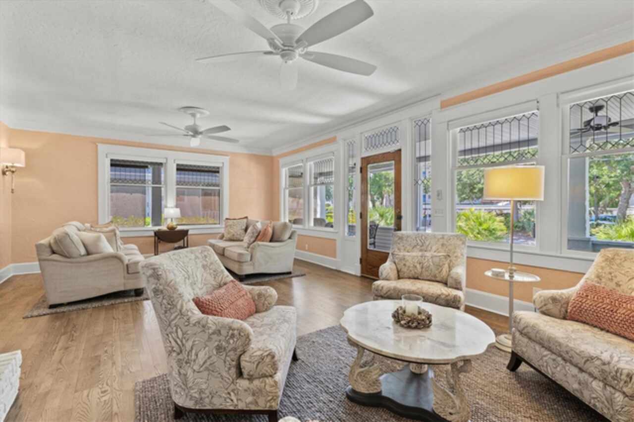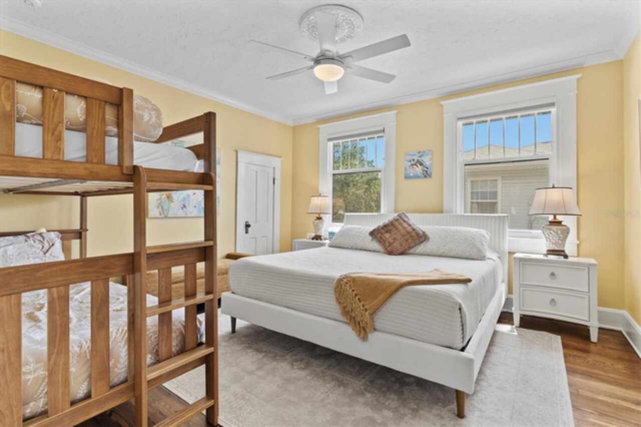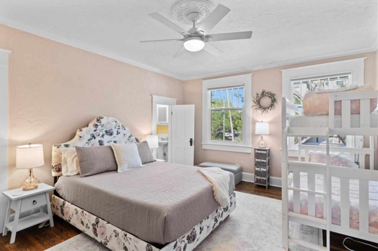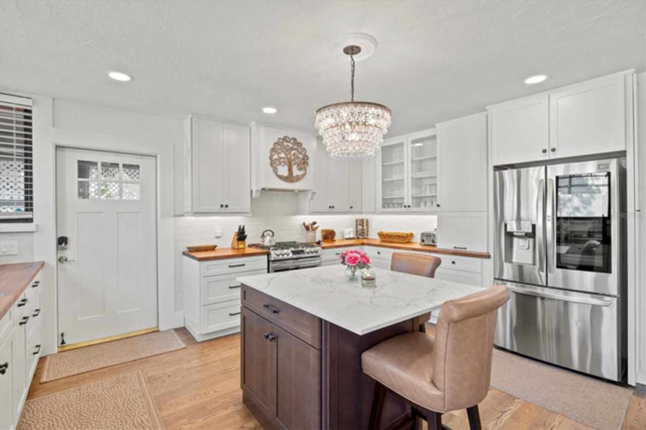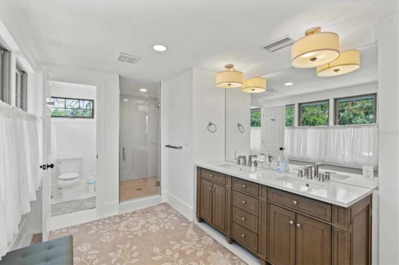 Immerse yourself in the rich history and timeless elegance of this meticulously renovated historic home located in the heart of Point Pleasant in downtown Bradenton. This distinguished two-story, 4-bedroom, 5-bathroom American Four Square home offers a harmonious blend of classic architectural charm and contemporary luxury. Originally built in 1913, the Betts House stands as a testament to Bradenton's storied past, with every detail meticulously preserved and enhanced for modern living. The newly landscaped front yard leads to the inviting, large wrap-around porch evoking a sense of nostalgia, reminiscent of days gone by. The grand living area has the original leaded windows with a fireplace and leads to both the family room and kitchen. The spacious family room has impact windows and a convenient full bath with the stairway leading to the four bedrooms and four additional baths. The remodeled kitchen and dining area is an open and inviting space overlooking the side yard. Crafted with care, the kitchen features impact windows, KraftMaid cabinetry, new LG appliances, a Bosch paneled dishwasher, exquisite butcher block counters, and complemented by an island topped with Dekton Entzo quartz. The large dining area still has the vintage leaded windows and leads to the impressive added butler's pantry that was formerly a side porch. It offers a wine refrigerator, two refrigerated drink drawers, a sink, and additional cabinetry also with Dekton Entzo quart. This area offers a seamless transition between indoor and outdoor entertaining. Once upstairs, you will find three bedrooms with three remodeled ensuite baths and a fourth bedroom serviced by an updated hall bath. The added primary bath has a spacious walk-in shower, dual vanities, and a private water closet. Step outside and discover a private oasis, complete with a composite side deck, rebuilt back porch, and a partially submerged 15'x8'x5' dual swim jet lighted Swim Spa. Practice your putting skills on the professionally installed 4-hole putting green, surrounded by lush artificial turf and expertly landscaped gardens. After a busy day, relax by the gas fire pit or rinse off in the outdoor shower before your resistance swim. Enjoy privacy with new bamboo fencing and landscape lighting, while the addition of string lighting illuminates the side yard for enchanting evenings under the stars. Thoughtful updates include a new roof in 2022, replacement of both HVAC units (downstairs unit 2025, upstairs unit 2023), 16 new impact windows, and a complete refinished and staining of wood floors, stairway, and handrails. In addition, the interior has been freshly painted and has new light fixtures and new window treatments throughout. Perfectly situated a very short distance from historic Old Main Street with its charming shops, bars, and restaurants as well as the marina, Manatee River, and the Riverwalk. The Betts House offers unparalleled access to the best of Bradenton’s waterfront living. Experience the perfect harmony of history and modern comforts by discovering the timeless allure of this exceptional residence.