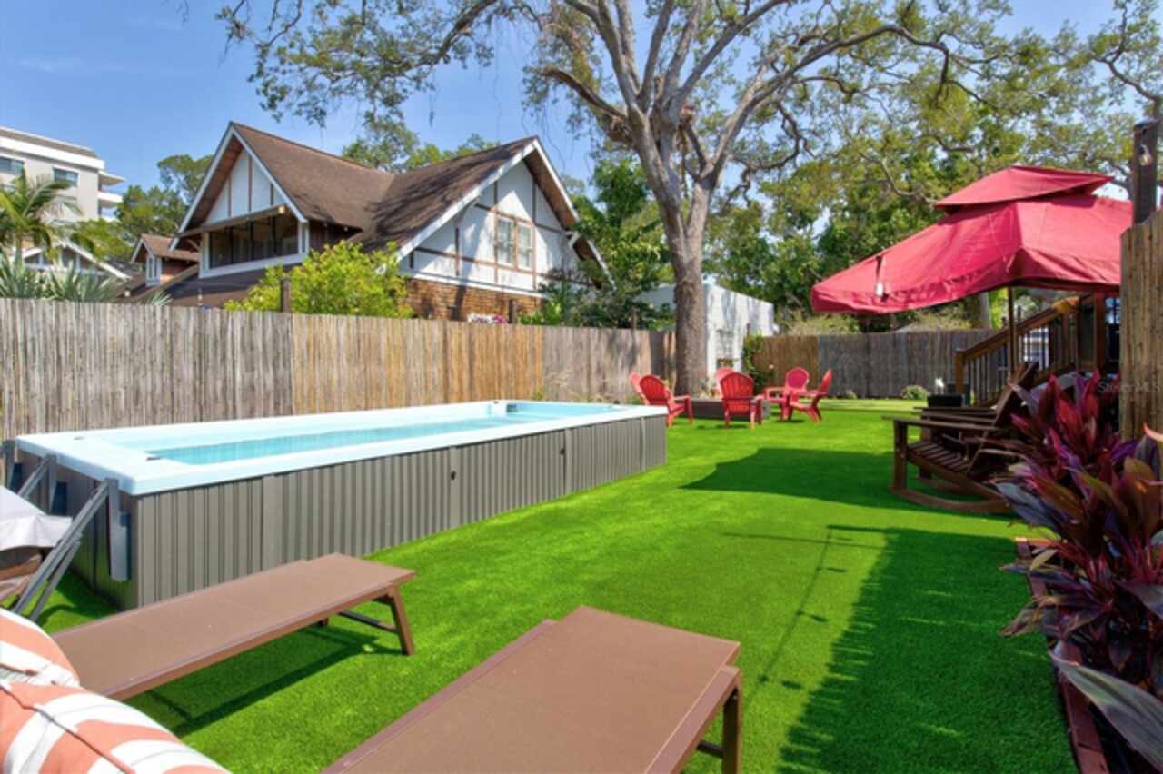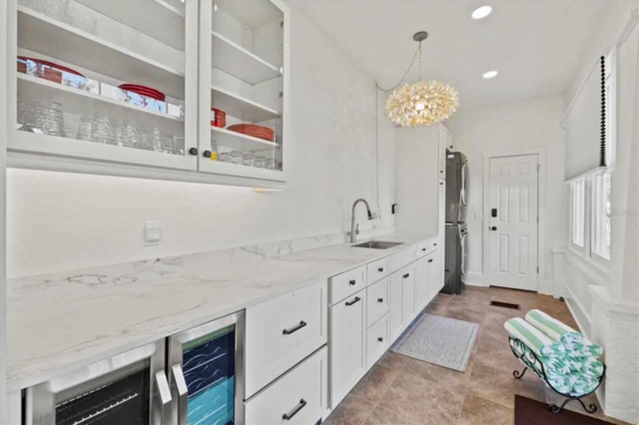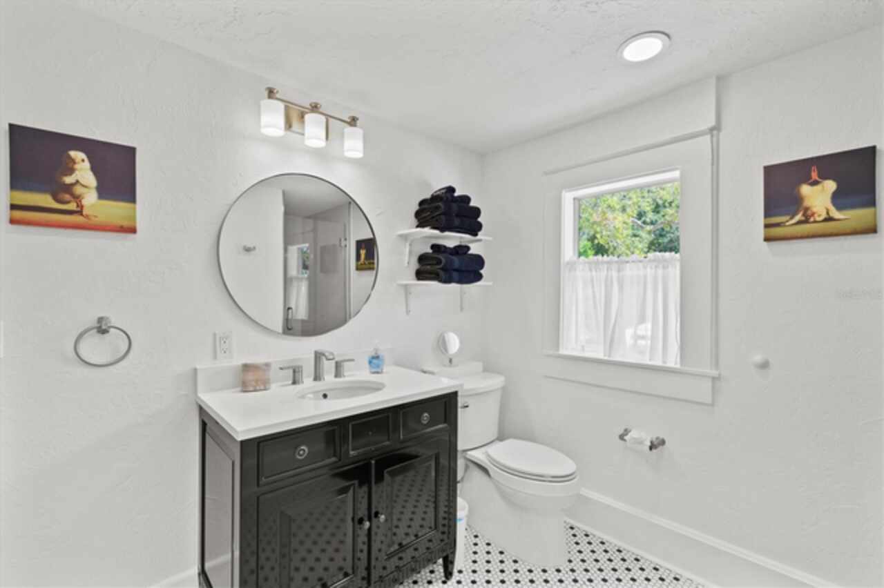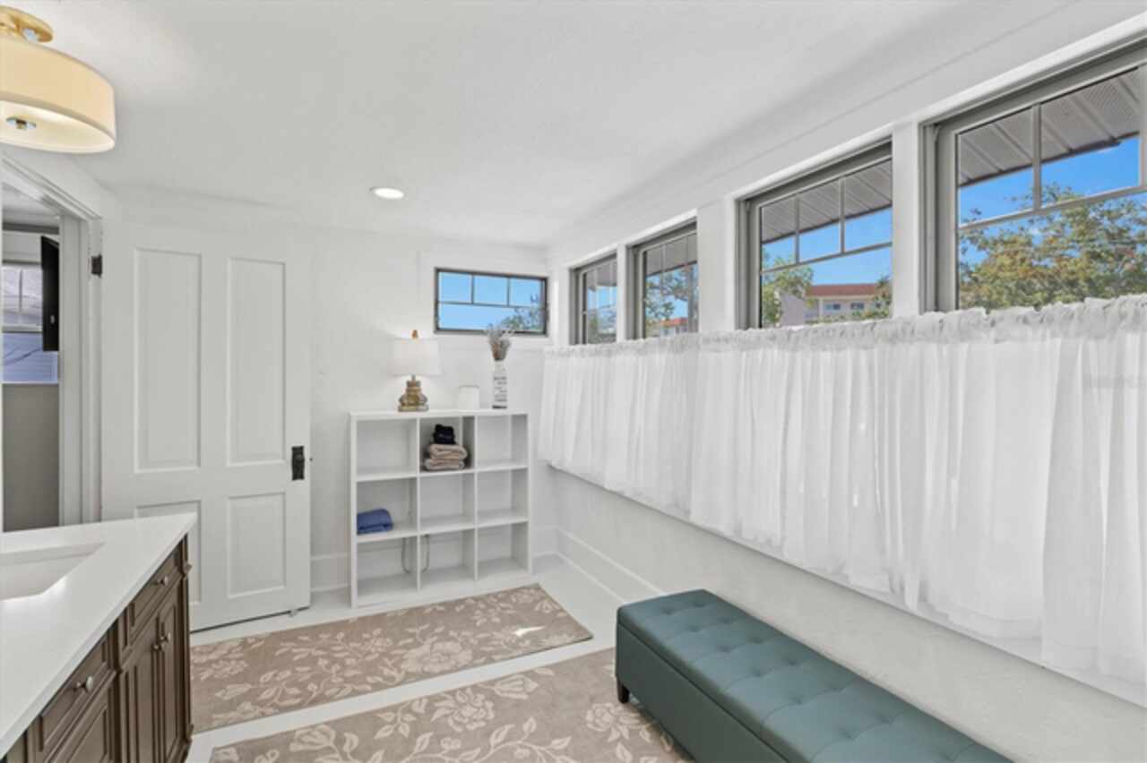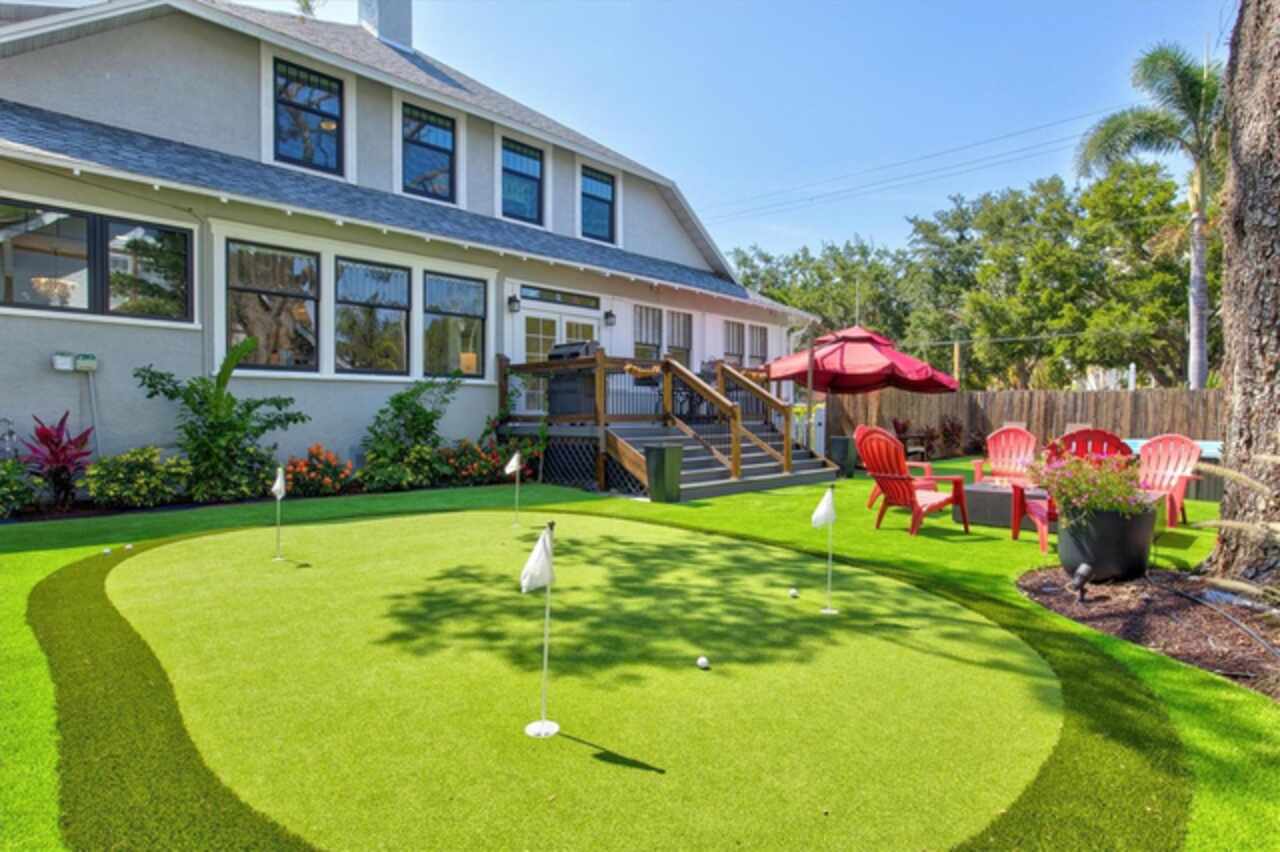 Immerse yourself in the rich history and timeless elegance of this meticulously renovated historic home located in the heart of Point Pleasant in downtown Bradenton. This distinguished two-story, 4-bedroom, 5-bathroom American Four Square home offers a harmonious blend of classic architectural charm and contemporary luxury. Originally built in 1913, the Betts House stands as a testament to Bradenton's storied past, with every detail meticulously preserved and enhanced for modern living. The newly landscaped front yard leads to the inviting, large wrap-around porch evoking a sense of nostalgia, reminiscent of days gone by. The grand living area has the original leaded windows with a fireplace and leads to both the family room and kitchen. The spacious family room has impact windows and a convenient full bath with the stairway leading to the four bedrooms and four additional baths. The remodeled kitchen and dining area is an open and inviting space overlooking the side yard. Crafted with care, the kitchen features impact windows, KraftMaid cabinetry, new LG appliances, a Bosch paneled dishwasher, exquisite butcher block counters, and complemented by an island topped with Dekton Entzo quartz. The large dining area still has the vintage leaded windows and leads to the impressive added butler's pantry that was formerly a side porch. It offers a wine refrigerator, two refrigerated drink drawers, a sink, and additional cabinetry also with Dekton Entzo quart. This area offers a seamless transition between indoor and outdoor entertaining. Once upstairs, you will find three bedrooms with three remodeled ensuite baths and a fourth bedroom serviced by an updated hall bath. The added primary bath has a spacious walk-in shower, dual vanities, and a private water closet. Step outside and discover a private oasis, complete with a composite side deck, rebuilt back porch, and a partially submerged 15'x8'x5' dual swim jet lighted Swim Spa. Practice your putting skills on the professionally installed 4-hole putting green, surrounded by lush artificial turf and expertly landscaped gardens. After a busy day, relax by the gas fire pit or rinse off in the outdoor shower before your resistance swim. Enjoy privacy with new bamboo fencing and landscape lighting, while the addition of string lighting illuminates the side yard for enchanting evenings under the stars. Thoughtful updates include a new roof in 2022, replacement of both HVAC units (downstairs unit 2025, upstairs unit 2023), 16 new impact windows, and a complete refinished and staining of wood floors, stairway, and handrails. In addition, the interior has been freshly painted and has new light fixtures and new window treatments throughout. Perfectly situated a very short distance from historic Old Main Street with its charming shops, bars, and restaurants as well as the marina, Manatee River, and the Riverwalk. The Betts House offers unparalleled access to the best of Bradenton’s waterfront living. Experience the perfect harmony of history and modern comforts by discovering the timeless allure of this exceptional residence.
