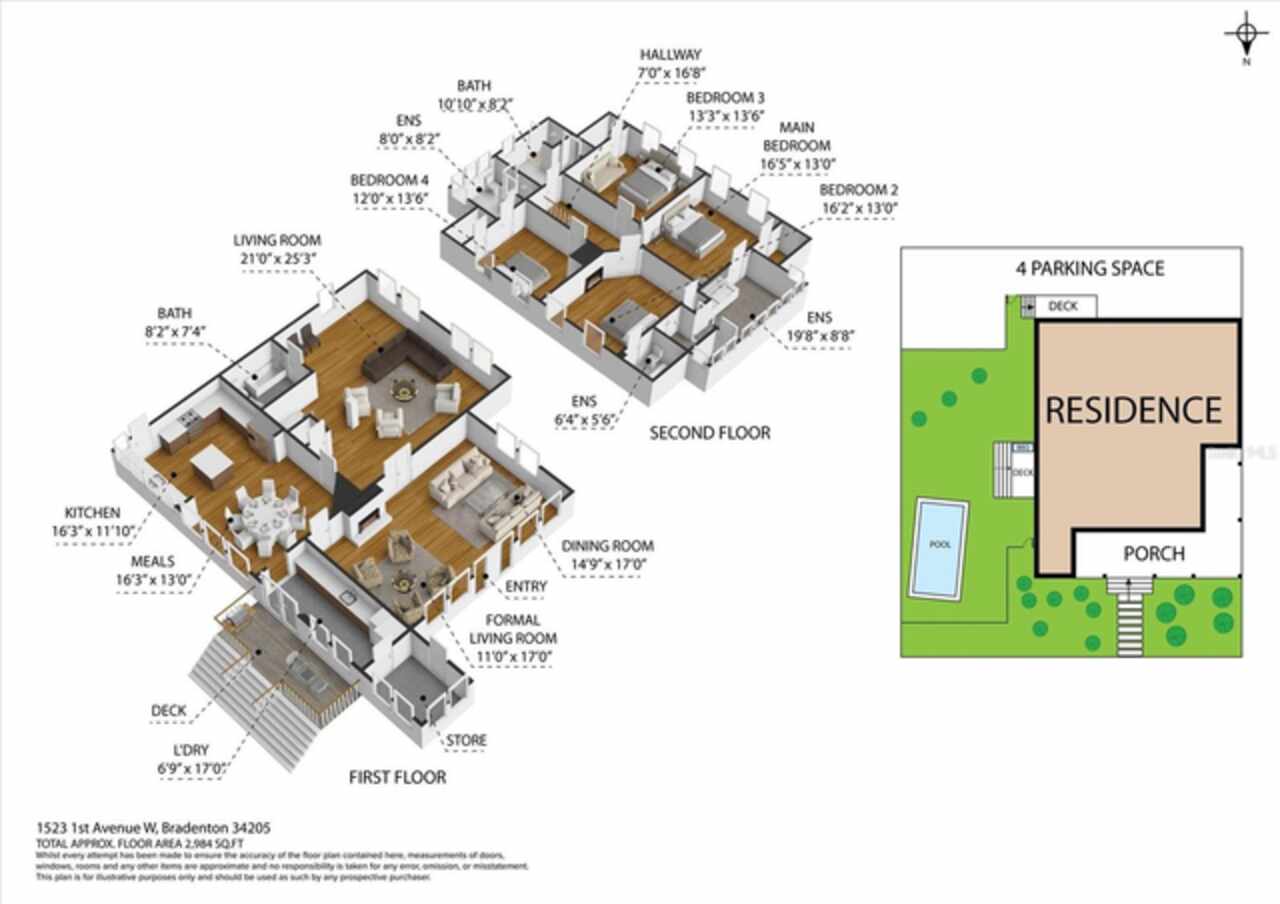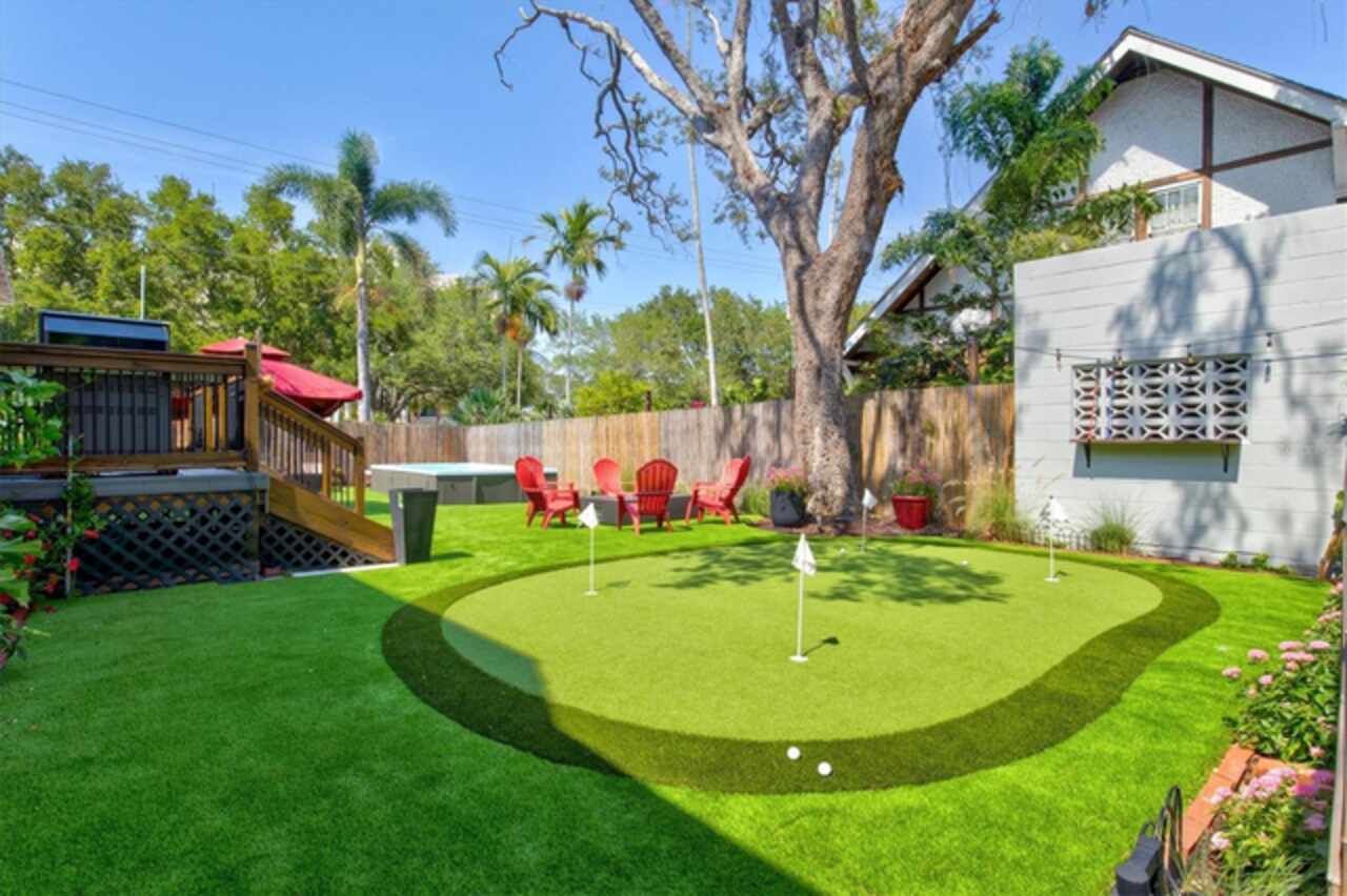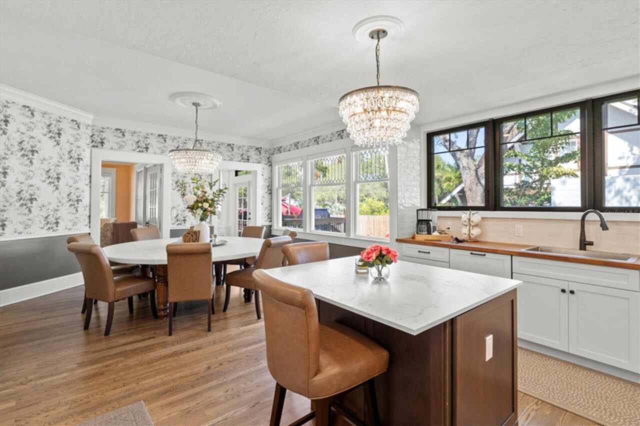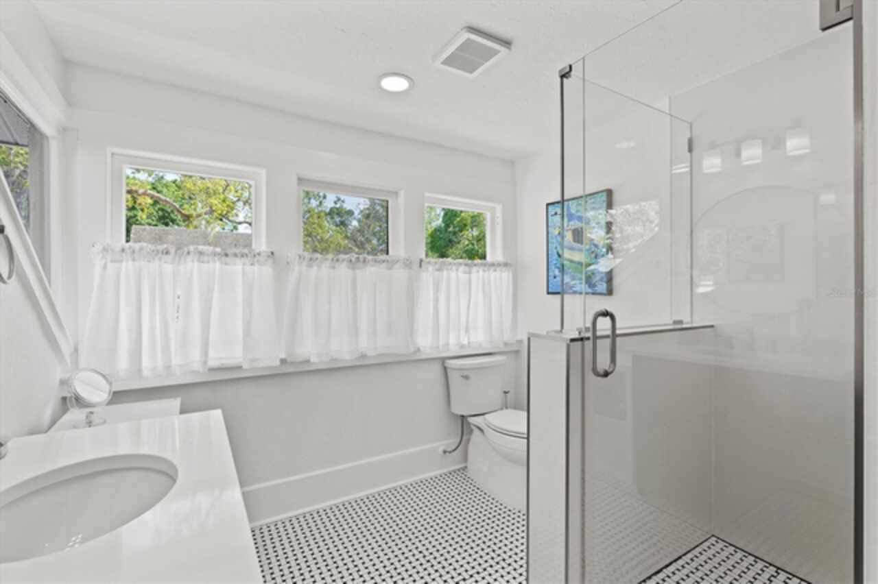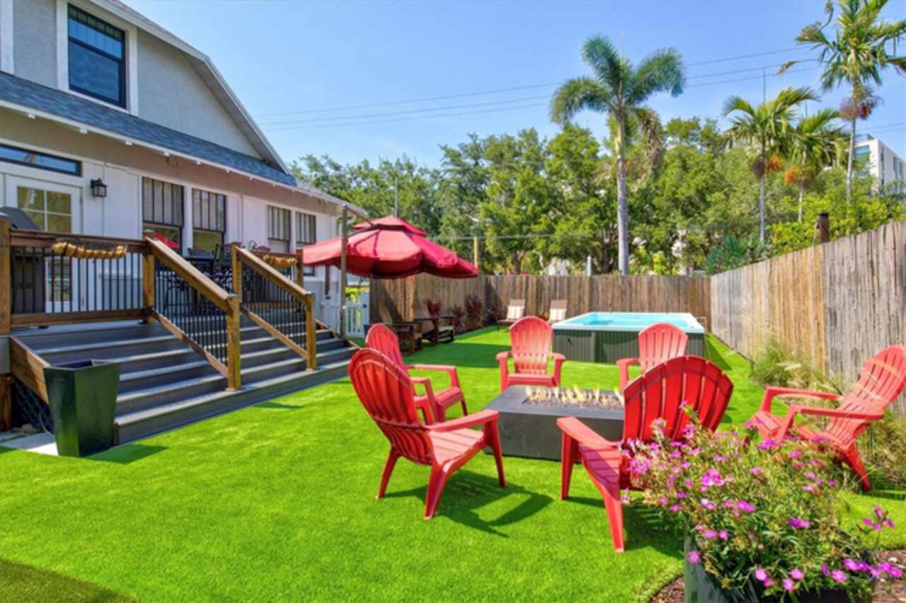 Immerse yourself in the rich history and timeless elegance of this meticulously renovated historic home located in the heart of Point Pleasant in downtown Bradenton. This distinguished two-story, 4-bedroom, 5-bathroom American Four Square home offers a harmonious blend of classic architectural charm and contemporary luxury. Originally built in 1913, the Betts House stands as a testament to Bradenton's storied past, with every detail meticulously preserved and enhanced for modern living. The newly landscaped front yard leads to the inviting, large wrap-around porch evoking a sense of nostalgia, reminiscent of days gone by. The grand living area has the original leaded windows with a fireplace and leads to both the family room and kitchen. The spacious family room has impact windows and a convenient full bath with the stairway leading to the four bedrooms and four additional baths. The remodeled kitchen and dining area is an open and inviting space overlooking the side yard. Crafted with care, the kitchen features impact windows, KraftMaid cabinetry, new LG appliances, a Bosch paneled dishwasher, exquisite butcher block counters, and complemented by an island topped with Dekton Entzo quartz. The large dining area still has the vintage leaded windows and leads to the impressive added butler's pantry that was formerly a side porch. It offers a wine refrigerator, two refrigerated drink drawers, a sink, and additional cabinetry also with Dekton Entzo quart. This area offers a seamless transition between indoor and outdoor entertaining. Once upstairs, you will find three bedrooms with three remodeled ensuite baths and a fourth bedroom serviced by an updated hall bath. The added primary bath has a spacious walk-in shower, dual vanities, and a private water closet. Step outside and discover a private oasis, complete with a composite side deck, rebuilt back porch, and a partially submerged 15'x8'x5' dual swim jet lighted Swim Spa. Practice your putting skills on the professionally installed 4-hole putting green, surrounded by lush artificial turf and expertly landscaped gardens. After a busy day, relax by the gas fire pit or rinse off in the outdoor shower before your resistance swim. Enjoy privacy with new bamboo fencing and landscape lighting, while the addition of string lighting illuminates the side yard for enchanting evenings under the stars. Thoughtful updates include a new roof in 2022, replacement of both HVAC units (downstairs unit 2025, upstairs unit 2023), 16 new impact windows, and a complete refinished and staining of wood floors, stairway, and handrails. In addition, the interior has been freshly painted and has new light fixtures and new window treatments throughout. Perfectly situated a very short distance from historic Old Main Street with its charming shops, bars, and restaurants as well as the marina, Manatee River, and the Riverwalk. The Betts House offers unparalleled access to the best of Bradenton’s waterfront living. Experience the perfect harmony of history and modern comforts by discovering the timeless allure of this exceptional residence.