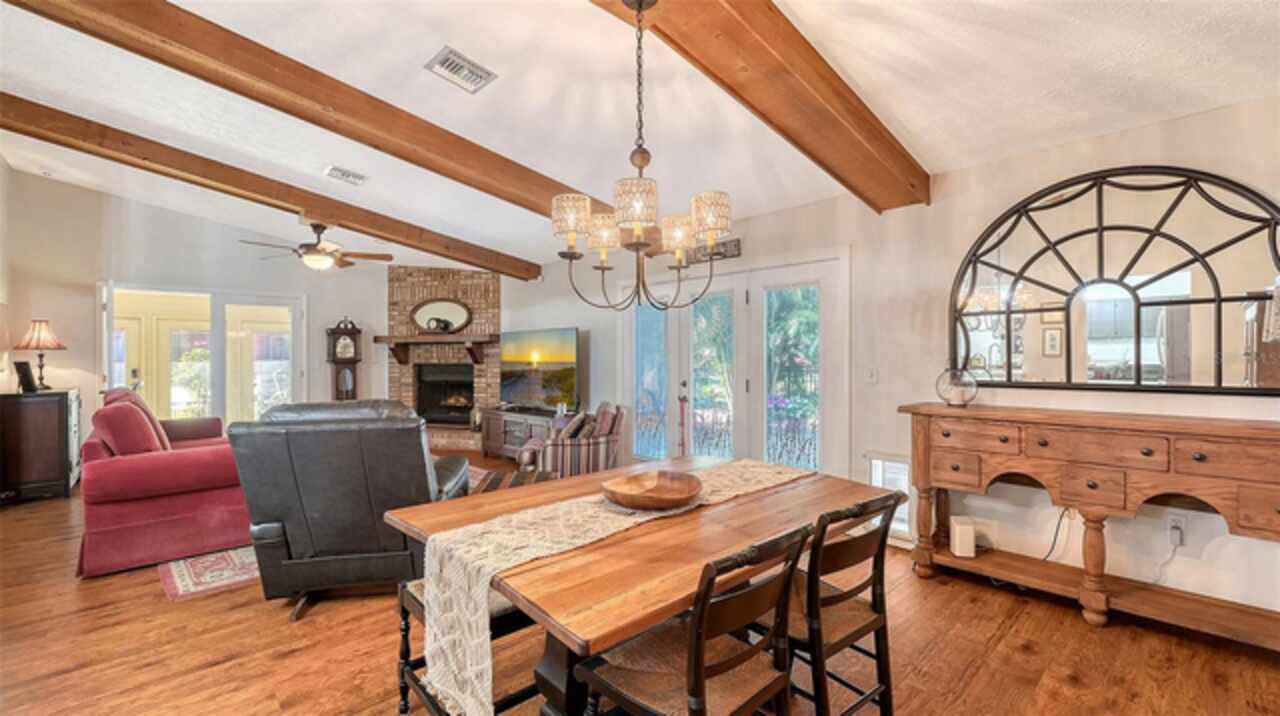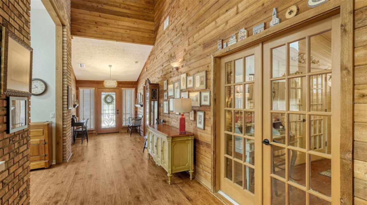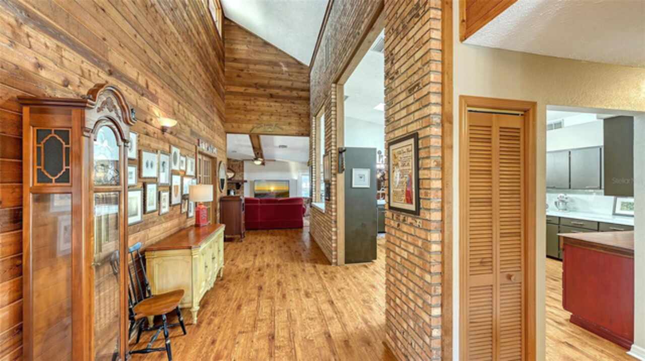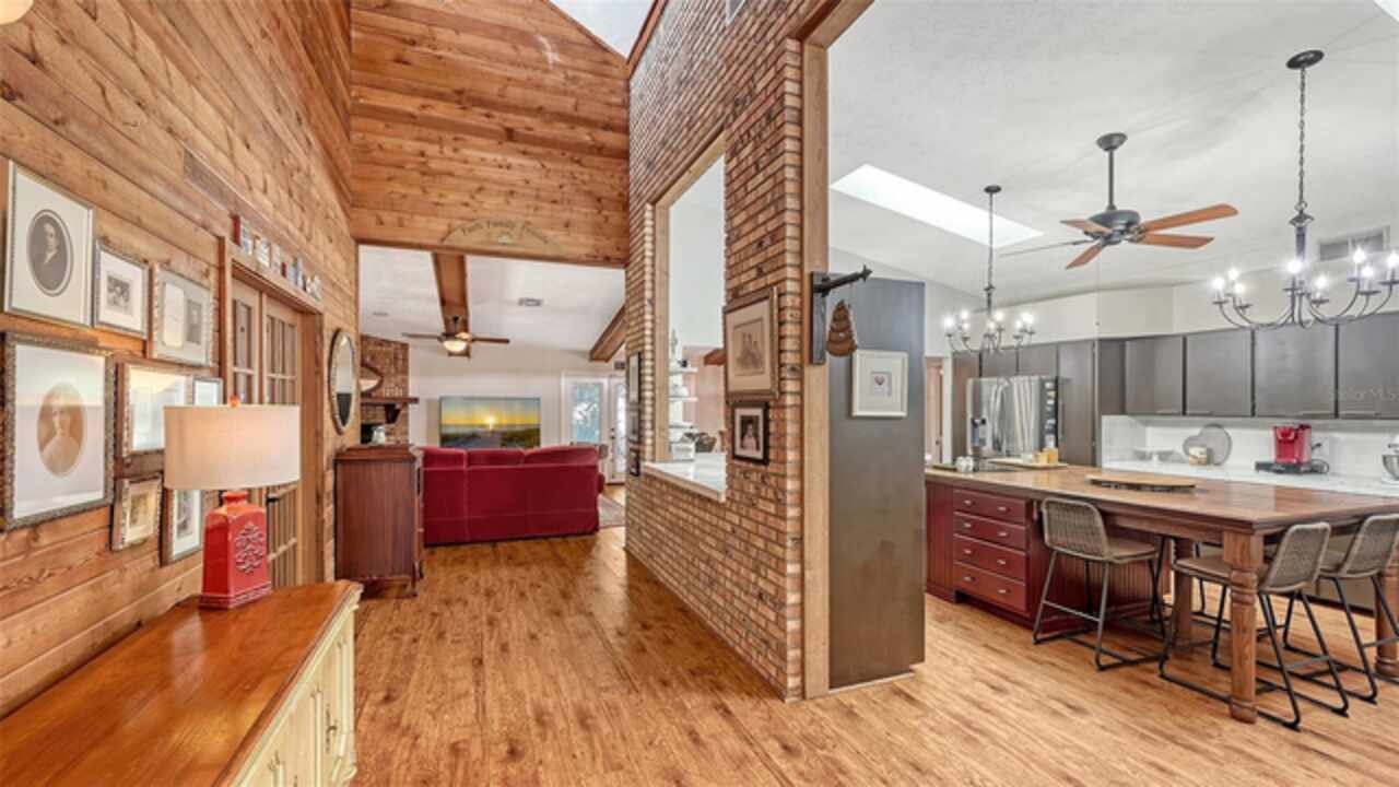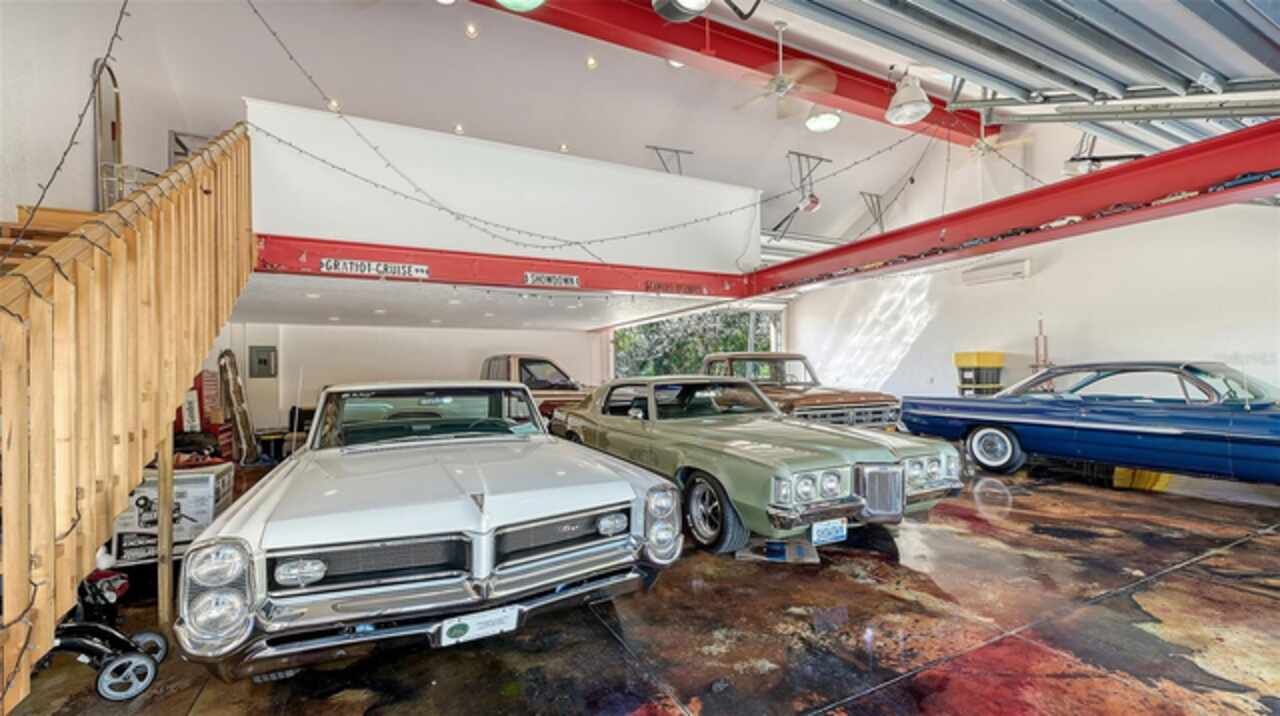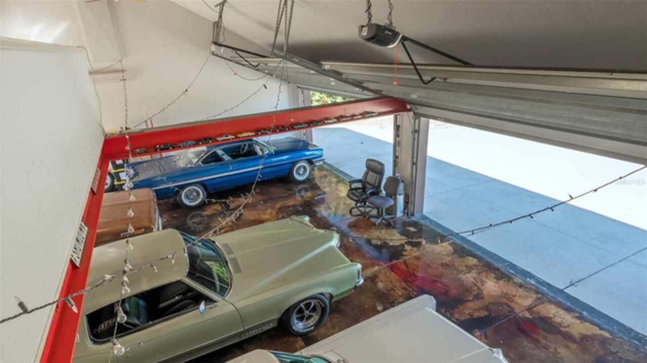 Welcome to Casa Catalina…..A California Contemporary Home Designed for Comfortable Living. Also, included is a SHOW STOPPING AIR CONDITIONED 1596 SQUARE FOOT DETACHED GARAGE FOR THE CAR ENTHUSIAST OR COLLECTOR THAT HAS THE POTENTIAL OF HOLDING 14 CARS WITH THE ADDITIONAL OF 6 HOISTS (HOISTS NOT INCLUDED).The contemporary design of this home, along with warm rustic finishes make it both inviting and impressive. When entering the home, you are met with Soaring 25’ ceilings in an Atrium featuring red cedar and brick walls along with three transom windows. This great room, split bedroom floorplan has beamed ceilings in the great room, three bedrooms with a possible fourth bedroom (currently being used as a den), an office with separate entrance, two and a half baths, an oversized 16x21 kitchen with plenty of cabinets, stainless steel appliances, composite granite deep well sink, honed marble counter tops and a HUGE solid wood island with glass cooktop. Luxury vinyl flooring is throughout the main living area along with tile in the bathrooms, office and 8x12 laundry room. Primary bedroom is en-suite with new walk-in tiled shower, private commode room and big walk-in closet. Second and third bedrooms are both oversized with 12’ and 15’ closets. The exterior of the home is constructed with HARDIE BOARD (cement composite) except for decorative wooden beams outside at the entrance. The detached garage is block construction with 12” steel “I” beams, vaulted ceilings, two A/C systems, finished plastered walls, three (3) hurricane rated garage doors with openers, hurricane impact round decorative front window, two sky lights, three solar tube lights, finished & furnished 19x22 upper loft, metal storage racks, mercury vapor lighting, can ceiling lights and stained concrete flooring. With almost 7000 square feet of concrete driveway this one-of-a-kind garage has door tracking that follows the lines of the vaulted ceiling for hoist clearance. This beautiful Home & detached garage sits on .65 of an acre, is not in a flood zone has underground electric & full hurricane protection. There is a 12x13 deck leading out from the great room to the fenced in back yard. The attached 20'x23' - 2 car attached garage has a 8'x8' alcove workshop, includes a garage refrigerator, pull down steps to a large walk around attic, whole house surge protector & is wired for a generator. There is a well to water your flowers & an 8x12 shed. Total air-conditioned space combining both the home and detached garage is 4, 230 feet. Sellers have purchased a 1-year home warranty for the buyer that covers, air conditioning, heat, electric, plumbing and appliances.