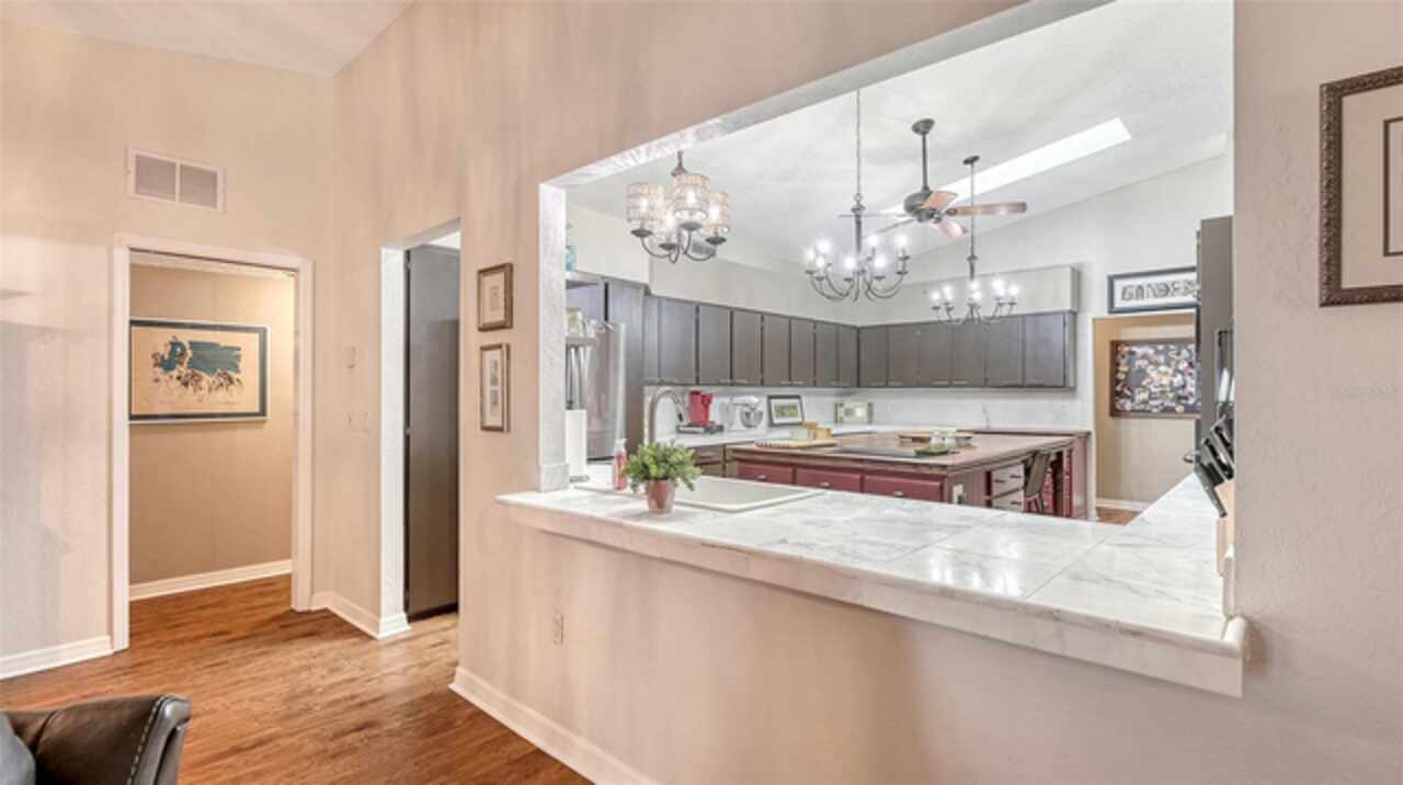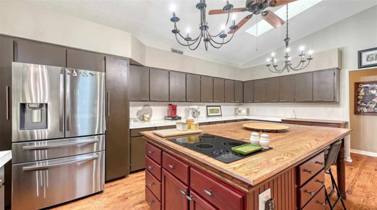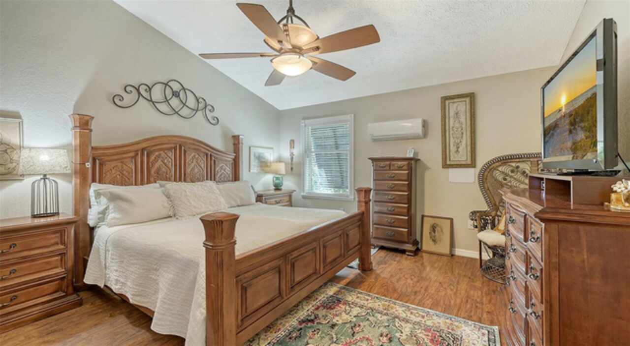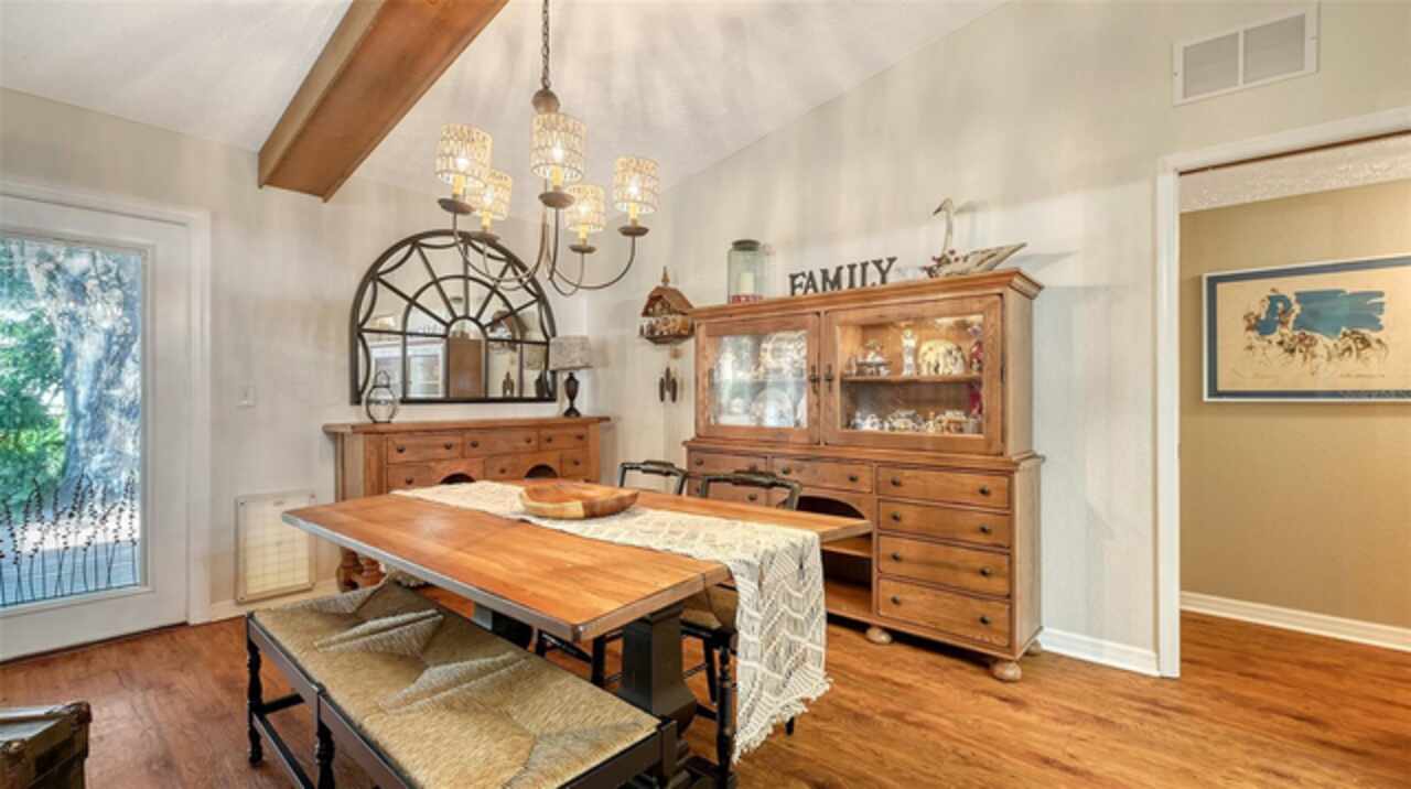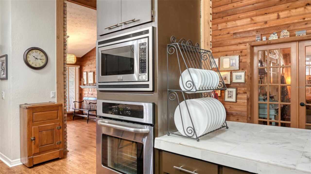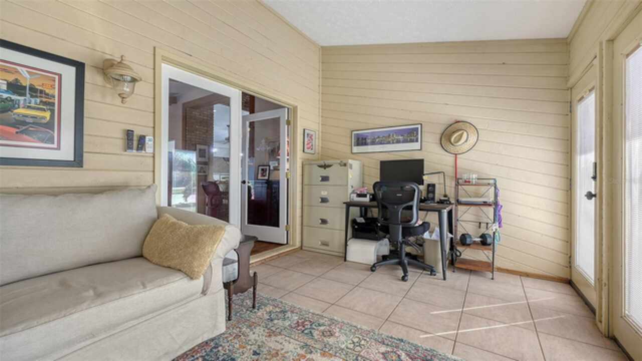 Welcome to Casa Catalina…..A California Contemporary Home Designed for Comfortable Living. Also, included is a SHOW STOPPING AIR CONDITIONED 1596 SQUARE FOOT DETACHED GARAGE FOR THE CAR ENTHUSIAST OR COLLECTOR THAT HAS THE POTENTIAL OF HOLDING 14 CARS WITH THE ADDITIONAL OF 6 HOISTS (HOISTS NOT INCLUDED).The contemporary design of this home, along with warm rustic finishes make it both inviting and impressive. When entering the home, you are met with Soaring 25’ ceilings in an Atrium featuring red cedar and brick walls along with three transom windows. This great room, split bedroom floorplan has beamed ceilings in the great room, three bedrooms with a possible fourth bedroom (currently being used as a den), an office with separate entrance, two and a half baths, an oversized 16x21 kitchen with plenty of cabinets, stainless steel appliances, composite granite deep well sink, honed marble counter tops and a HUGE solid wood island with glass cooktop. Luxury vinyl flooring is throughout the main living area along with tile in the bathrooms, office and 8x12 laundry room. Primary bedroom is en-suite with new walk-in tiled shower, private commode room and big walk-in closet. Second and third bedrooms are both oversized with 12’ and 15’ closets. The exterior of the home is constructed with HARDIE BOARD (cement composite) except for decorative wooden beams outside at the entrance. The detached garage is block construction with 12” steel “I” beams, vaulted ceilings, two A/C systems, finished plastered walls, three (3) hurricane rated garage doors with openers, hurricane impact round decorative front window, two sky lights, three solar tube lights, finished & furnished 19x22 upper loft, metal storage racks, mercury vapor lighting, can ceiling lights and stained concrete flooring. With almost 7000 square feet of concrete driveway this one-of-a-kind garage has door tracking that follows the lines of the vaulted ceiling for hoist clearance. This beautiful Home & detached garage sits on .65 of an acre, is not in a flood zone has underground electric & full hurricane protection. There is a 12x13 deck leading out from the great room to the fenced in back yard. The attached 20'x23' - 2 car attached garage has a 8'x8' alcove workshop, includes a garage refrigerator, pull down steps to a large walk around attic, whole house surge protector & is wired for a generator. There is a well to water your flowers & an 8x12 shed. Total air-conditioned space combining both the home and detached garage is 4, 230 feet. Sellers have purchased a 1-year home warranty for the buyer that covers, air conditioning, heat, electric, plumbing and appliances.