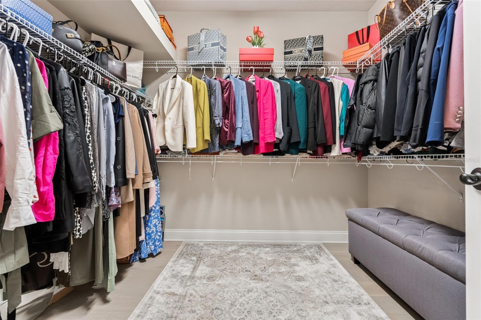 Crown Molding, Eat-in Kitchen, High Ceilings, Living Room/Dining Room Combo, Open Floorplan, PrimaryBedroom Upstairs, Solid Wood Cabinets, Stone Counters, Thermostat, Tray Ceiling(s), Walk-In Closet(s), Window Treatments