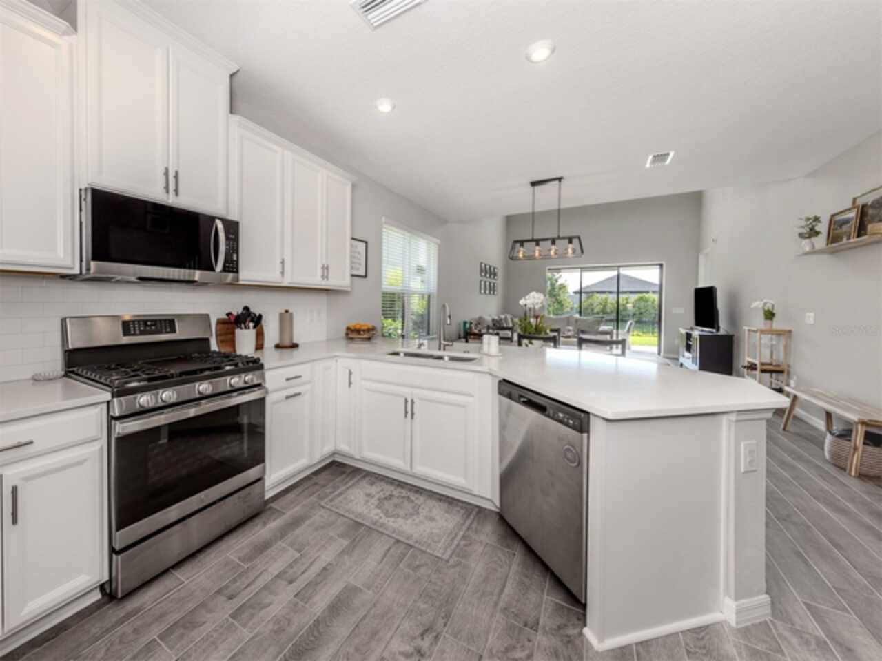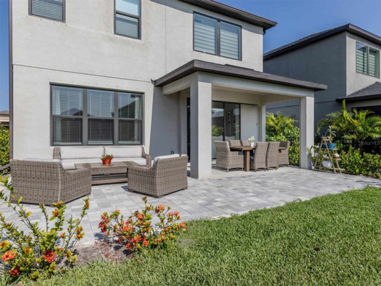 Designed with a unique blend of location, comfort and functionality in mind, this contemporary four-bedroom, three-and-a-half bath residence embodies a spacious open-concept layout. Seamlessly connected, the kitchen, dining and living area with 20-foot soaring ceiling and recessed can lighting create graceful entertaining and everyday livability. Furnished with the Classic Collection Concerto color palette evokes a fresh, clean and modern feel effortlessly flowing throughout this 2023 built residence. The gourmet kitchen is a chef's delight with gas stove, quartz countertops, light cabinets, breakfast bar, stainless steel GE appliance suite and a plentiful pantry. The first-floor primary en suite serves as a tranquil retreat with a generous walk-in closet and spa-inspired bath. A separate half bath is added as a builder upgrade with a stone top vanity with elegant designer touches. Walk upstairs into the loft enjoyed as an entertainment and movie viewing area. The second bedroom is spacious with its full en-suite bath. The third and fourth comfortable bedrooms share a large bathroom with dual sink vanity and shower/tub combination. Harmonious indoor/outdoor living with a covered portion of the outdoor lanai that is ideal for cooking in all weather conditions. An expanded paver patio provides ample space for seating areas, alfresco dining and a delightful fenced-in yard for pets, outdoor entertaining or quality family time. Immerse yourself in the understated elegance of the gated Palermo community. Open the door to new experiences with walking paths around lakes, community clubhouse with pool and spa, outdoor grilling area, community firepit, dog park, playground, basketball and volleyball court. With low HOA fees and no CDD fees this community offers quality living at an affordable price. This inspiring community is seven minutes to Nokomis Beach, close to Legacy Trail biking, shopping, dining, golf courses and top-rated schools. Easily accessible to airports, Interstate 75, theater, parks, cultural events and the world-renowned city on the Island of Venice with treasured beaches boasting 14 miles of open coastline. Reconnect, restore and indulge – where every detail is elevated and every moment is yours.