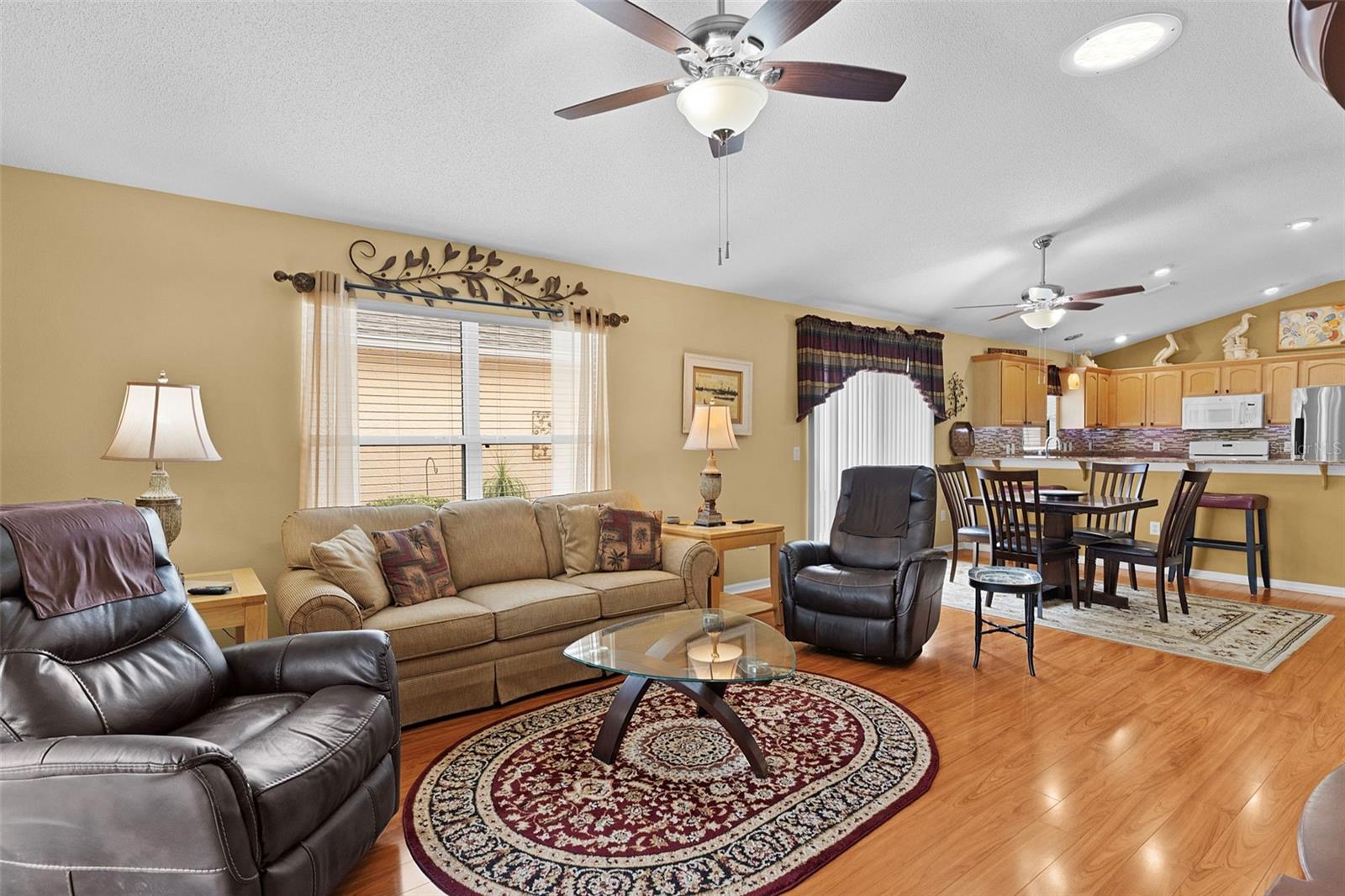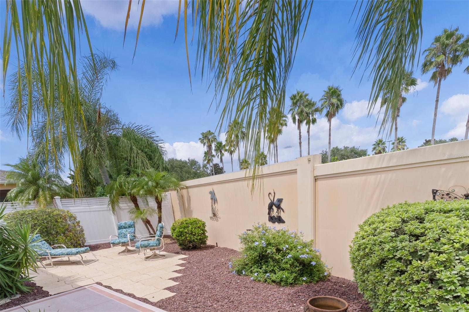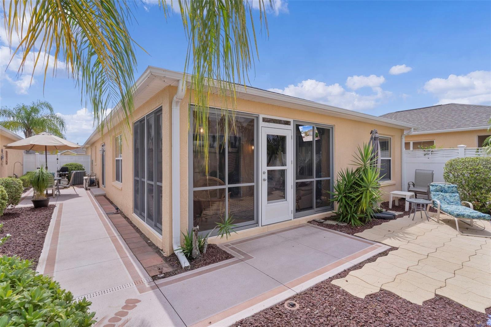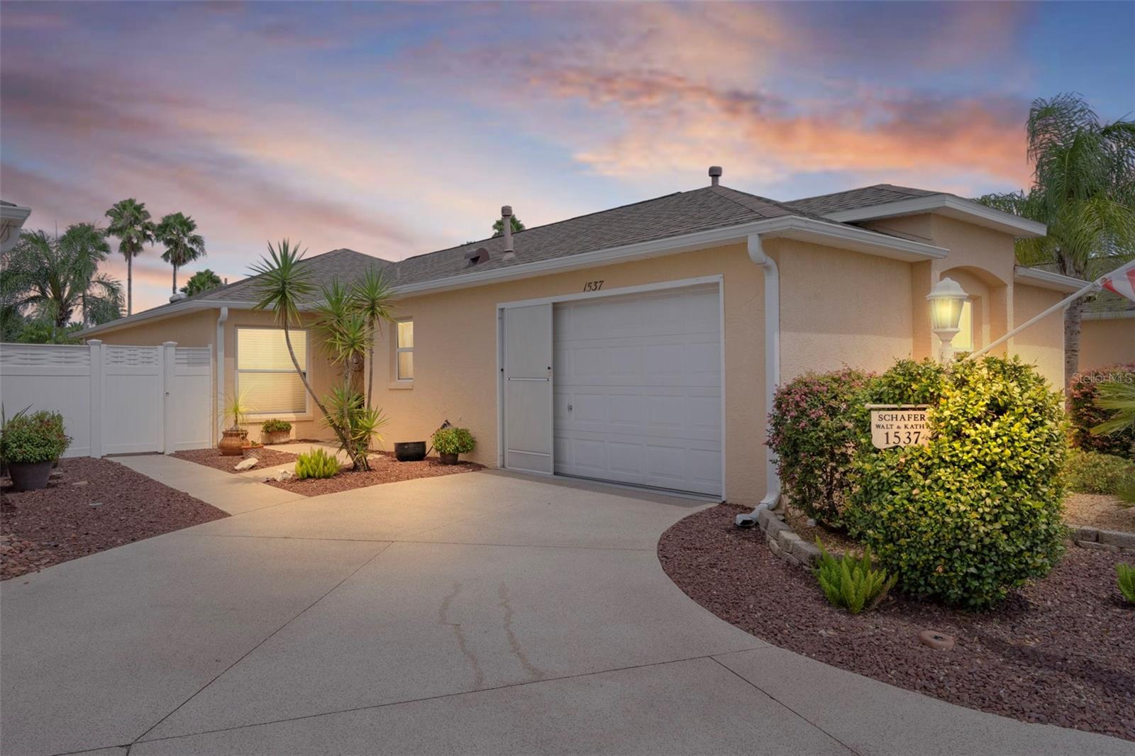 BOND PAID, PARTIALLY FURNISHED, NEWER ROOF 2021, NO CARPET, BLOCK & STUCCO, VAULTED CEILINGS, GRANITE, OPEN CONCEPT, INSIDE LAUNDRY, OUTSTANDING LOCATION = your new home! This one-owner FOXGLOVE Courtyard Villa in the desirable Village of POINCIANA checks all the boxes! Offering 3 bedrooms, 2 baths, OPEN CONCEPT, BLOCK & STUCCO construction, and a ROOF REPLACED IN 2021—with the BOND ALREADY PAID. Exterior features include a PAINTED DRIVEWAY AND WALKWAYS, low-maintenance landscape with ROCK BEDS, a sliding GARAGE SCREEN, and a welcoming STORM DOOR. Relax in the private backyard sitting area—your own quiet retreat. This villa is offered PARTIALLY FURNISHED for an easy, move-in ready lifestyle. Prefer unfurnished? The seller will remove furnishings at your request. A YAMAHA GOLF CART is available separately. Step inside to find VAULTED CEILINGS, SOLAR TUBES (living room, primary bath, and 3rd bedroom/office), and an INSIDE LAUNDRY ROOM with cabinetry. The kitchen shines with GRANITE COUNTERTOPS (matching granite in both bathrooms), plentiful cabinets with PULL-OUTS, modern BACKSPLASH, bar-height SEATING, newer STAINLESS-STEEL REFRIGERATOR, and a BOSCH dishwasher. Flooring includes LAMINATE in main areas, TILE in wet spaces, and the LANAI for style and easy care. The primary suite offers a WALK-IN CLOSET with an abundance of shelving and an EN-SUITE BATH WITH SOLAR TUBE—plenty of natural light. A POCKET DOOR GUEST SUITE ensures privacy for visitors. The garage accommodates both car and golf cart, enhanced with HANGING STORAGE RACKS. FANTASTIC LOCATION! Directly across from Allamanda Rec Center, just 1 mile to Cane Garden CC, even less to the Poinciana Postal station/neighborhood pool, a short trip to Lake Sumter Landing as well as Brownwood!! and only less than 3 miles to Havana Country Club and Colony Plaza. You’ll enjoy quick access to shopping, dining, golf, rec centers, and nightly entertainment at the squares. All the reasons you’ll love calling this home, HOME!