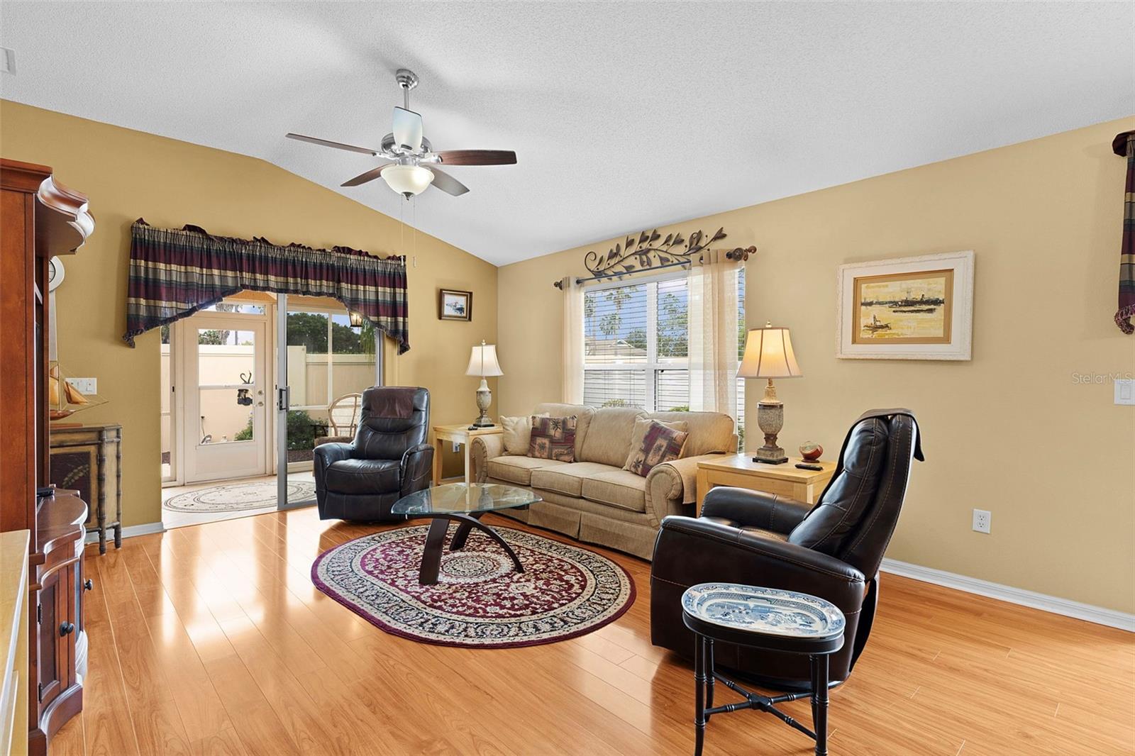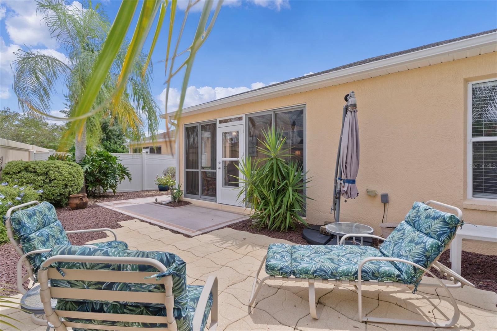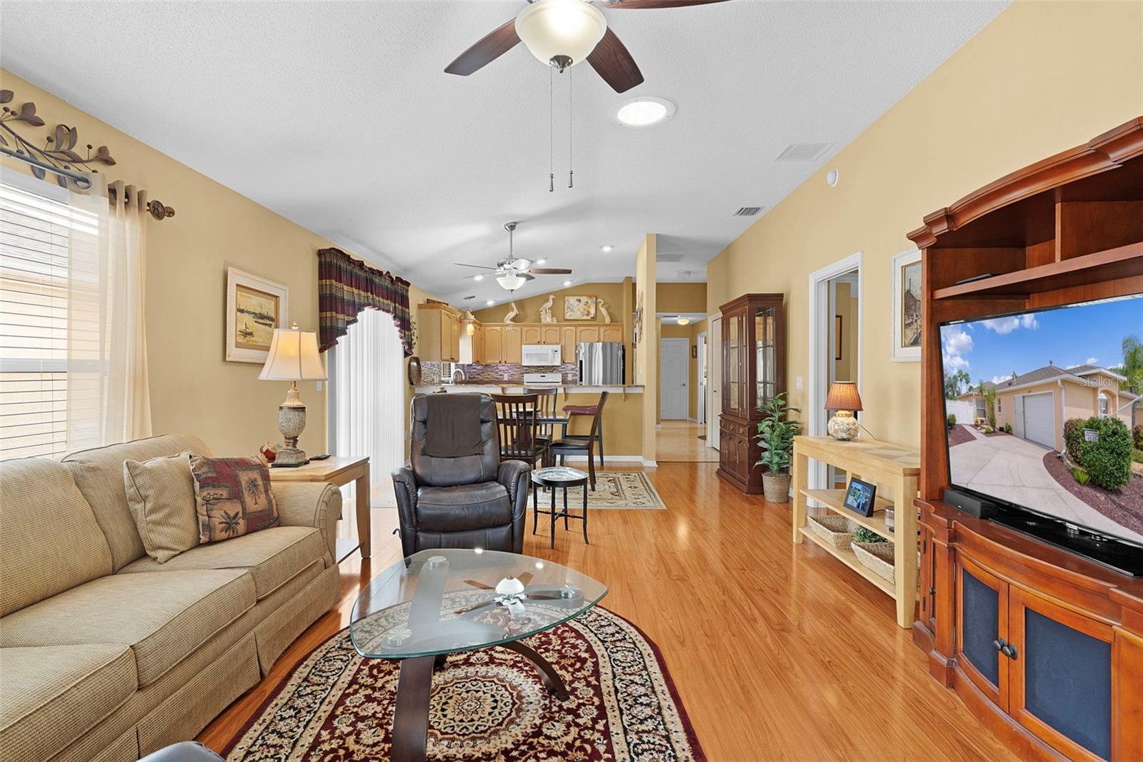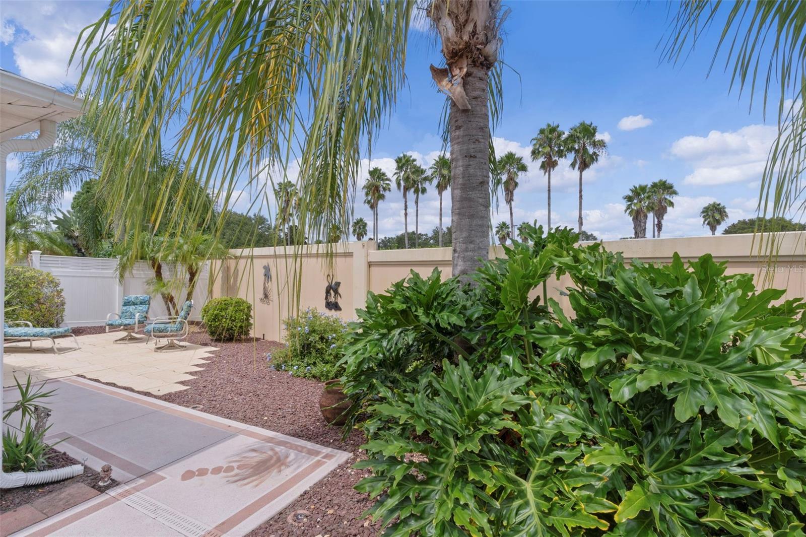 BOND PAID, PARTIALLY FURNISHED, NEWER ROOF 2021, NO CARPET, BLOCK & STUCCO, VAULTED CEILINGS, GRANITE, OPEN CONCEPT, INSIDE LAUNDRY, OUTSTANDING LOCATION = your new home! This one-owner FOXGLOVE Courtyard Villa in the desirable Village of POINCIANA checks all the boxes! Offering 3 bedrooms, 2 baths, OPEN CONCEPT, BLOCK & STUCCO construction, and a ROOF REPLACED IN 2021—with the BOND ALREADY PAID. Exterior features include a PAINTED DRIVEWAY AND WALKWAYS, low-maintenance landscape with ROCK BEDS, a sliding GARAGE SCREEN, and a welcoming STORM DOOR. Relax in the private backyard sitting area—your own quiet retreat. This villa is offered PARTIALLY FURNISHED for an easy, move-in ready lifestyle. Prefer unfurnished? The seller will remove furnishings at your request. A YAMAHA GOLF CART is available separately. Step inside to find VAULTED CEILINGS, SOLAR TUBES (living room, primary bath, and 3rd bedroom/office), and an INSIDE LAUNDRY ROOM with cabinetry. The kitchen shines with GRANITE COUNTERTOPS (matching granite in both bathrooms), plentiful cabinets with PULL-OUTS, modern BACKSPLASH, bar-height SEATING, newer STAINLESS-STEEL REFRIGERATOR, and a BOSCH dishwasher. Flooring includes LAMINATE in main areas, TILE in wet spaces, and the LANAI for style and easy care. The primary suite offers a WALK-IN CLOSET with an abundance of shelving and an EN-SUITE BATH WITH SOLAR TUBE—plenty of natural light. A POCKET DOOR GUEST SUITE ensures privacy for visitors. The garage accommodates both car and golf cart, enhanced with HANGING STORAGE RACKS. FANTASTIC LOCATION! Directly across from Allamanda Rec Center, just 1 mile to Cane Garden CC, even less to the Poinciana Postal station/neighborhood pool, a short trip to Lake Sumter Landing as well as Brownwood!! and only less than 3 miles to Havana Country Club and Colony Plaza. You’ll enjoy quick access to shopping, dining, golf, rec centers, and nightly entertainment at the squares. All the reasons you’ll love calling this home, HOME!
