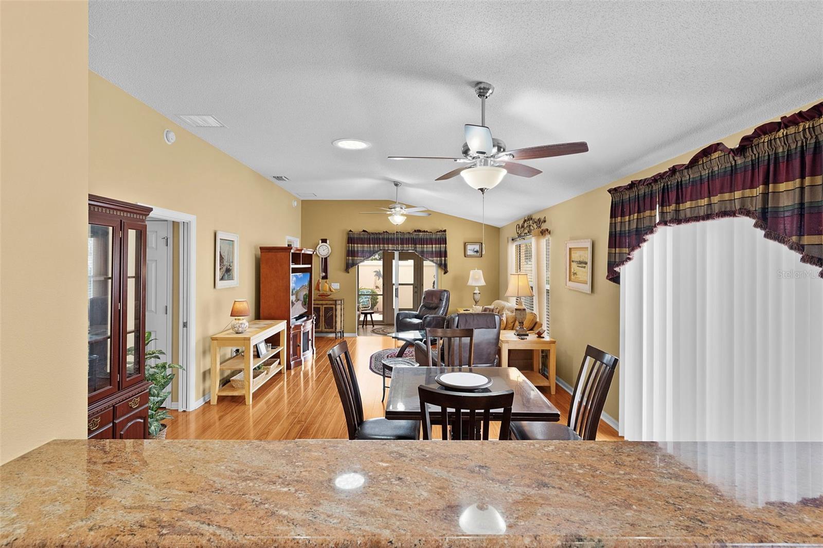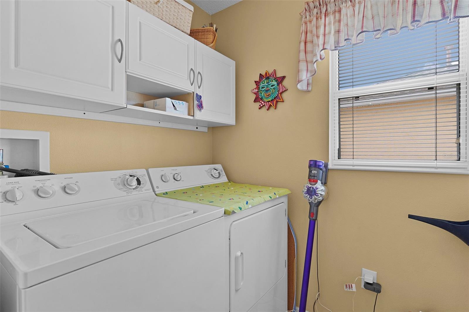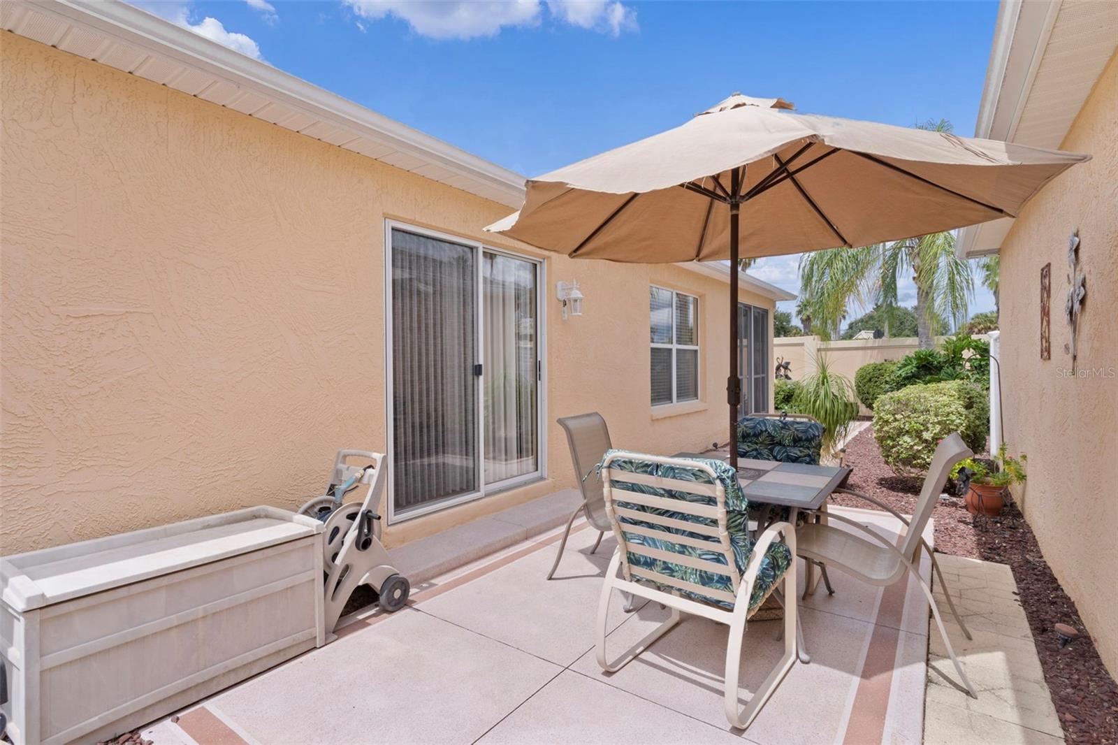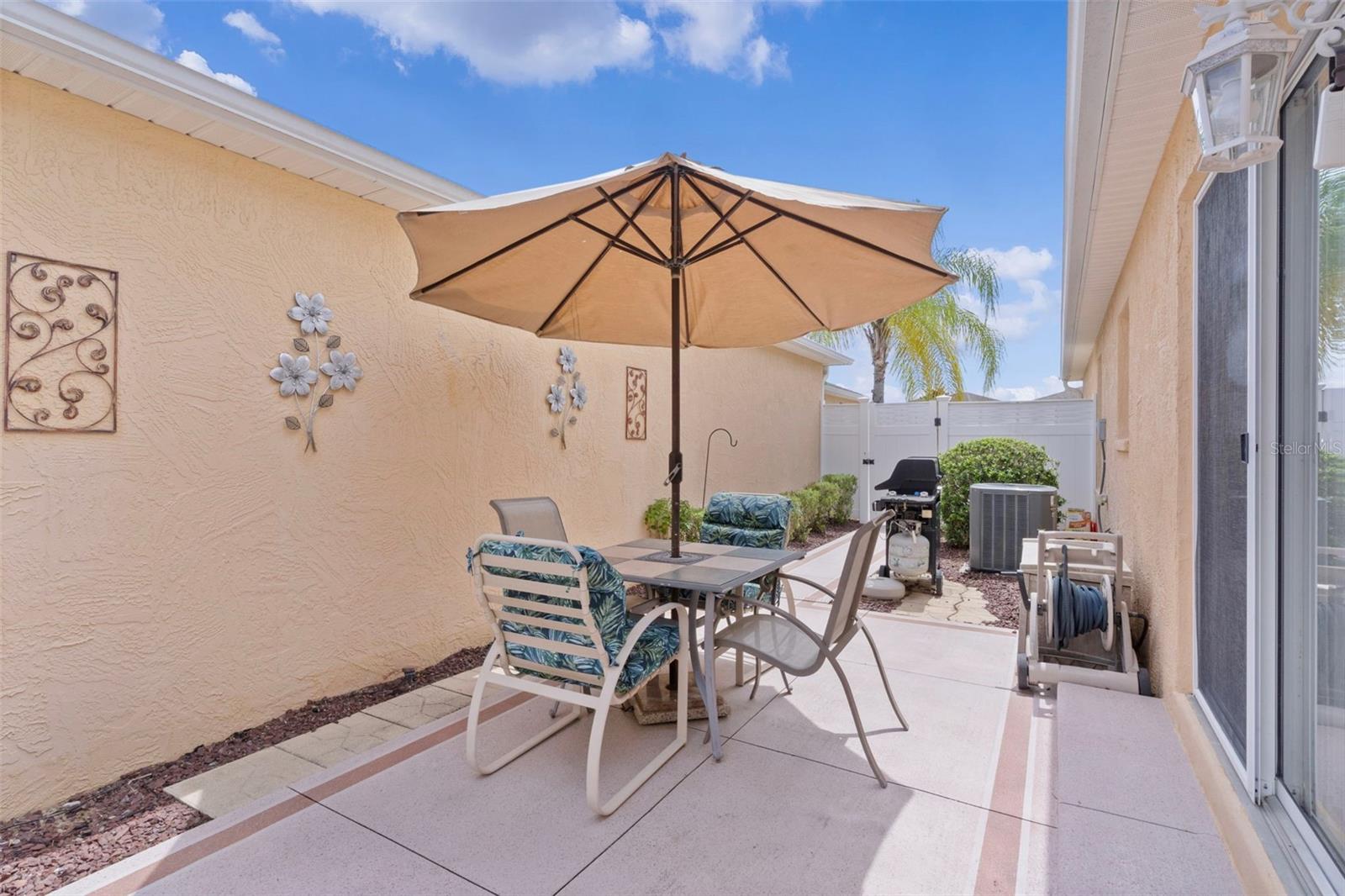 BOND PAID, PARTIALLY FURNISHED, NEWER ROOF 2021, NO CARPET, BLOCK & STUCCO, VAULTED CEILINGS, GRANITE, OPEN CONCEPT, INSIDE LAUNDRY, OUTSTANDING LOCATION = your new home! This one-owner FOXGLOVE Courtyard Villa in the desirable Village of POINCIANA checks all the boxes! Offering 3 bedrooms, 2 baths, OPEN CONCEPT, BLOCK & STUCCO construction, and a ROOF REPLACED IN 2021—with the BOND ALREADY PAID. Exterior features include a PAINTED DRIVEWAY AND WALKWAYS, low-maintenance landscape with ROCK BEDS, a sliding GARAGE SCREEN, and a welcoming STORM DOOR. Relax in the private backyard sitting area—your own quiet retreat. This villa is offered PARTIALLY FURNISHED for an easy, move-in ready lifestyle. Prefer unfurnished? The seller will remove furnishings at your request. A YAMAHA GOLF CART is available separately. Step inside to find VAULTED CEILINGS, SOLAR TUBES (living room, primary bath, and 3rd bedroom/office), and an INSIDE LAUNDRY ROOM with cabinetry. The kitchen shines with GRANITE COUNTERTOPS (matching granite in both bathrooms), plentiful cabinets with PULL-OUTS, modern BACKSPLASH, bar-height SEATING, newer STAINLESS-STEEL REFRIGERATOR, and a BOSCH dishwasher. Flooring includes LAMINATE in main areas, TILE in wet spaces, and the LANAI for style and easy care. The primary suite offers a WALK-IN CLOSET with an abundance of shelving and an EN-SUITE BATH WITH SOLAR TUBE—plenty of natural light. A POCKET DOOR GUEST SUITE ensures privacy for visitors. The garage accommodates both car and golf cart, enhanced with HANGING STORAGE RACKS. FANTASTIC LOCATION! Directly across from Allamanda Rec Center, just 1 mile to Cane Garden CC, even less to the Poinciana Postal station/neighborhood pool, a short trip to Lake Sumter Landing as well as Brownwood!! and only less than 3 miles to Havana Country Club and Colony Plaza. You’ll enjoy quick access to shopping, dining, golf, rec centers, and nightly entertainment at the squares. All the reasons you’ll love calling this home, HOME!