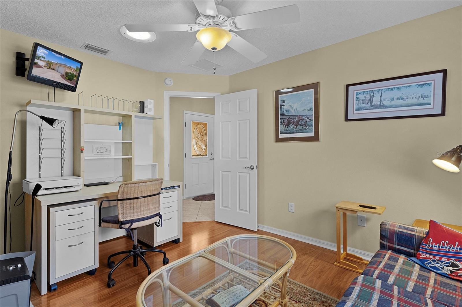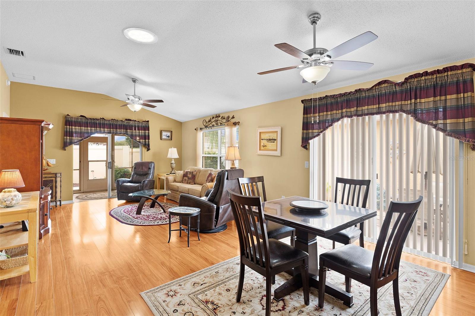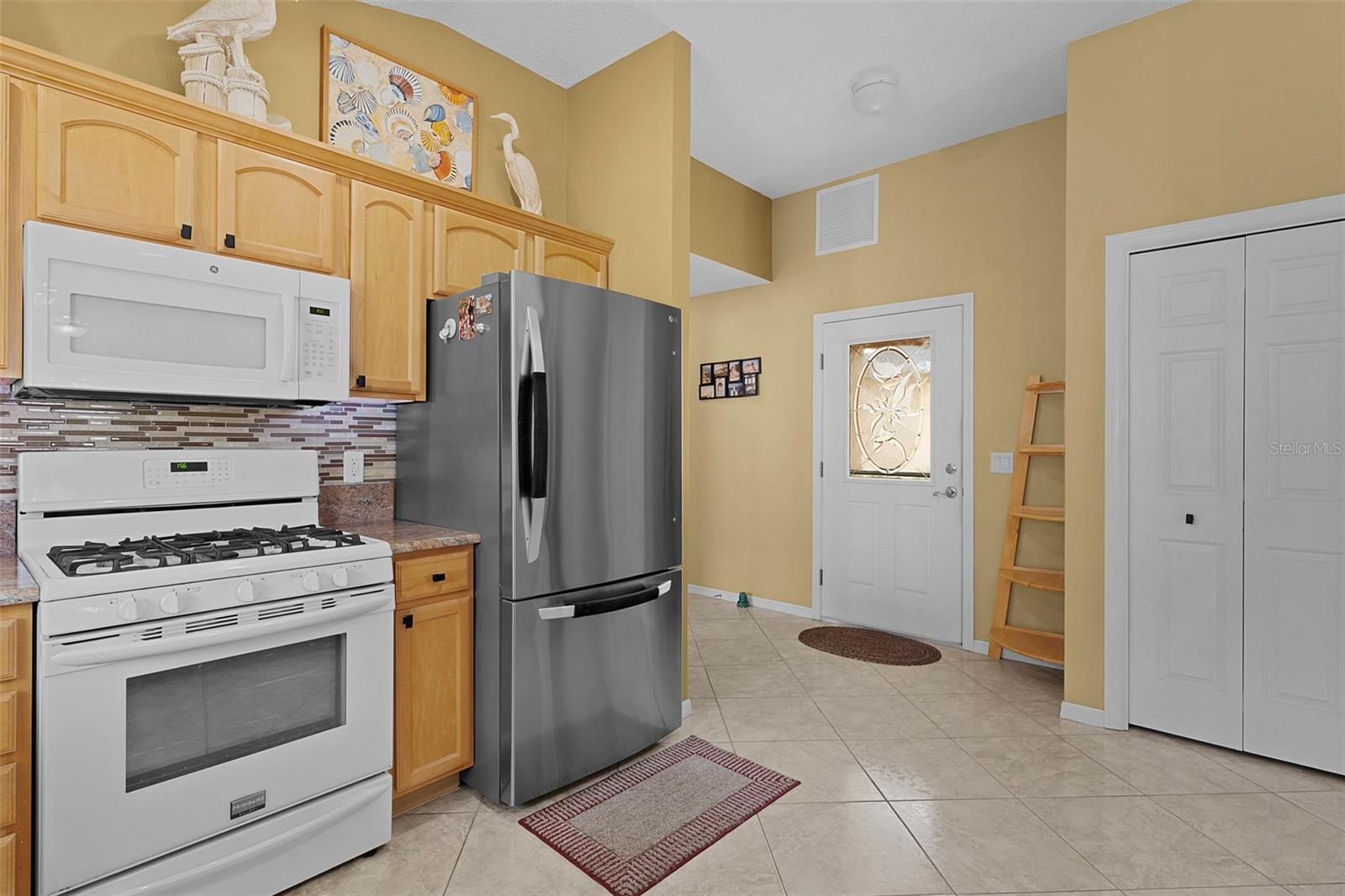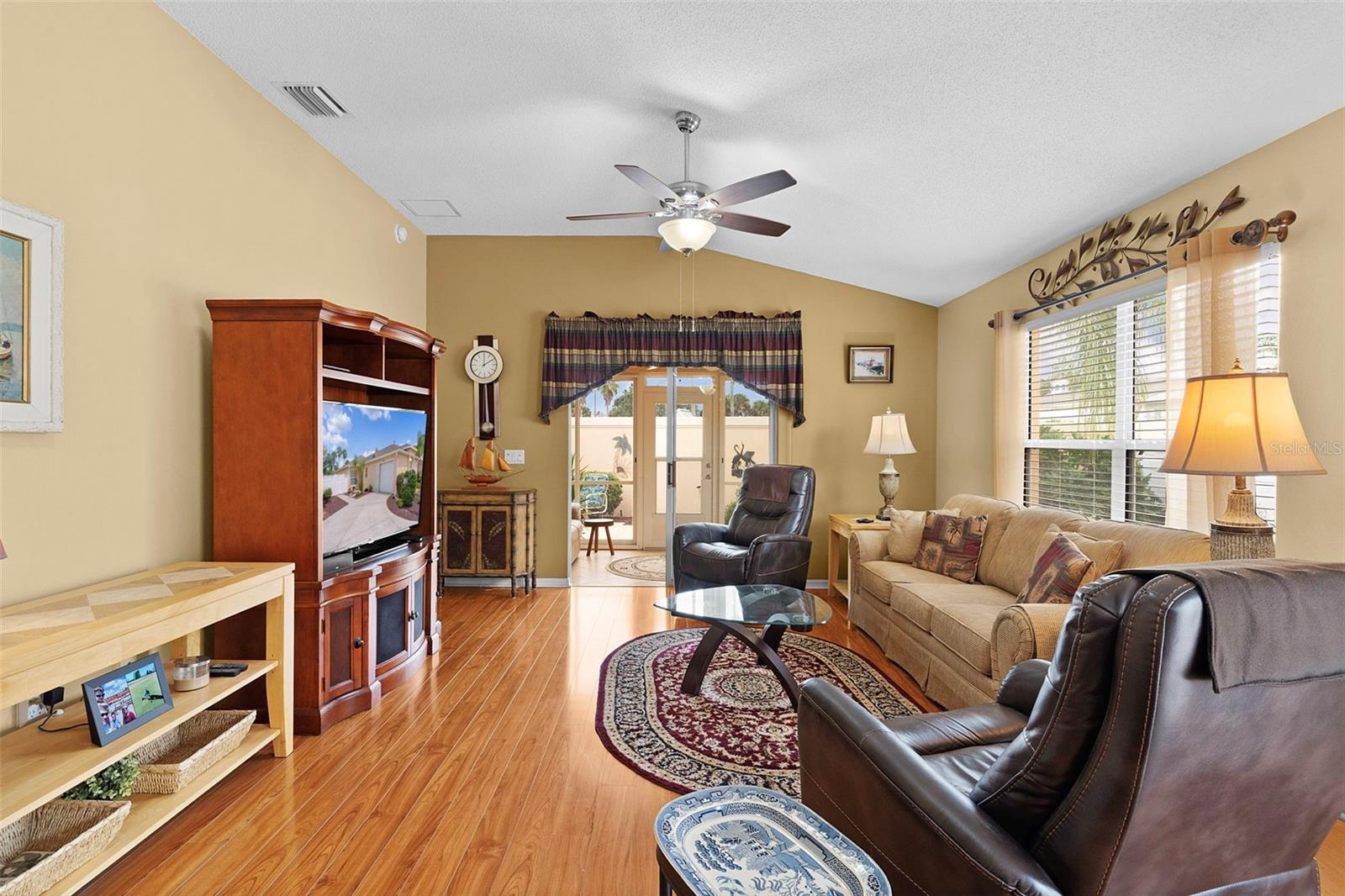 BOND PAID, PARTIALLY FURNISHED, NEWER ROOF 2021, NO CARPET, BLOCK & STUCCO, VAULTED CEILINGS, GRANITE, OPEN CONCEPT, INSIDE LAUNDRY, OUTSTANDING LOCATION = your new home! This one-owner FOXGLOVE Courtyard Villa in the desirable Village of POINCIANA checks all the boxes! Offering 3 bedrooms, 2 baths, OPEN CONCEPT, BLOCK & STUCCO construction, and a ROOF REPLACED IN 2021—with the BOND ALREADY PAID. Exterior features include a PAINTED DRIVEWAY AND WALKWAYS, low-maintenance landscape with ROCK BEDS, a sliding GARAGE SCREEN, and a welcoming STORM DOOR. Relax in the private backyard sitting area—your own quiet retreat. This villa is offered PARTIALLY FURNISHED for an easy, move-in ready lifestyle. Prefer unfurnished? The seller will remove furnishings at your request. A YAMAHA GOLF CART is available separately. Step inside to find VAULTED CEILINGS, SOLAR TUBES (living room, primary bath, and 3rd bedroom/office), and an INSIDE LAUNDRY ROOM with cabinetry. The kitchen shines with GRANITE COUNTERTOPS (matching granite in both bathrooms), plentiful cabinets with PULL-OUTS, modern BACKSPLASH, bar-height SEATING, newer STAINLESS-STEEL REFRIGERATOR, and a BOSCH dishwasher. Flooring includes LAMINATE in main areas, TILE in wet spaces, and the LANAI for style and easy care. The primary suite offers a WALK-IN CLOSET with an abundance of shelving and an EN-SUITE BATH WITH SOLAR TUBE—plenty of natural light. A POCKET DOOR GUEST SUITE ensures privacy for visitors. The garage accommodates both car and golf cart, enhanced with HANGING STORAGE RACKS. FANTASTIC LOCATION! Directly across from Allamanda Rec Center, just 1 mile to Cane Garden CC, even less to the Poinciana Postal station/neighborhood pool, a short trip to Lake Sumter Landing as well as Brownwood!! and only less than 3 miles to Havana Country Club and Colony Plaza. You’ll enjoy quick access to shopping, dining, golf, rec centers, and nightly entertainment at the squares. All the reasons you’ll love calling this home, HOME!