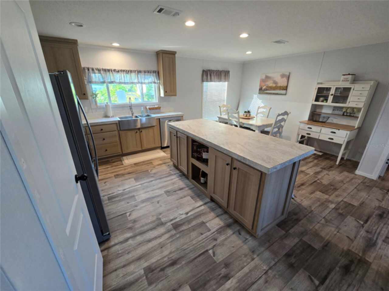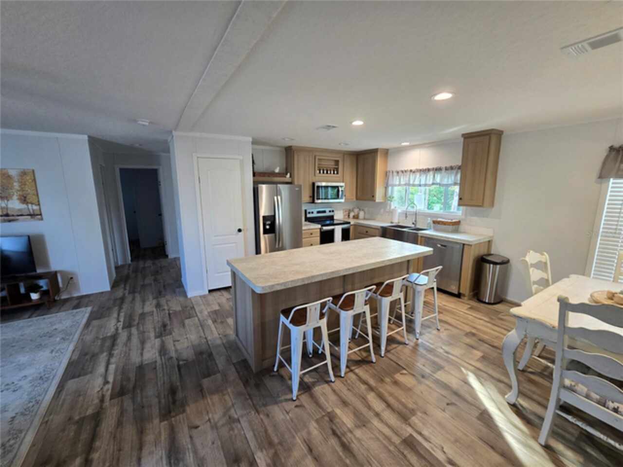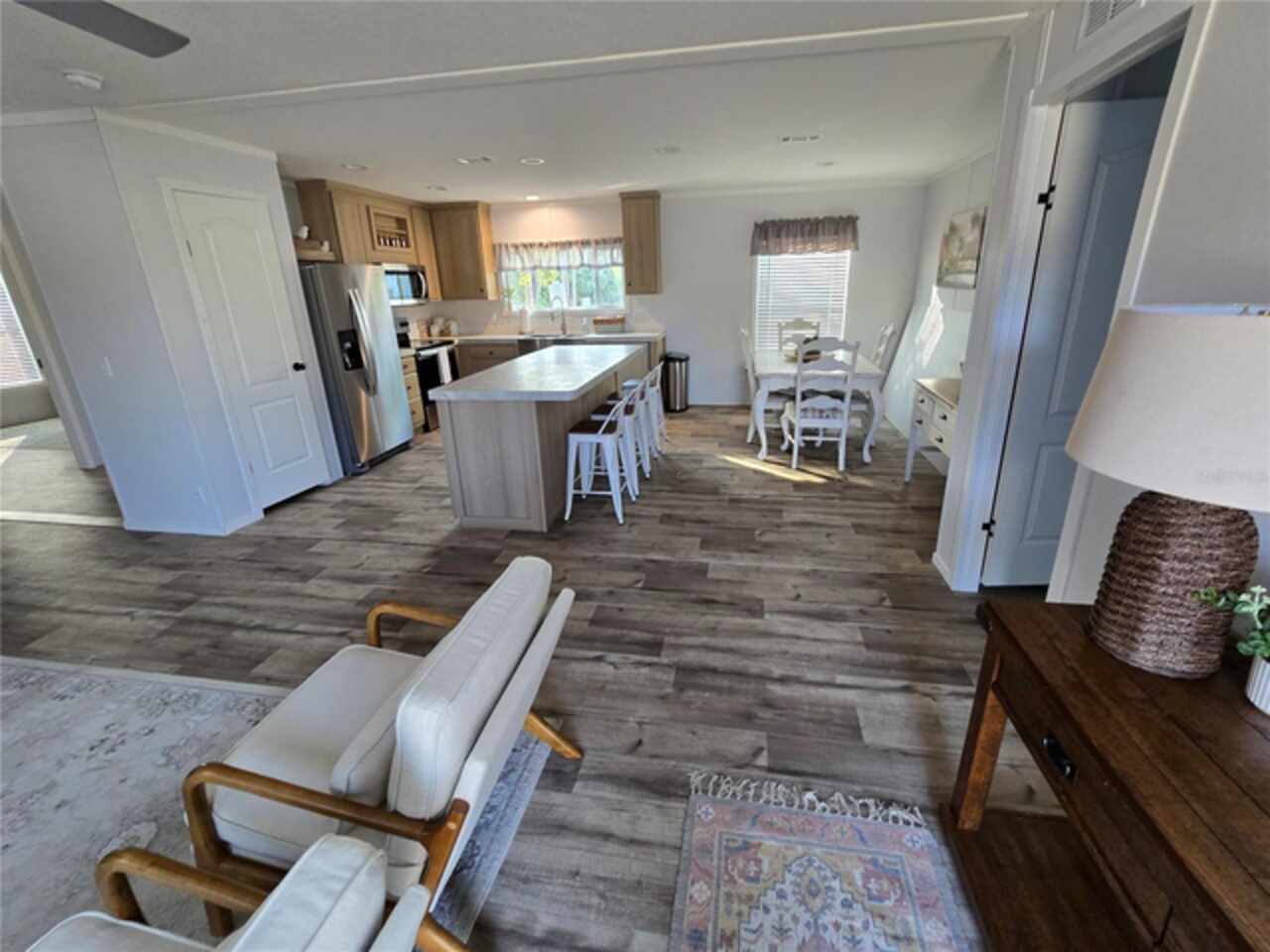 Under contract-accepting backup offers. "New 3 Bedroom, 2 Bath Fleetwood Home on Freshwater Canal" Possible Seller Concessions to assist with Buyers closing costs and pre-paids. Be the first to live in this newly constructed and just-installed Fleetwood model series home, offering a stylish and functional split floor plan. Everything is newly installed and the CO will be finalized shortly. This 3-bedroom, 2-bathroom residence features modern finishes throughout, including a spacious primary suite with a private en-suite bath and large walk-in closet. The heart of the home is an inviting open-concept layout that seamlessly connects the kitchen, dining, and living room areas—perfect for entertaining or relaxing with family. The living room is bright and comfortable, with plenty of natural light and a warm, welcoming feel. The kitchen is well-equipped with stainless steel Whirlpool appliances, a large kitchen island, a charming dinette area, and a farmhouse sink that adds a touch of rustic elegance. Step outside and enjoy tranquil waterfront living with a private 4x10 fishing dock right on the freshwater canal. Whether you're casting a line or simply enjoying the peaceful views, this space is perfect for nature lovers. An outdoor firepit overlooking the canal creates the ideal setting for cozy evenings under the stars. Furniture is negotiable, making this a potential turnkey opportunity for the right buyer. Don’t miss the chance to own this new home in a serene, natural setting with all the modern comforts you could want.