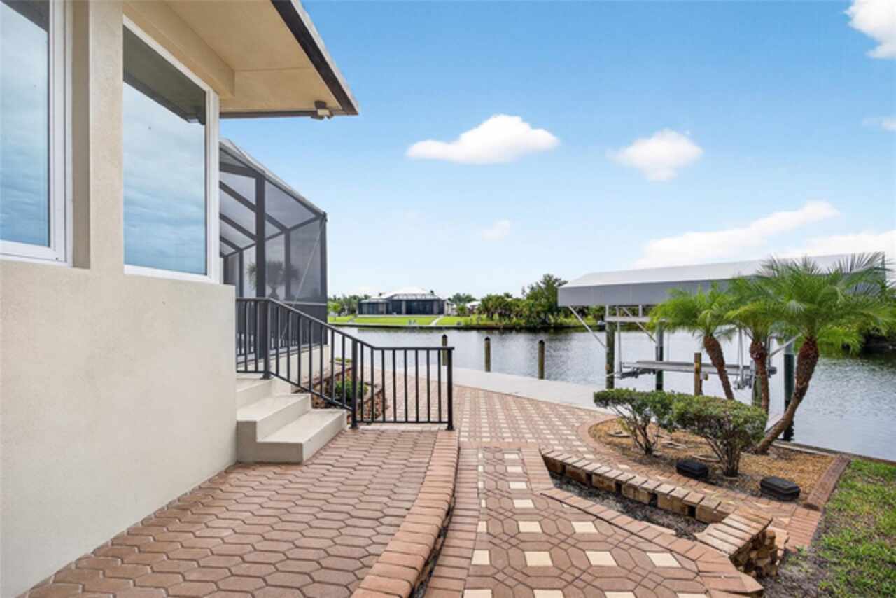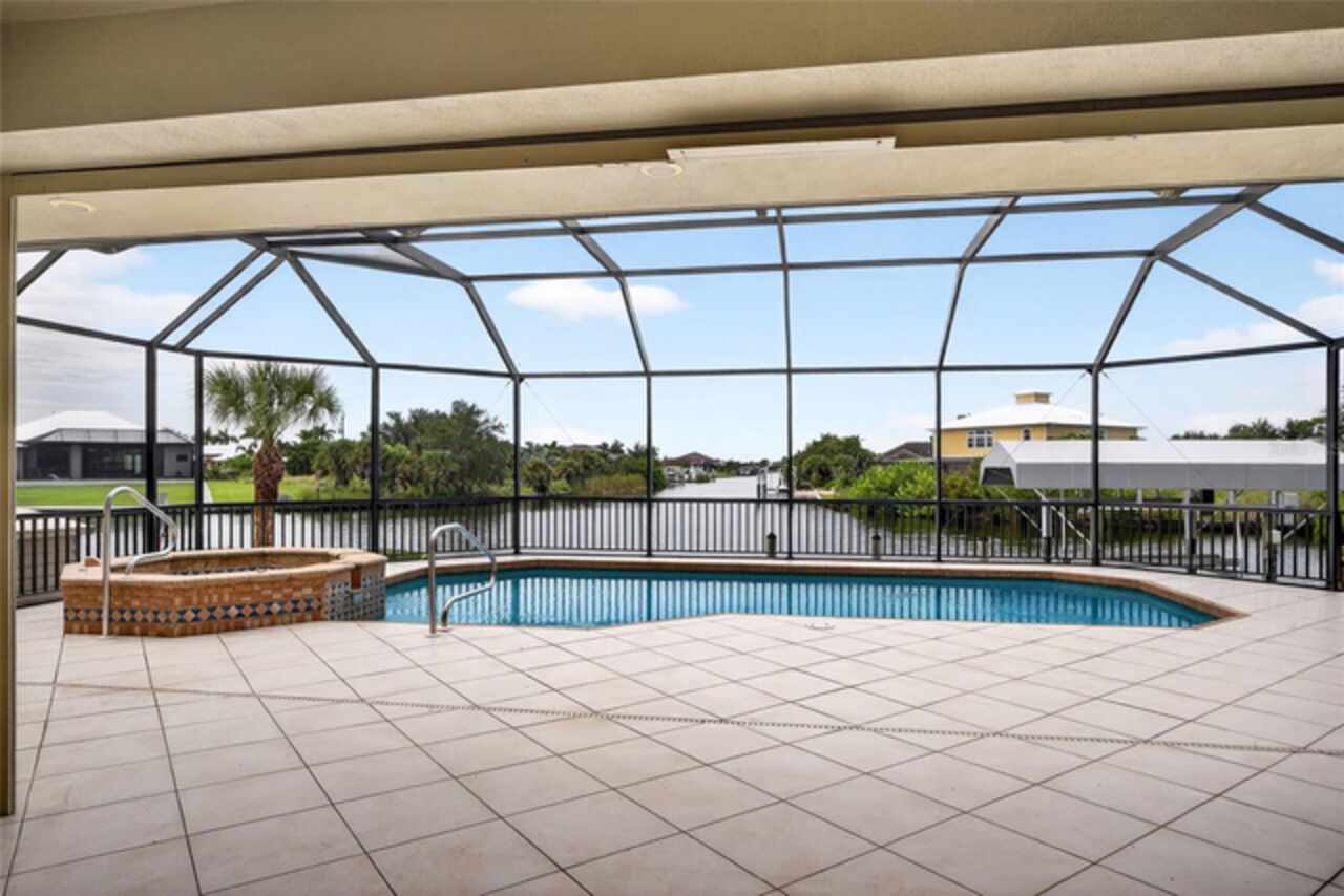 SOUTH GULF COVE! RARE GEM! ONE-OWNER CUSTOM-BUILT 2-STORY 4 BEDROOM, 3.5 BATHS, 3-CAR GARAGE WATERFRONT POOL HOME PERFECT FOR THOSE WHO DESIRE SAILBOAT ACCESS TO CHARLOTTE HARBOR AND THE GULF! Enjoy 85 feet of waterfrontage with stunning long and intersecting canal views, a composite dock equipped with water and electric, and a covered lift. Ideal for boating enthusiasts! Elevator access from the garage to the main and second floors makes for easy living and accessibility throughout the home. This home features a generous open floor plan with 3, 250 square feet of living space. The great room is light-filled, with 3 sliders opening to the outdoors, perfect for bringing the outdoors in. Cook up a storm in the spacious kitchen with tons of custom cabinetry, granite counters, a breakfast nook, and a breakfast bar. Ideal for family gatherings. The primary suite offers lanai access and a private bath featuring a soaking tub and walk-in shower, providing a perfect oasis after a long day. The 2nd floor features guest suite or in-law suite, wood flooring, family room with large slider to balcony overlooking amazing water views and outdoor spiral staircase for quick access to pool. Outdoor entertaining area features covered lanai, cooking prep area, outdoor bath access, outdoor shower, screened heated saltwater pool and spa and paver uncovered patio to dock with true southern exposure so guests from the north can enjoy and abundance of sunshine. Additional special features include metal roof, high impact glass, electric roll down shutter on lanai, security system, central vacuum, large first floor laundry with sink and cabinets for storage, freshly painted interior, paver circular driveway, outdoor shed and mature tropical landscaping. South Gulf Cove community offers voluntary HOA with clubhouse for special events, four parks nearby including South Gulf Cove Park and Boat Ramp and close to fine dining, shopping, parks, numerous golf courses, boating, and a short drive to Boca Grande and Don Pedro Island beaches. This beautiful home is move-in-ready and perfect for a growing family. Schedule your private showing today!