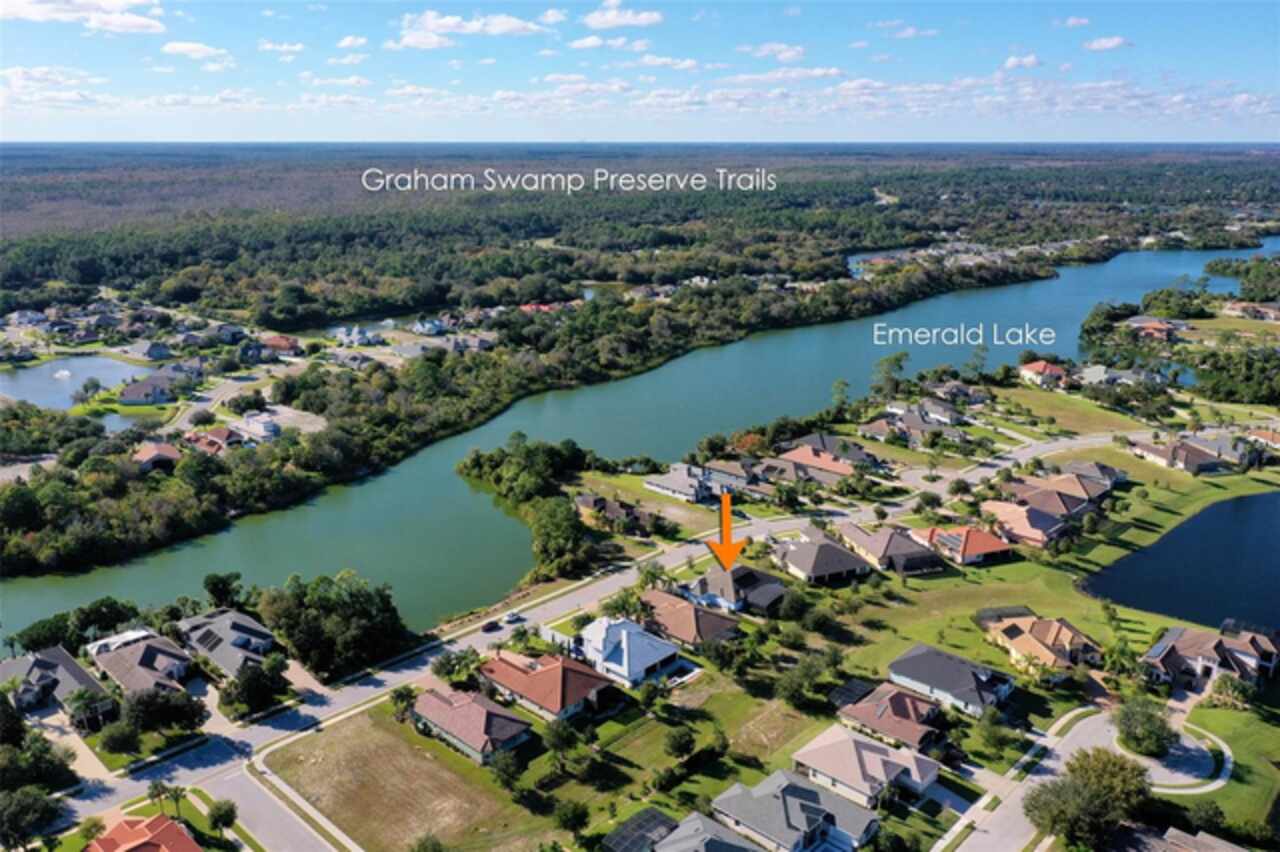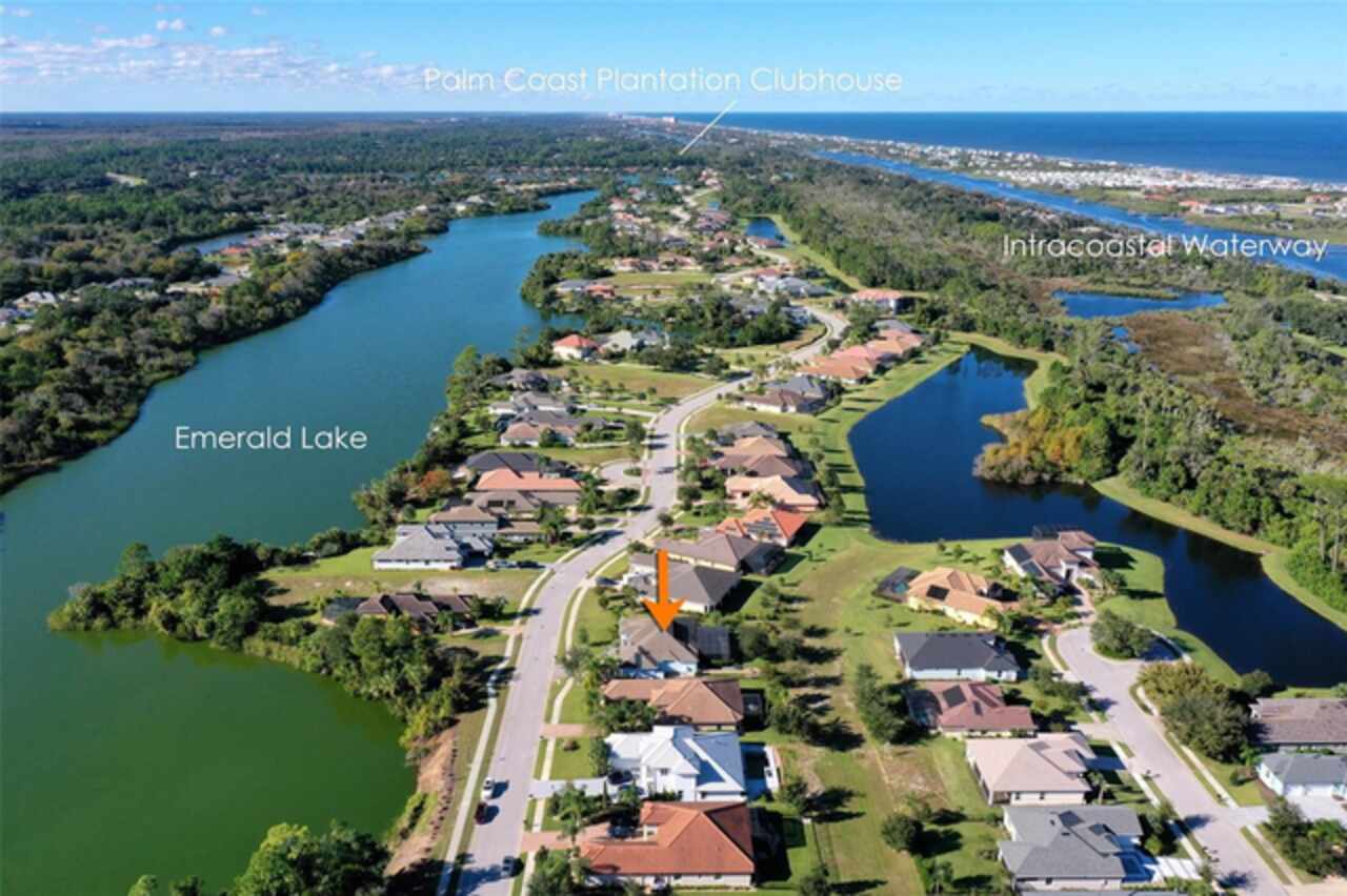 Welcome to 155 Heron Drive, a stunning custom-built, Del home that offers the perfect blend of luxury and functionality in the prestigious, gated community of Palm Coast Plantation. This spacious 2600 sqft residence features 4 bedrooms, 3 bathrooms & a 3 car garage, providing ample space for your family's needs. Out back you’ll find your own private oasis with a solar heated pool which boasts a beautiful waterfall feature, perfect for relaxing & entertaining. The fully fenced backyard offers privacy & security, while the outdoor shower allows you to rinse off after a refreshing swim. Gather around the fire pit on cool evenings & create lasting memories with loved ones. This home is designed with great attention paid to every detail concerning beauty & functionality. Featuring automatic & manual hurricane shutters as well as a full house, automatic switch on generator you’ll have peace of mind in any storm. The 3 car garage also features “magic stairs” which are stairs & a railing that come down from the fully floored attic at the push of a button. The solar hot water heater with electric backup & solar attic fan help reduce energy costs while a water softener ensures clean and pure water throughout the home. The high coffered & tray ceilings, 8 foot doors & crown molding throughout create a sophisticated atmosphere. The etched glass doors & plantation shutters bring another level of elegance to your new home, while tile floors throughout are not only beautiful but durable & easy to clean. Your new kitchen is a chef's dream, with new appliances, granite counter tops & roll-out drawers in all of the solid wood cabinets. This open concept floor plan makes this house THE house for entertaining. Outside, the concrete borders with rock fillers, & automatic landscape lighting enhance the curb appeal of this newly painted exterior, while sidewalks, streetlights, & underground utilities throughout the community give this beautiful home an even more ideal setting. Palm Coast plantation is a 4000 acre, nature based community featuring a 24 hour guarded gate, a resort style pool, spa, club house & game room all directly on Emerald Lake. The community also boasts a boat ramp, RV/boat storage, & courts for Pickle ball, Bocce ball, Basketball, Shuffleboard & Tennis. This beautiful community is close to shopping, zoned for the top rated schools in the county, and only 4 miles to Flagler county’s beautiful beaches. Don't miss the opportunity to own this exceptional property. Schedule a showing today & experience the true meaning of resort style living, at 155 Heron Drive.