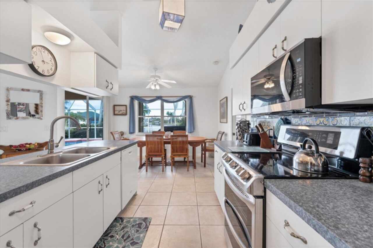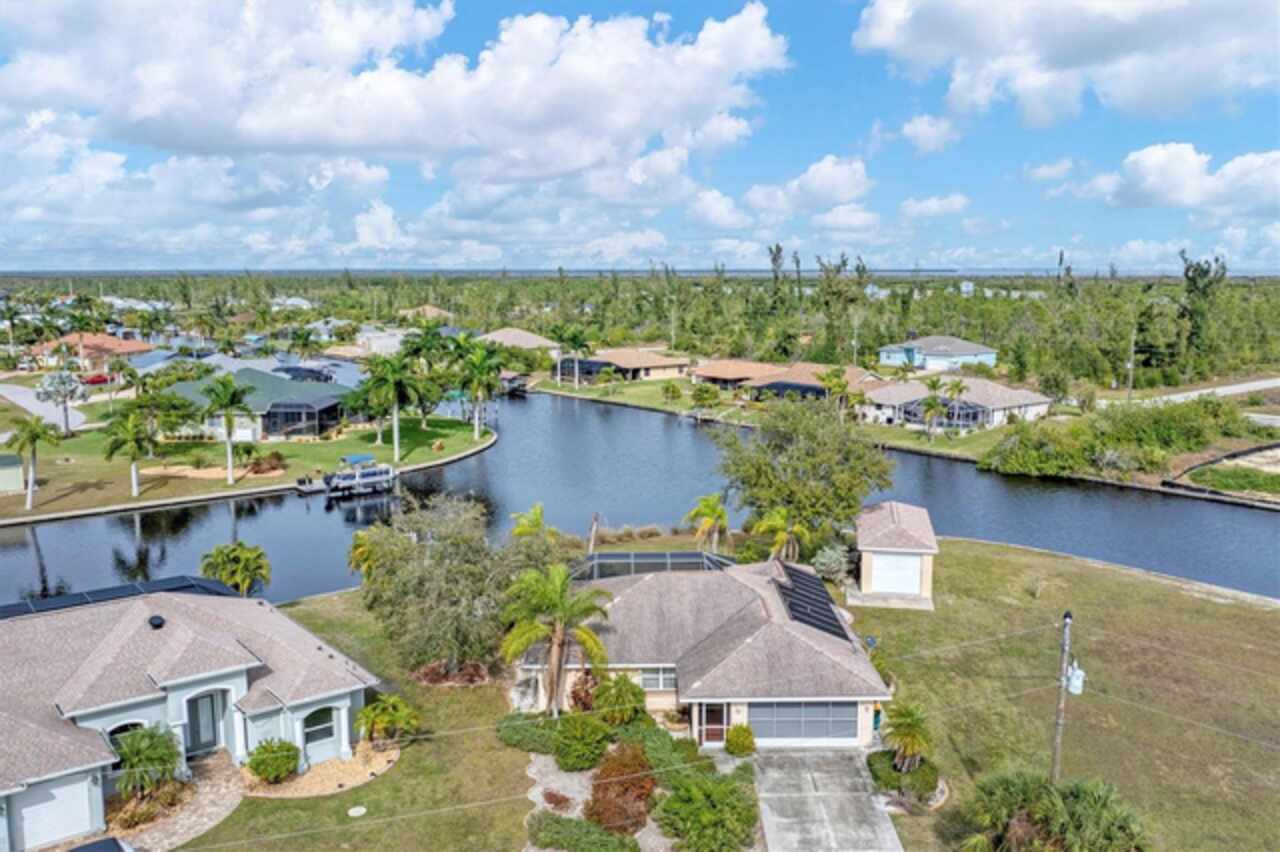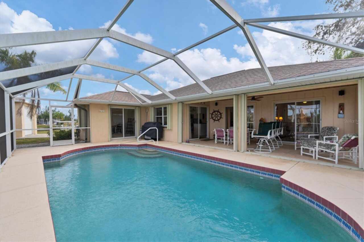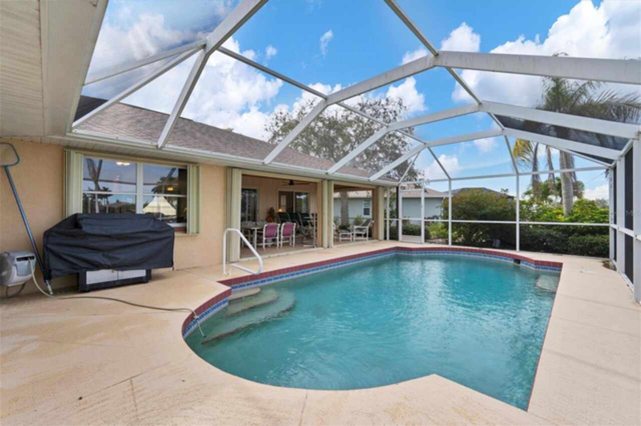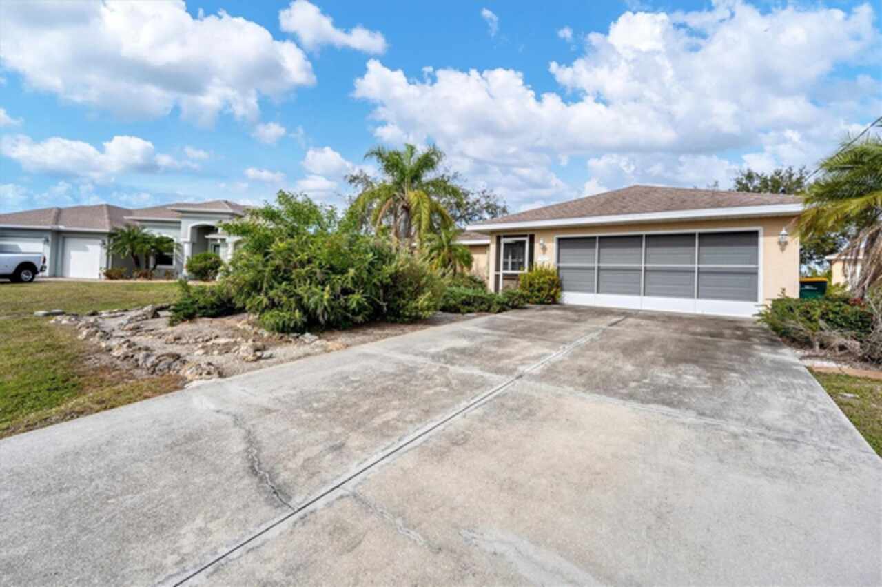 LOCATION * LOCATION * LOCATION * WATERFRONT * POOL HOME * OVERSIZED TIP LOT * 166 ft. of CEMENT SEA WALL * DOCK AND 6K LIFT * SPECTACULAR WATER VIEW !!! In the WATERFRONT BOATING Community of SOUTH GULF COVE With Boating access to the Gulf of Mexico and Surrounding ISLANDS. Only 1 Bridge to a Quick and Easy Out to the Lagoon and Charlotte Harbour. This Home features 3 Spacious Bedrooms, 2 full Baths, OPEN FLOOR PLAN, Vaulted Ceilings, Sliders to LANAI and Spacious POOL area. Living Room has nice Tile floors, Ceiling fans and Light Fixtures. Kitchen has STAINLESS STEEL appliances to include Refrigeator, NEW LG STOVE, NEW LG MICROWAVE, Large PANTRY Closet, Dishwasher, Double Sink, Nice Countertops and Cabinets. BREAKFAST NOOK with large picture window to maximize your WATER VIEW and Sliders to Lanai. Split GUEST BEDROOMS and Full Bath with Tub and Linen Closet. Primary Suite has a Large Walk-in Closet, Vanity, Linen closet, Tiled Shower, NEW plank flooring and Sliders to Lanai. A sparkling SALT WATER POOL to Enjoy and covered outdoor dining and entertaining any day of the year. There is a 16’ BOAT DOCK with WATER, ELECTRIC and 6K LIFT, Nice Spacious back yard with Mature Landscaping and Another very special feature of this property is the 504 sq. feet tandem DETACHED GARAGE, which includes an 8’ tall overhead door which can accommodate your recreational vehicles. This home has FULL HURRICANE PROTECTION with ACCORDION SHUTTERS INSTALLED in 2019, a NEW OVERHEAD DOOR in the main garage installed 2019, NEW ROOF 2016, POOL PUMP 2019 and MORE features include...Screened Garage Door, NEW A/C and HEAT PUMP, NEW WASHER and DRYER. SOUTH GULF COVE is only minutes away from Southwest FLORIDA BEACHES in BOCA GRANDE and MANASOTA KEY with boating access to the Gulf of Mexico and Surrounding ISLANDS. Community offers several nice parks, boat ramp, marinas and a yacht club. With several Golf Courses, WORLD CLASS FISHING, Shopping and Great Restaurants only minutes away!!! HOA is OPTIONAL!!! EXPERIENCE the FLORIDA LIFESTYLE !!!