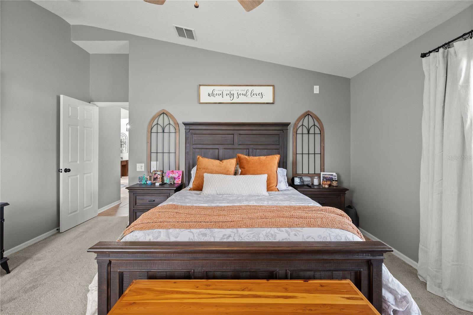 Ceiling Fans(s), Eat-in Kitchen, High Ceilings, Open Floorplan, Solid Wood Cabinets, Split Bedroom, Stone Counters, Thermostat, Walk-In Closet(s)