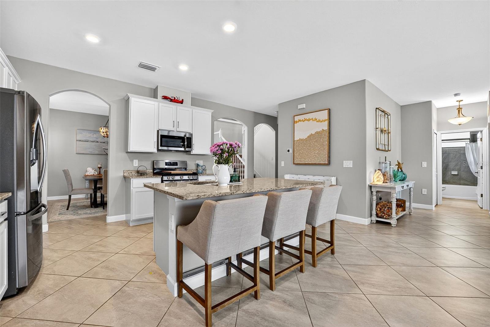 This home is uniquely located on the long end of a large pond for beautiful backyard sunset views over the pool to the pond