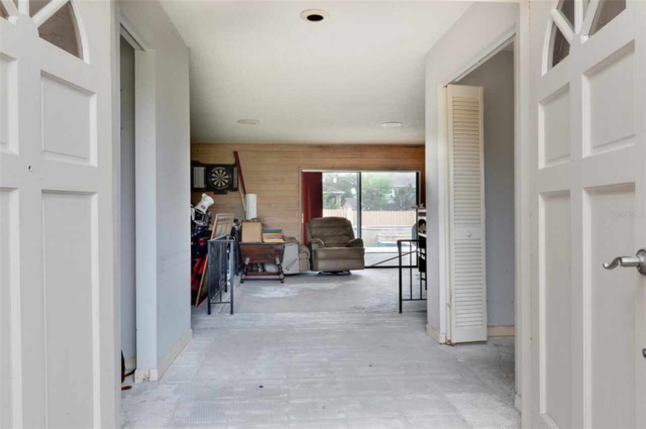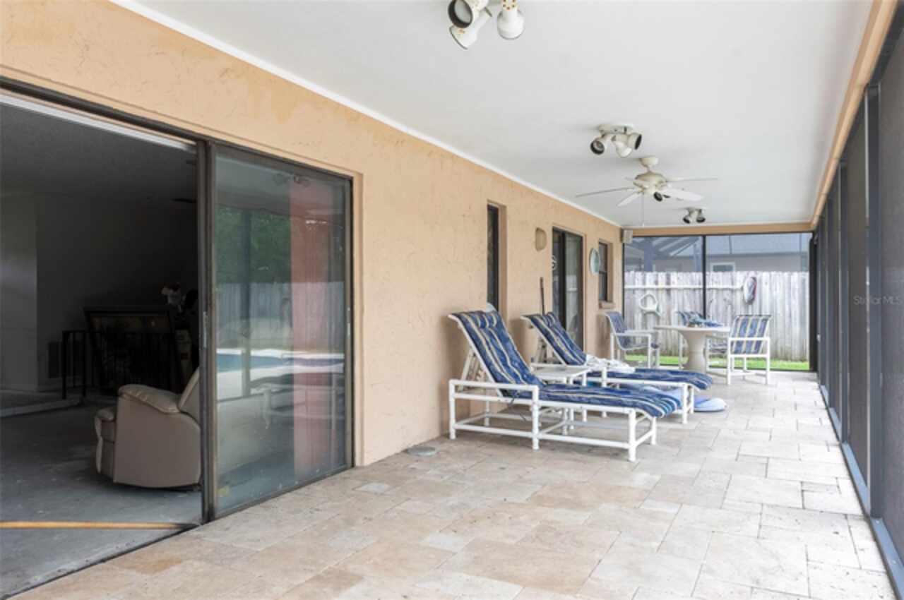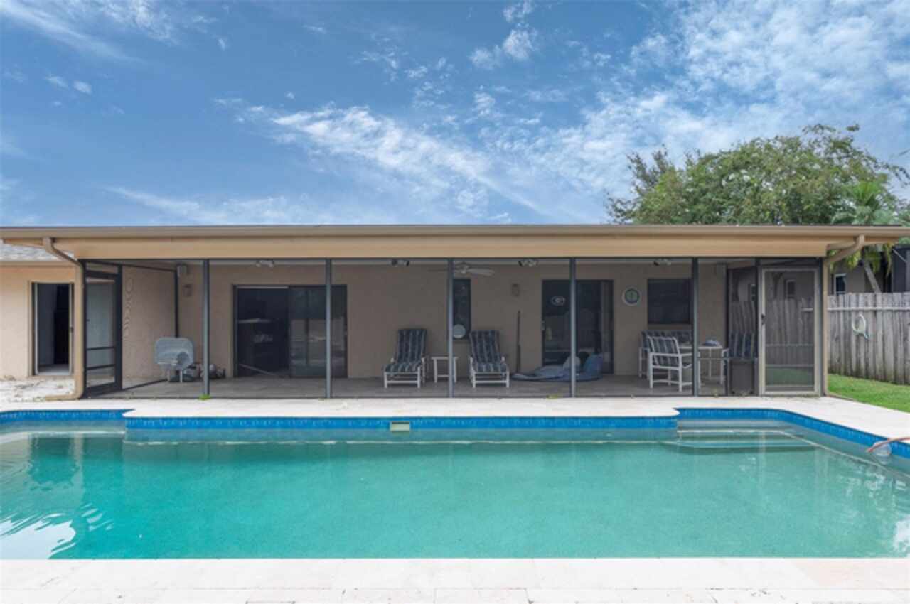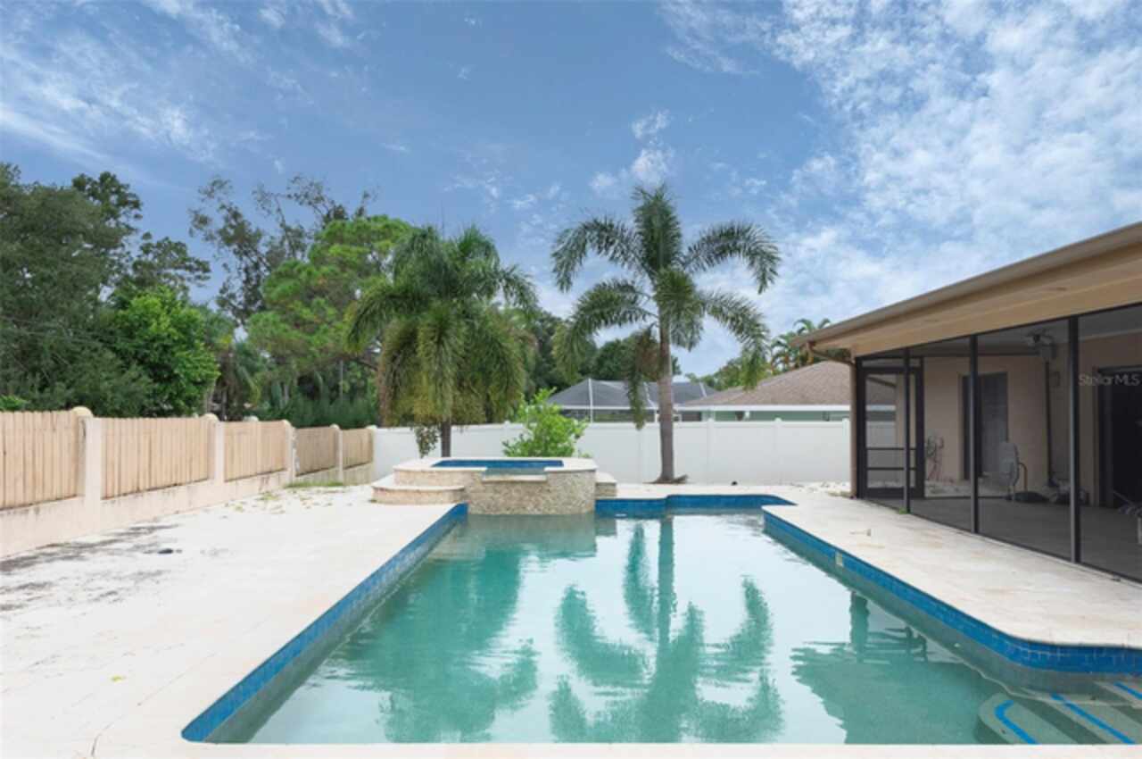 Under contract-accepting backup offers. "Unlock the Potential" this property is in desirable Brae-Moor South a deed-restricted subdivision in the city of Dunedin. The swimming pool and spa were the past owners' treasures. He took such great care of this outdoor entertaining space. The pool design bordered by natural stone tiles that give it a timeless elegance. Adjacent to the pool is a sunken spa, perfect for relaxing after a long day, with cascading water creating a soothing sound as it flows into the pool. Overall, this fixer-upper offers a unique opportunity: the bones are solid, the necessities like the newer roof installed in 2023 are covered, and the potential for creating an idyllic retreat in the backyard with an inviting pool and spa is enormous. With a bit of imagination and renovation efforts, this property can become a dream home.