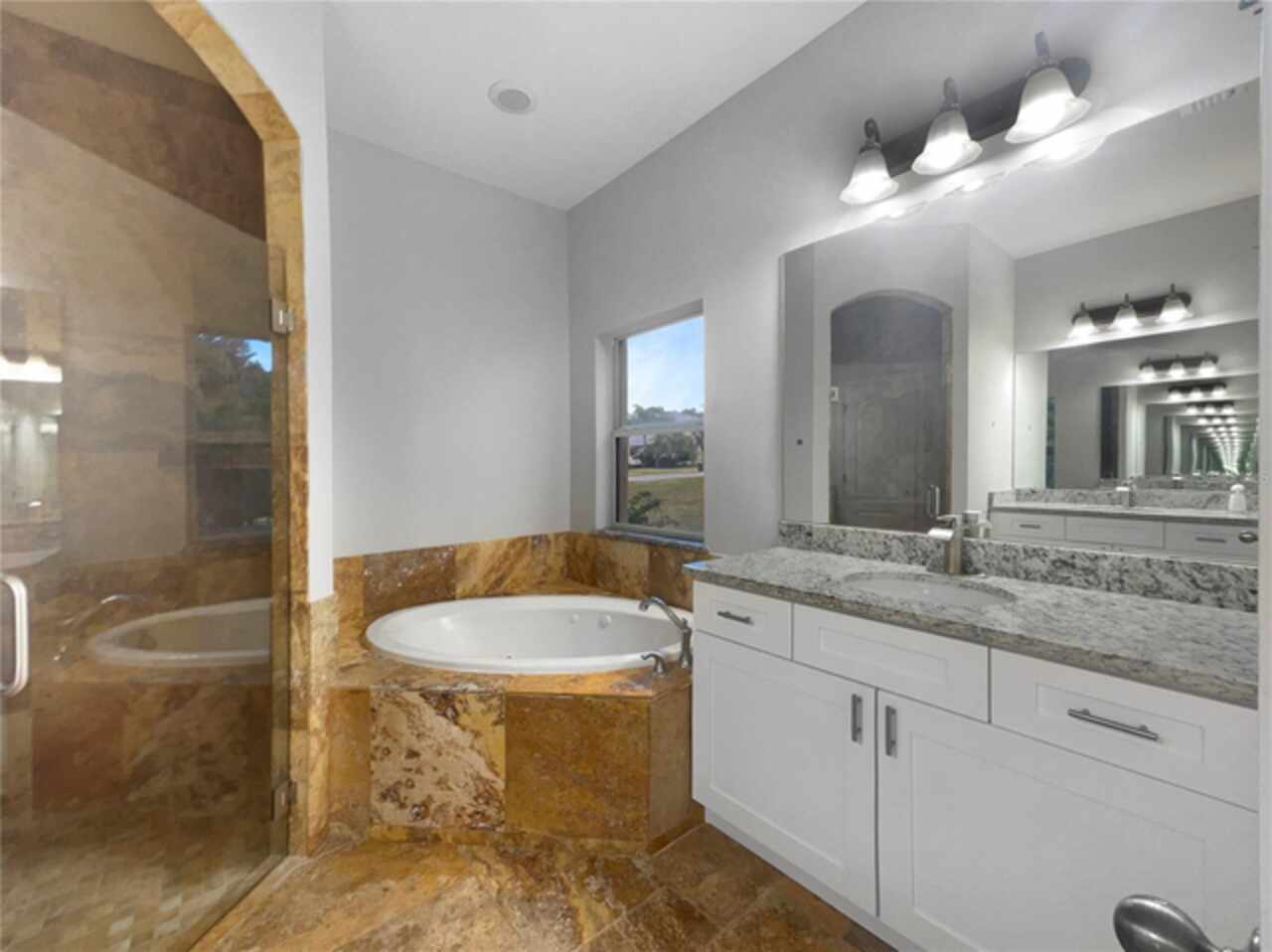 Step into luxury with this stunning home, where every detail is designed for comfort and style. The gourmet kitchen boasts a sleek backsplash, stainless steel appliances, and a spacious island perfect for culinary creations. The inviting living room, anchored by a cozy fireplace, offers the perfect setting for both lively gatherings and quiet moments. The primary bathroom serves as a private oasis, featuring a separate tub and shower for a spa-like retreat. Outside, a covered patio and sparkling inground pool provide the ideal space for relaxation and entertainment. This residence is not just a home; it’s the lifestyle you've been dreaming of. Some photos may be virtually staged