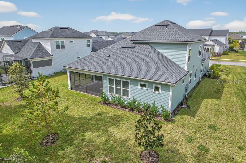 Discover a sanctuary where style meets comfort in this meticulously crafted 4-bedroom, 4.5-bath home with 3, 239 sq ft of thoughtfully designed living space. Step inside to soaring tray ceilings with custom wood beams, an open floor plan, and luxury laminate flooring throughout. The chef’s kitchen is a dream with a custom-built island, farmhouse sink, slow-close cabinetry, walk-in pantry, and elegant tile backsplash — perfect for both everyday meals and entertaining. A private in-law suite offers two bedrooms, two bathrooms (one ADA accessible), and endless flexibility for guests, multigenerational living, or a home office. Enjoy year-round comfort with dual-zone climate control and a tankless gas water heater. Upstairs, a versatile loft provides extra living space. Outdoor living shines with a screened lanai, remote-controlled blinds, and a fully equipped outdoor kitchen with granite counters. The paver driveway, oversized epoxy-coated garage, and irrigation system add convenience and curb appeal. Located in a peaceful community near top-rated schools and essential amenities, this home blends elegance, practicality, and modern luxury.