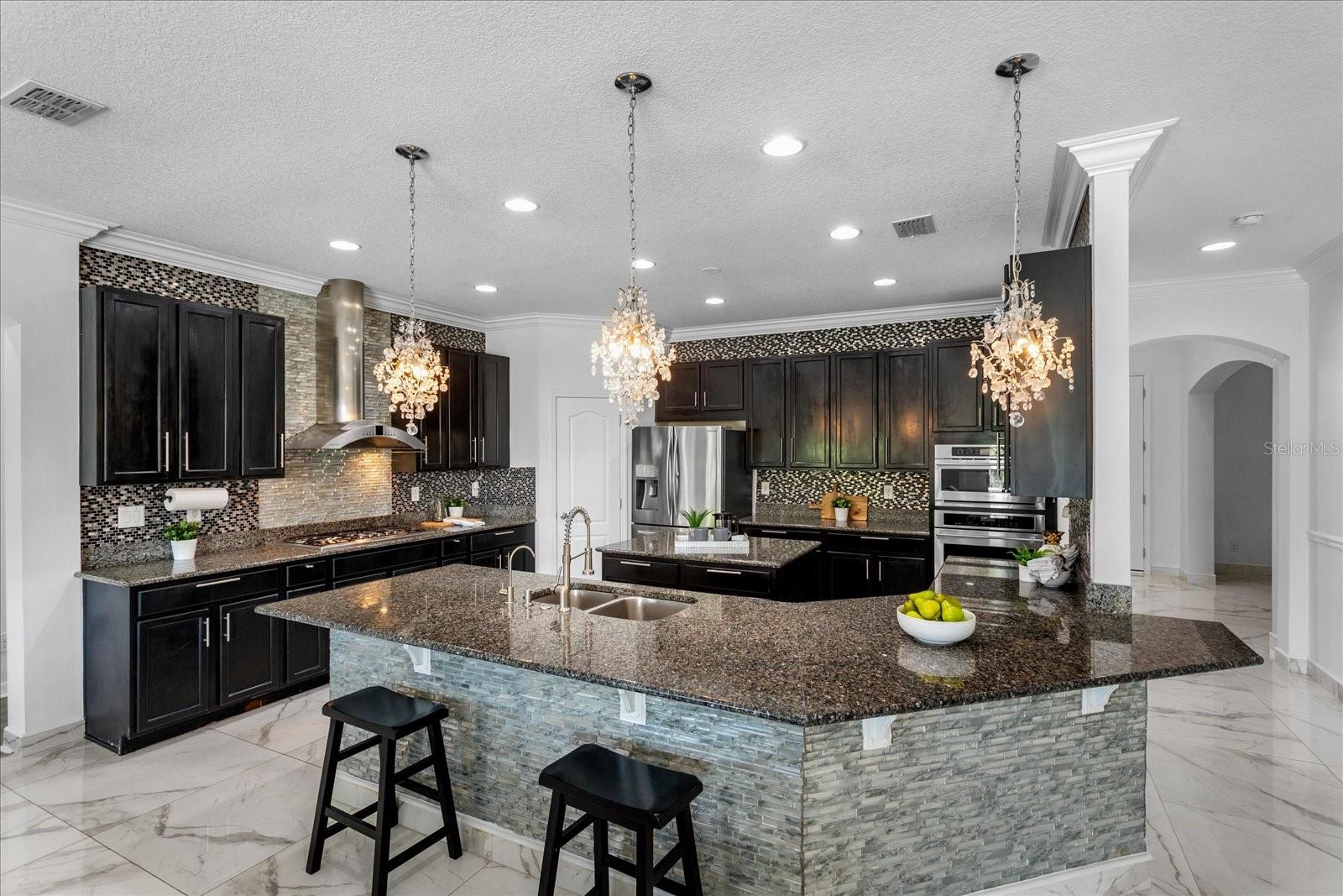 Drive into this gorgeous gated neighborhood and arrive at a premium lot that offers exceptional privacy. This beautiful residence welcomes you with two spacious living areas and a separate formal dining room, perfect for both everyday living and entertaining. The stunning, richly toned kitchen is a true centerpiece—designed with abundant storage and everything a chef in the family could ever want. This expansive seven-bedroom home with each having walk-in closets, goes above and beyond with its thoughtfully designed spaces, including a dedicated theater with tiered seating, a large game room and a private gym area. The owner’s suite is grand in scale, easily accommodating a sitting area while the spa-like bath provides a serene retreat. Expansive dual closets are the icing on the cake! Step outside to a gorgeous lanai that opens to a sparkling custom pool along with a heated spa and breathtaking water feature, all framed by lush natural green space. A home of this caliber offers the perfect blend of luxury, comfort, and privacy—truly a rare find.