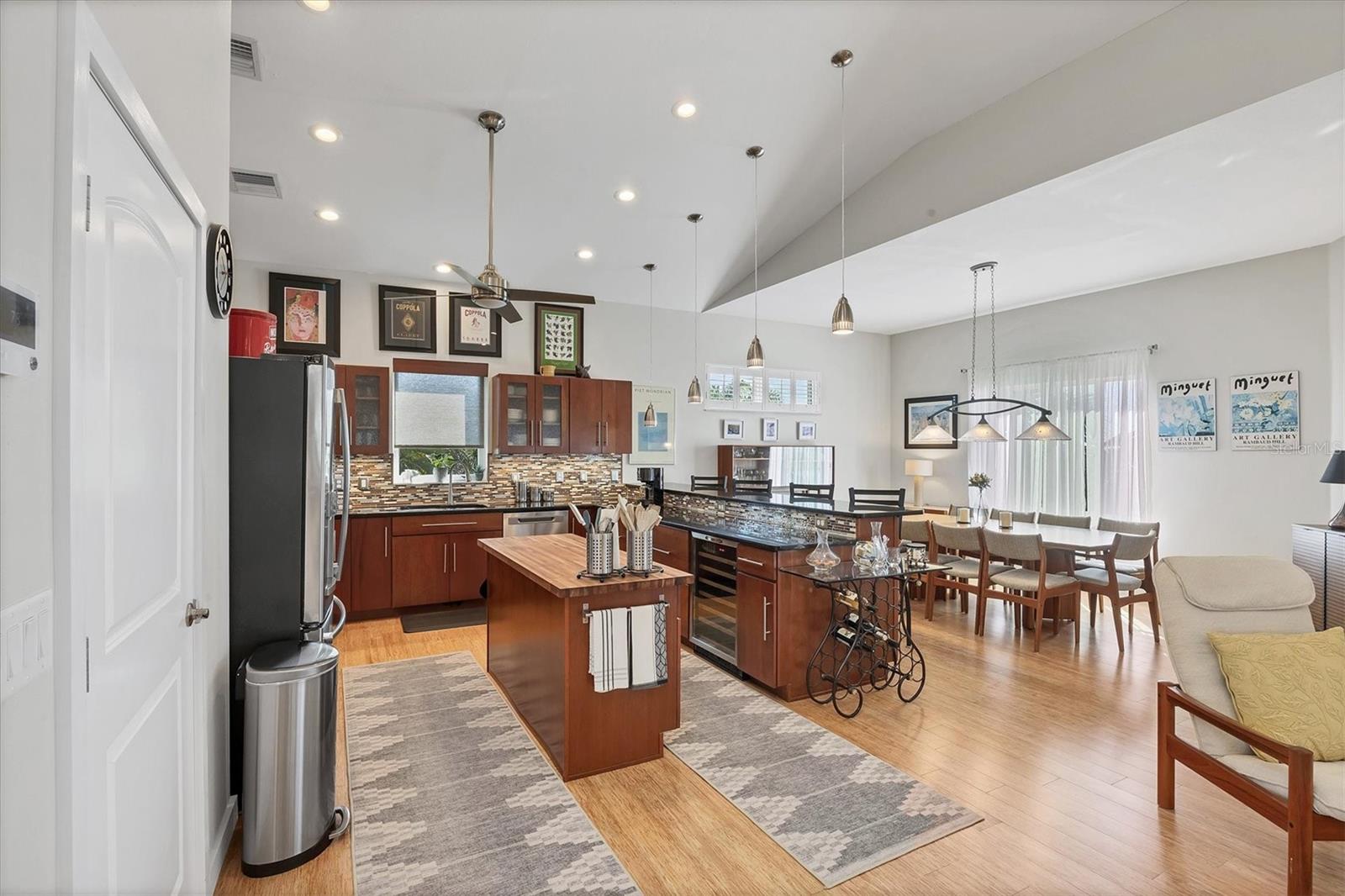 Sailboat Waterfront Retreat with Pool, Dock, Lift & Key West Charm! When you walk up, you’ll be WOWED by the dual staircase entry and gorgeous front porch, perfect for watching the sunrise over Charlotte Harbor. This Key West–style two-story home captures the best of coastal living with thoughtful design, modern upgrades, and incredible outdoor spaces offering both sunrise and sunset views. The main living area is lined with custom impact windows and doors, flooding the space with natural light and showcasing beautiful water views. A stunning cupola with lighting adds architectural charm and a warm coastal glow throughout the home. Inside, you’ll find gorgeous bamboo floors, plantation shutters, and a bright office/music room perfect for creativity or quiet focus. The updated kitchen features stone countertops, custom cabinets, a wine fridge, and a beautiful American cherry butcher block island, a true centerpiece for gathering and entertaining. Both upstairs bedrooms offer stunning views and French doors that open to the beautiful front porch, creating the perfect spot to enjoy morning coffee or gentle coastal breezes. The primary suite features a large walk-in closet and a spa-like en-suite bathroom with an updated shower and elegant finishes. The guest bedroom includes a charming barn door, abundant natural light, and its own en-suite bathroom with gorgeous coastal tile, a designer backsplash, and thoughtful updates throughout. Together, they create a perfect split plan that combines privacy, style, and comfort. Built with full ICF (Insulated Concrete Form) construction, this home provides exceptional energy efficiency, hurricane protection, and soundproofing. The solid concrete design helps maintain consistent indoor temperatures, lowers energy costs, and ensures lasting durability and peace of mind. Step out onto the screened back patio, designed for the ultimate in outdoor entertaining. Enjoy breathtaking sunsets over the water while relaxing to your favorite tunes through the built-in Bose outdoor speakers. A convenient door leading directly to the dining room makes it easy to flow between indoor and outdoor spaces — perfect for gatherings, dinner parties, or simply unwinding at the end of the day. Downstairs, you’ll find a spacious in-law suite featuring its own private porch, vinyl flooring, and custom impact windows that fill the space with light. It includes a comfortable bedroom, bathroom with a walk-in shower, and a large living area that opens to a private deck with a sunshade—perfect for relaxing or entertaining. Ideal for guests, extended family, or private living quarters, this space offers comfort and versatility. Outback, relax by the heated saltwater pool with sunshade and new pool pump (2025). Boaters will love the 10, 000 lb Deco boat lift, dock with water and electric, and sailboat access (NO BRIDGES) to open water just minutes from the lock. Additional features include a whole-house Aquasana water filtration and conditioning system (10M gallon capacity), heat pump water heater, 3-zone AC with an extended 10-year warranty, SimpliSafe security system, and an avocado hybrid Hass tree for a touch of tropical charm. The home also has an elevator shaft already in place, currently being used for storage but ready to be upgraded for future elevator installation if desired.