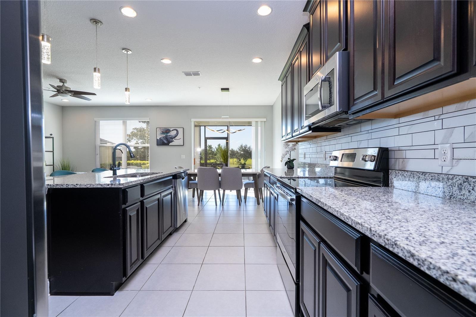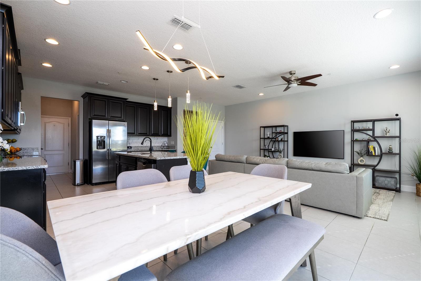 Ceiling Fans(s), Eat-in Kitchen, High Ceilings, Kitchen/Family Room Combo, Open Floorplan, Solid Surface Counters, Solid Wood Cabinets, Thermostat, Walk-In Closet(s), Window Treatments